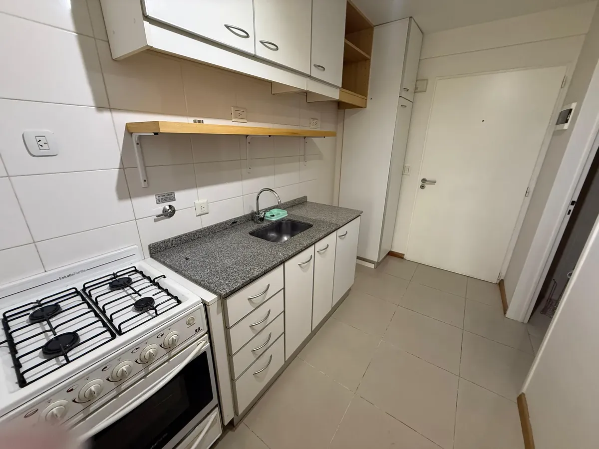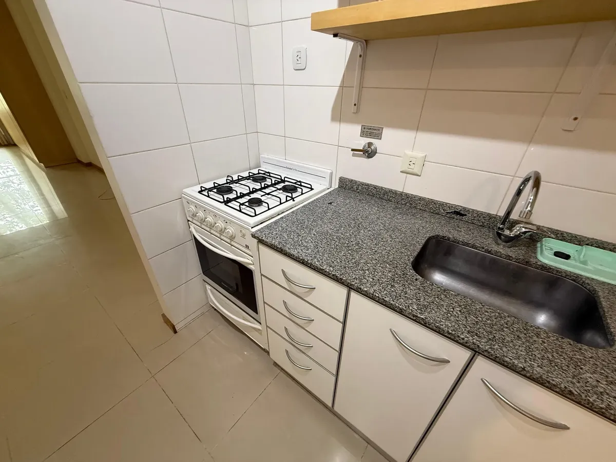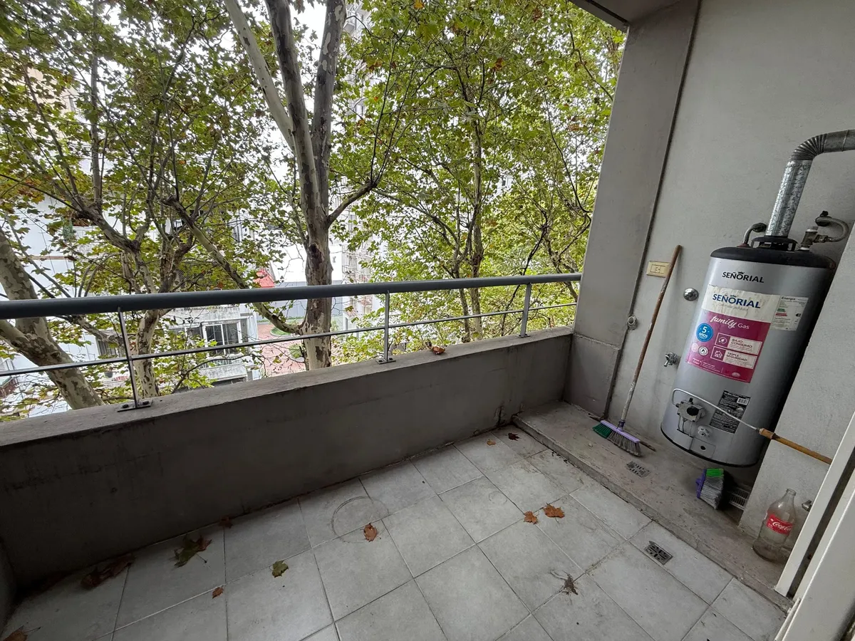 Monoambiente al frente con balcón, apto profesional. Cuenta con ambiente de 3,10 x 7,53 m y salida a balcón de 1,40 x 3,00 m. Tiene placard, cocina y baño completo, con espacio para lavarropas. Incluye aire acondicionado split. Superficie total: 38 m². Inmueble accesible para personas con discapacidad física (Ley 5115).