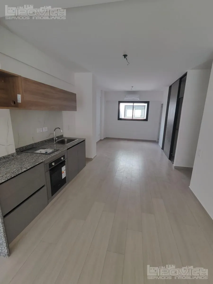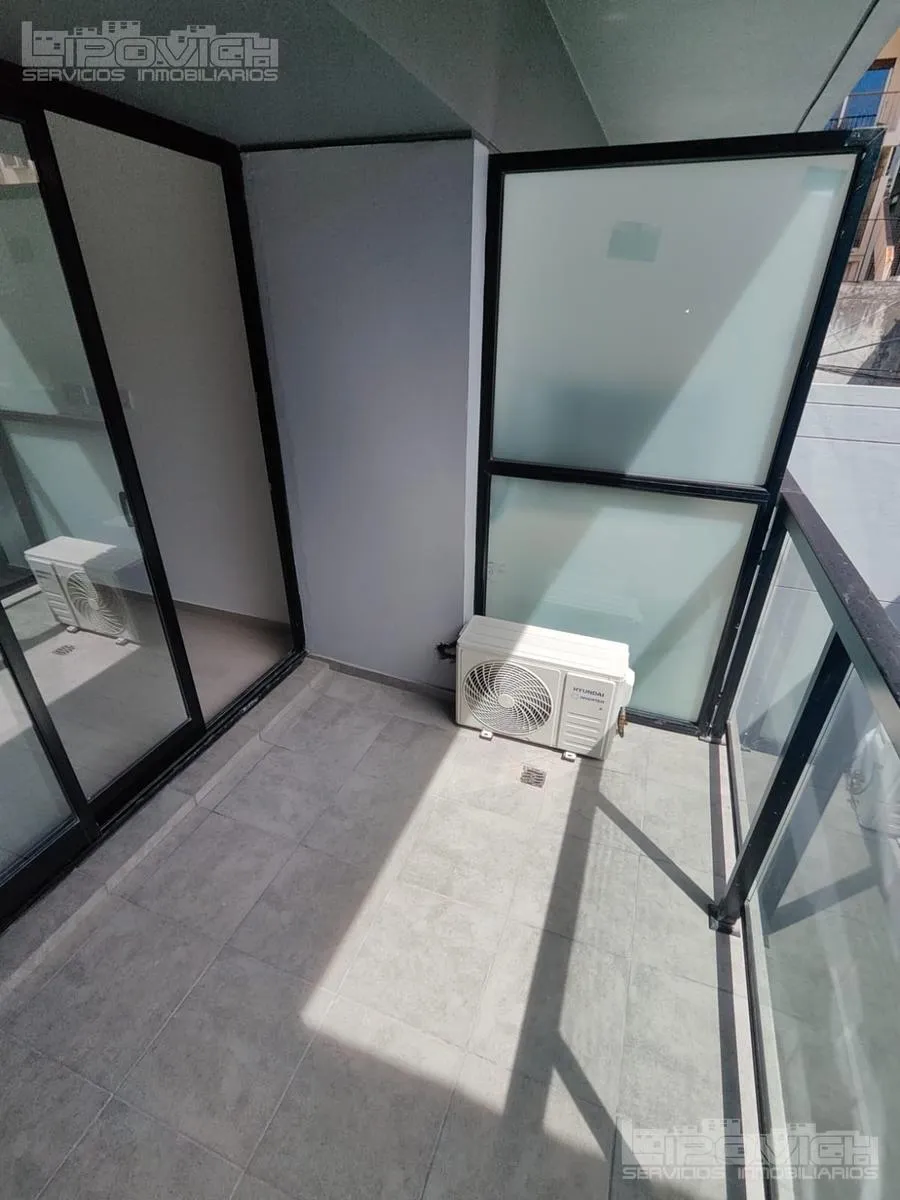 Departamento monoambiente divisible de 3 piso al contrafrente, orientación norte, a estrenar. Incluye balcón aterrazado, 2 splits frío/calor, placard, baño y toilette y conexión para lavarropas. El edificio cuenta con gimnasio, parrilla y laundry. Expensas estimadas $180.000; expensas, impuestos y servicios a cargo del locatario.