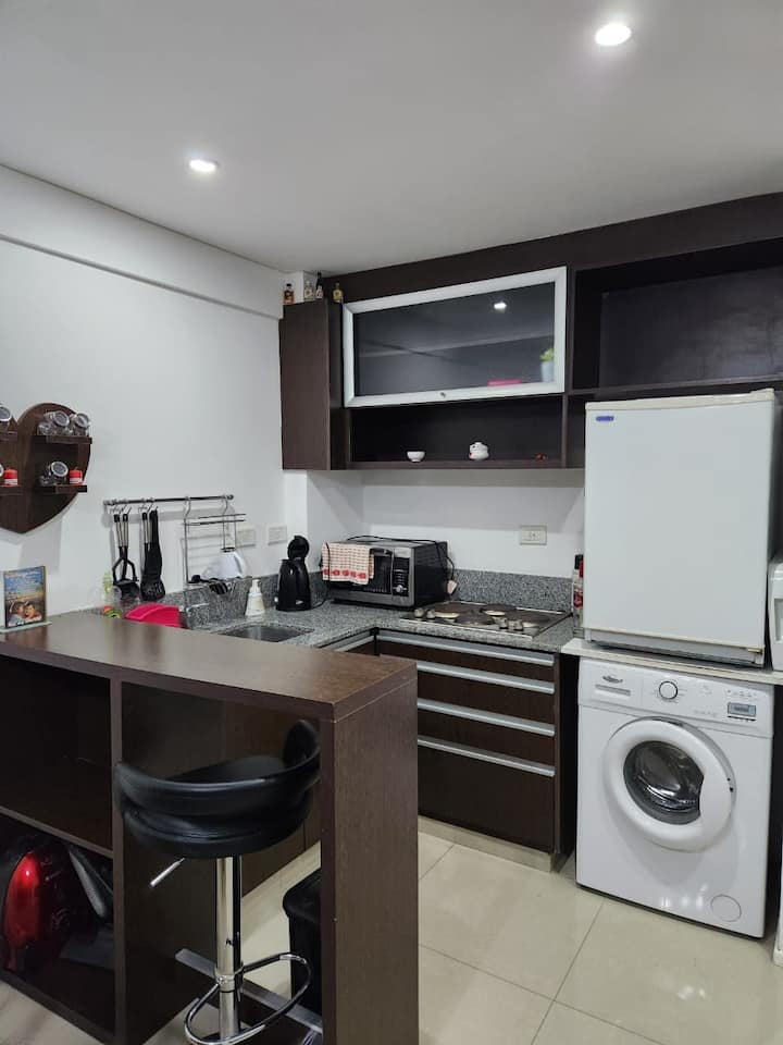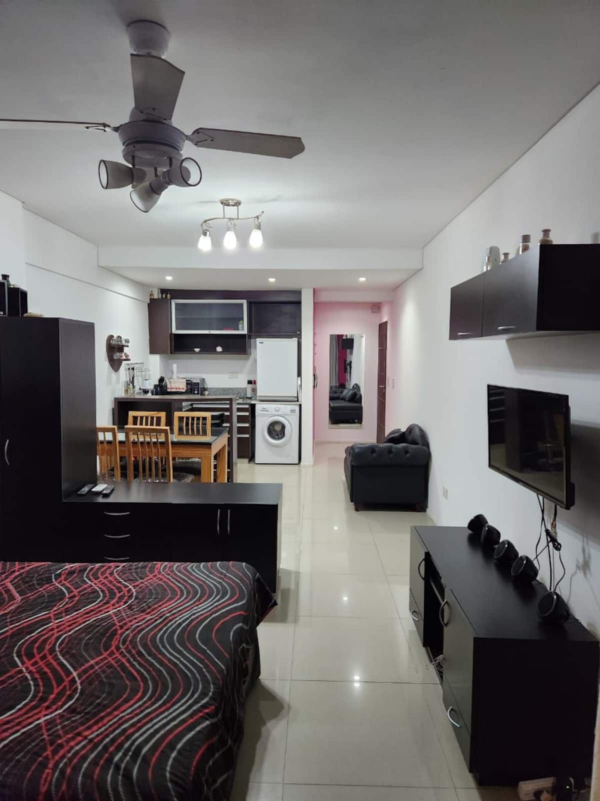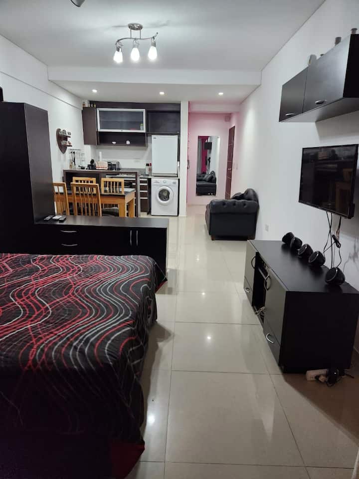 Departamento monoambiente en Villa Crespo, con balcón al frente. Cuenta con cama doble, zona de comedor y barra desayunadora en la entrada a la cocina. Incluye lavarropas. Está a 10 cuadras de Movistar Arena, a 6 cuadras del Parque Centenario y a 10 minutos de Palermo Soho.