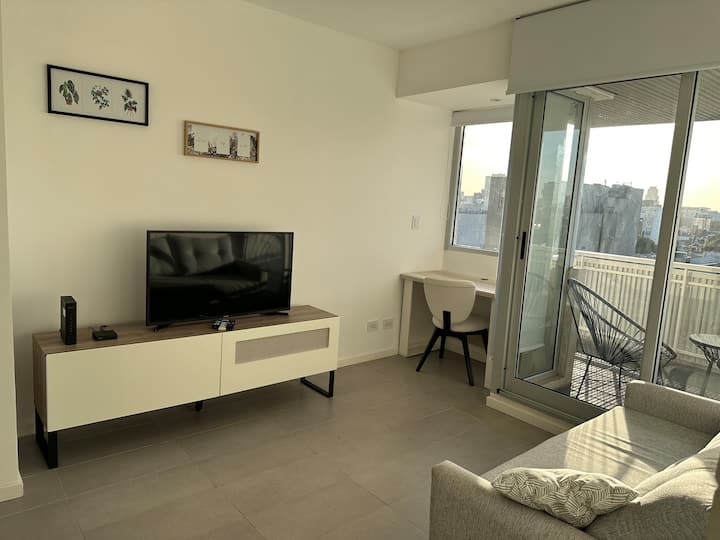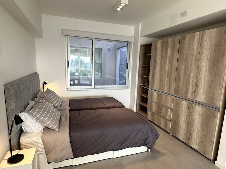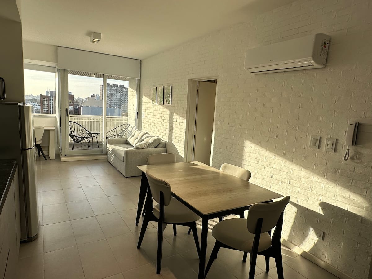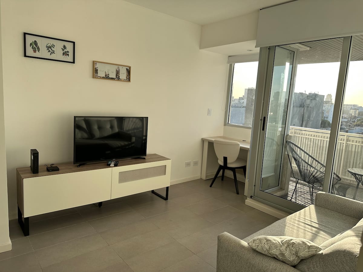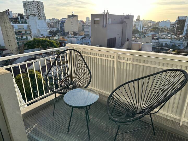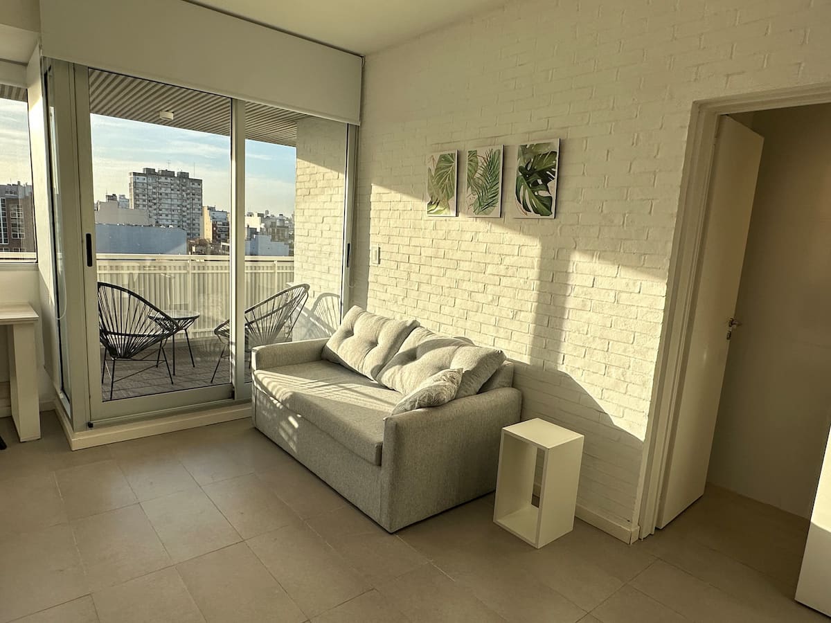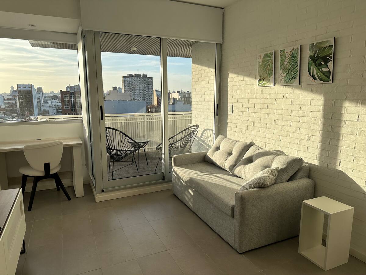 Monoambiente amoblado y equipado en Villa Crespo. Incluye cama doble que puede separarse en 2 camas de 1 plaza y sillón cama para 2 personas. El edificio cuenta con cochera descubierta con costo adicional, sujeta a disponibilidad. Se ubica en una zona con transporte cercano.