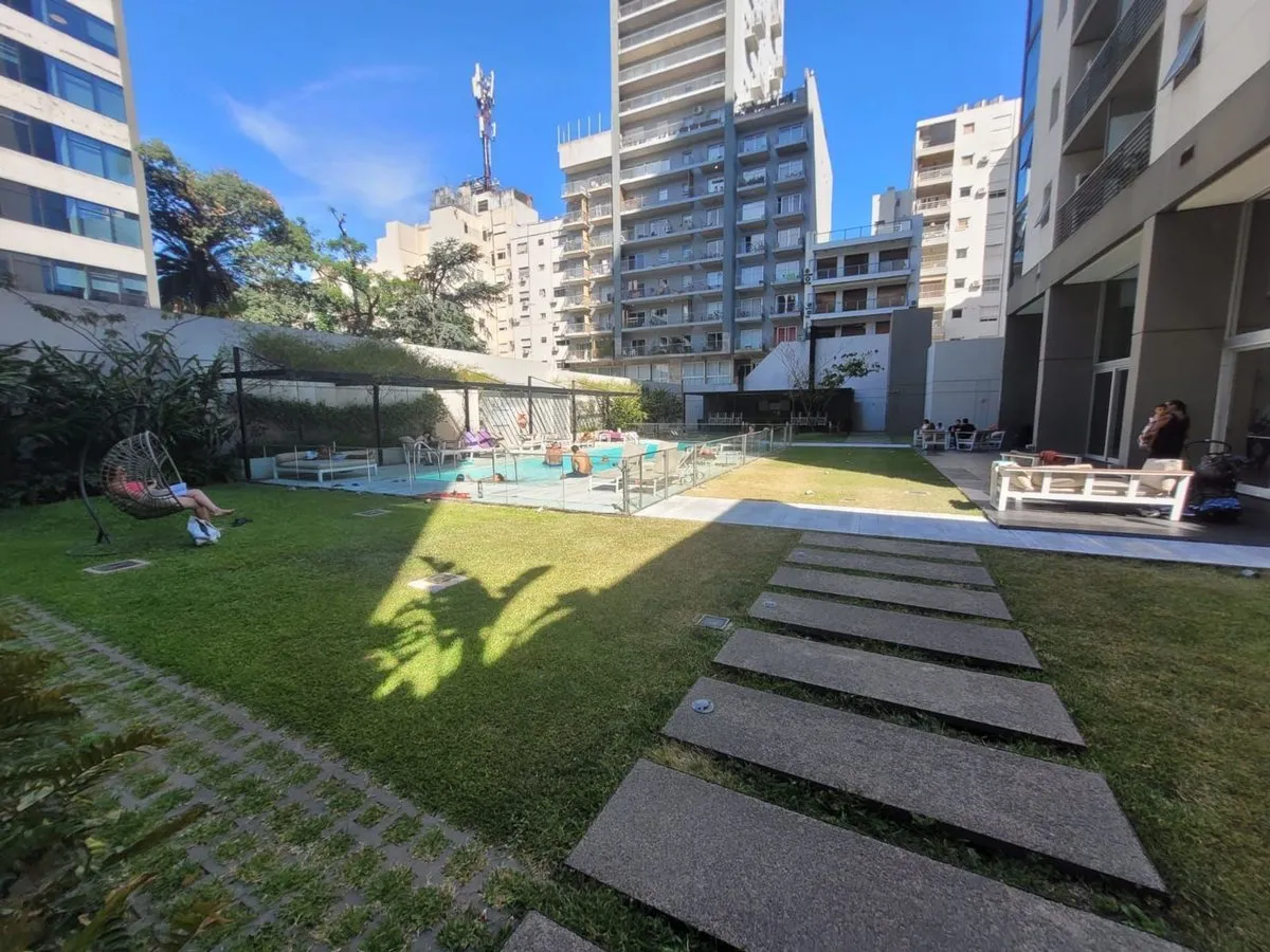 Monoambiente de 45 m² en torre, con balcón al frente, cocina integrada y baño completo con bañera. Incluye aire acondicionado. El edificio cuenta con seguridad 24 horas, SUM en planta baja, dos parrillas, sala de juegos en entrepiso, gimnasio, piscina, sala de video juegos y laundry. Tiene 3 ascensores y cocheras de cortesía.