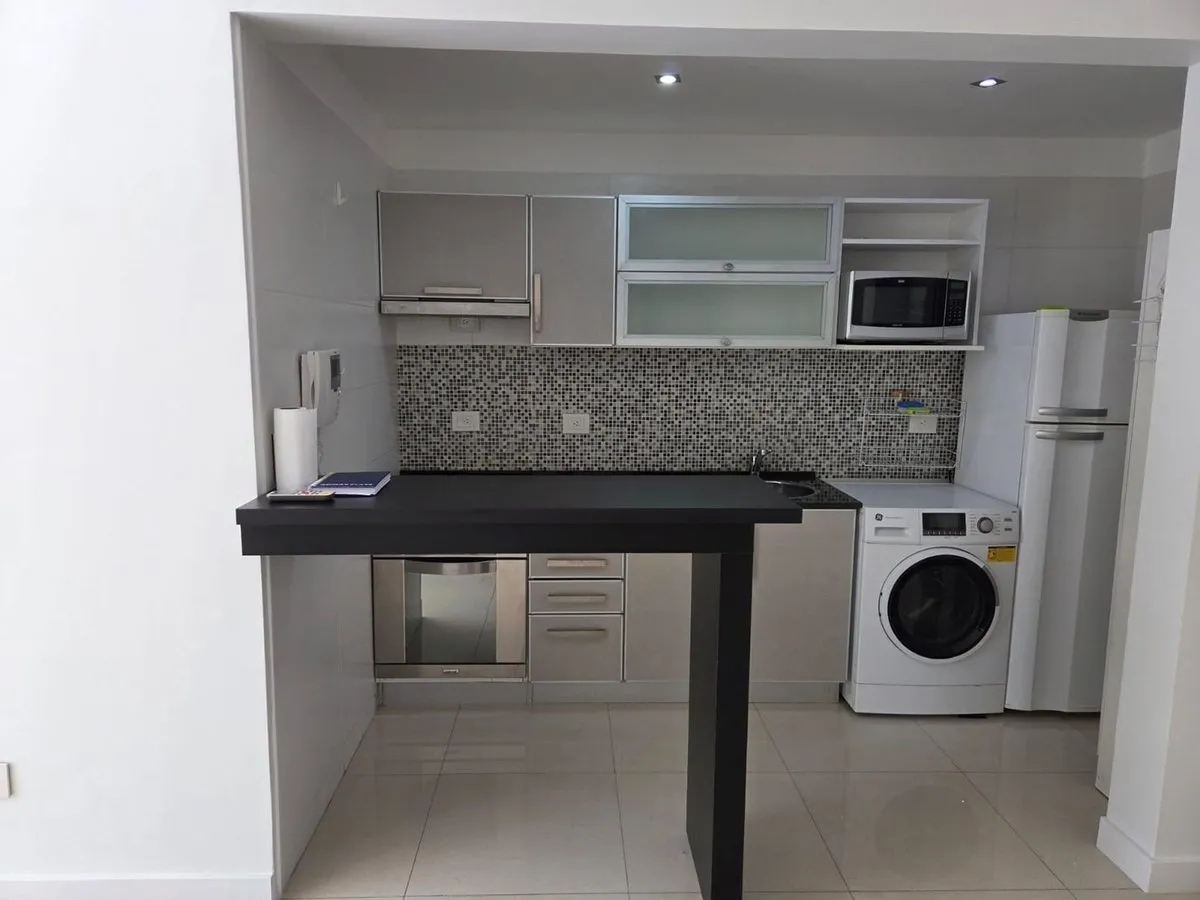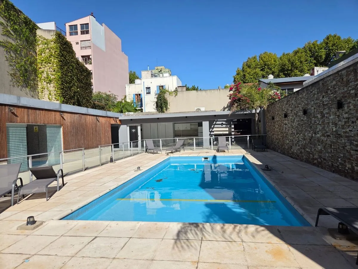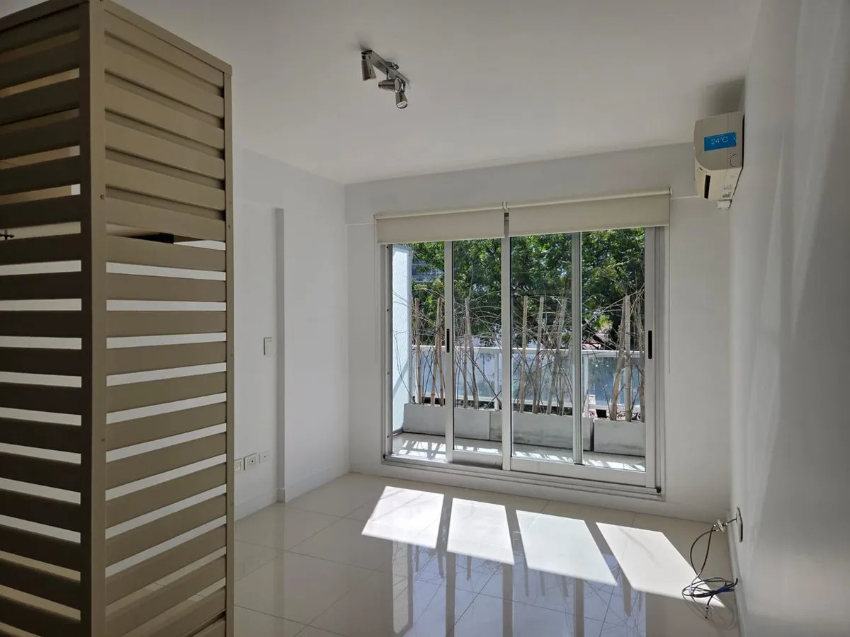 Monoambiente de 36,46 m² en segundo piso, al frente sobre Gurruchaga, con orientación norte y balcón. Cocina semi integrada con desayunador, aire acondicionado individual frío/calor y estructura de metal para división del ambiente con espacio de guardado. El departamento incluye heladera, microondas y lavarropas. El edificio tiene seguridad 24 hs, piscina con solárium, SUM con parrilla y gimnasio.