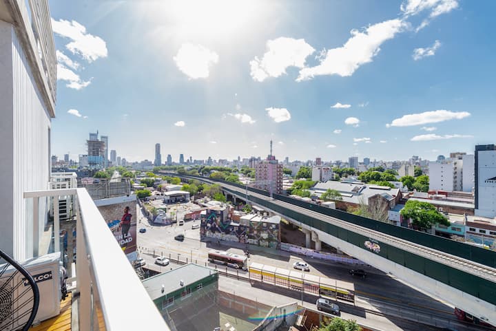 Monoambiente en 9º piso al frente con pileta en Villa Crespo