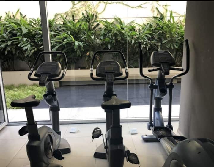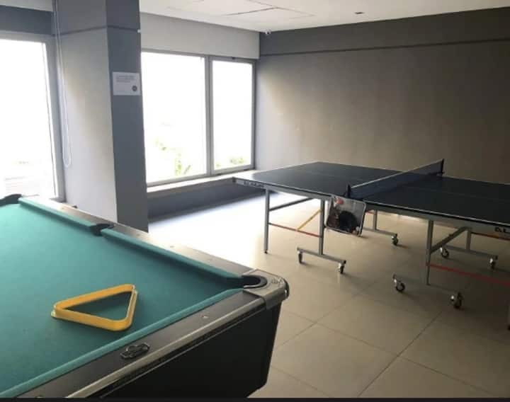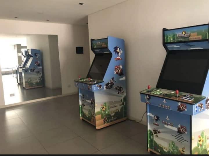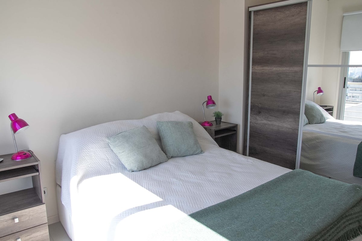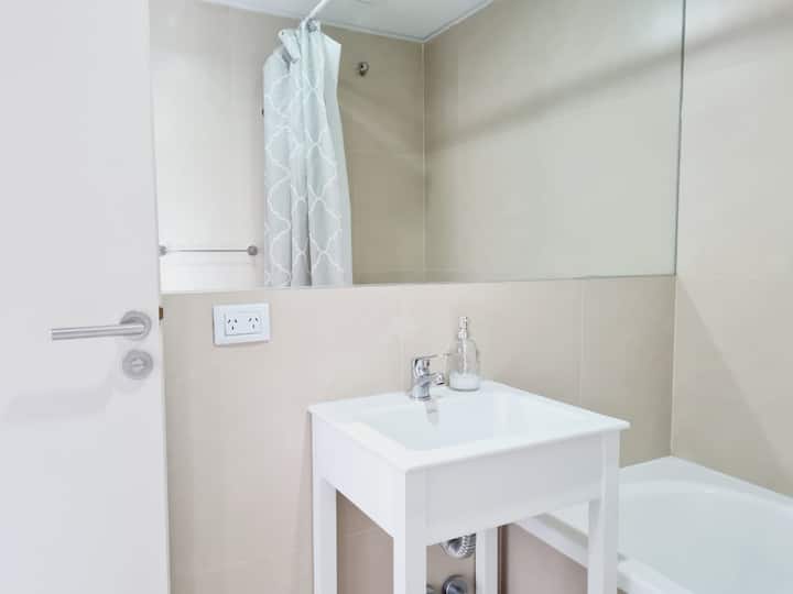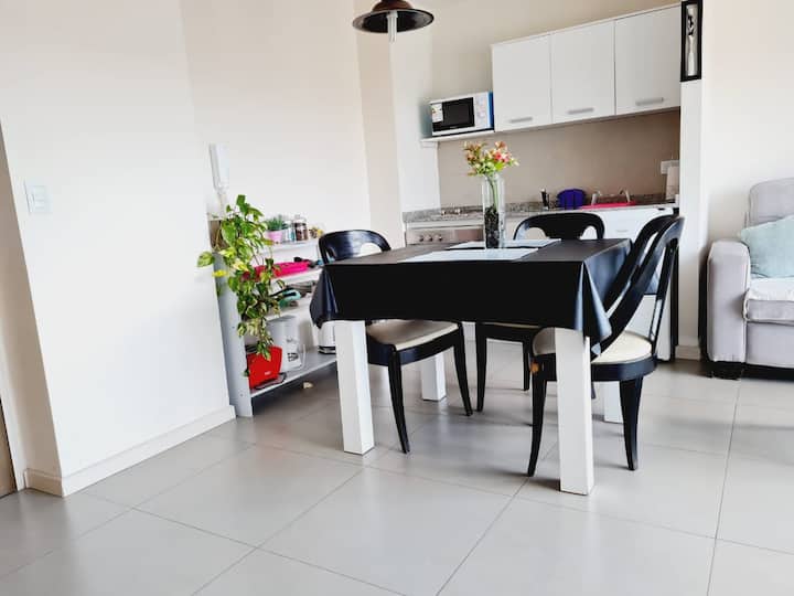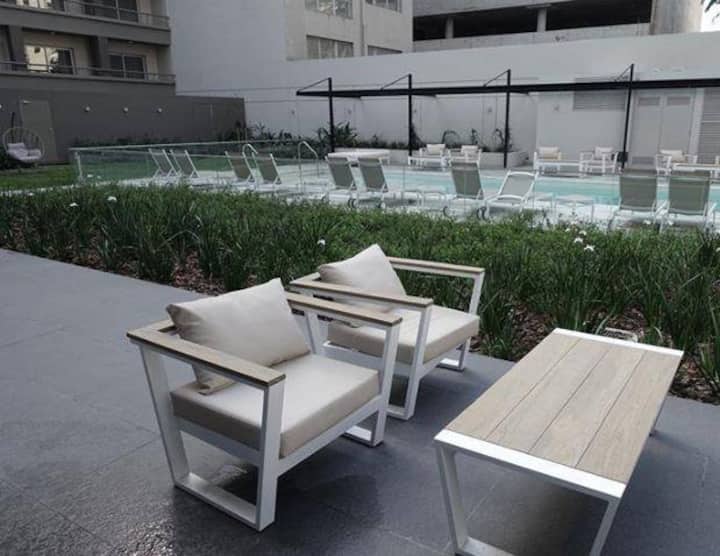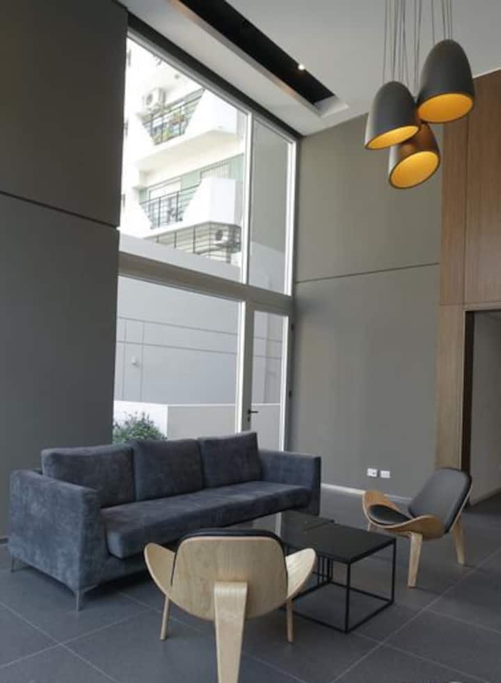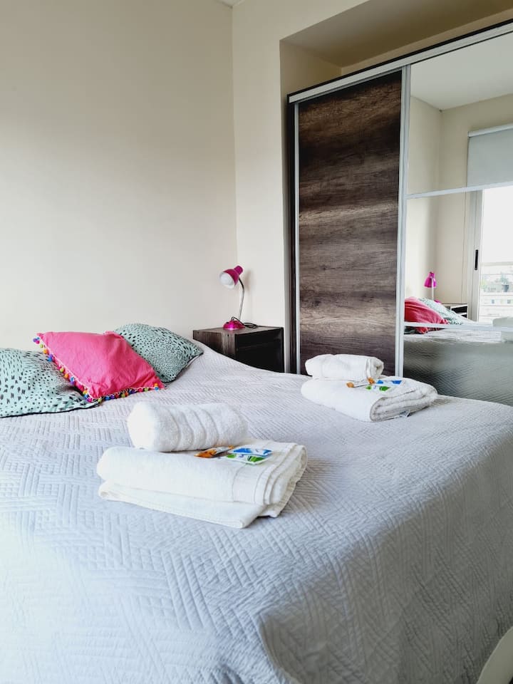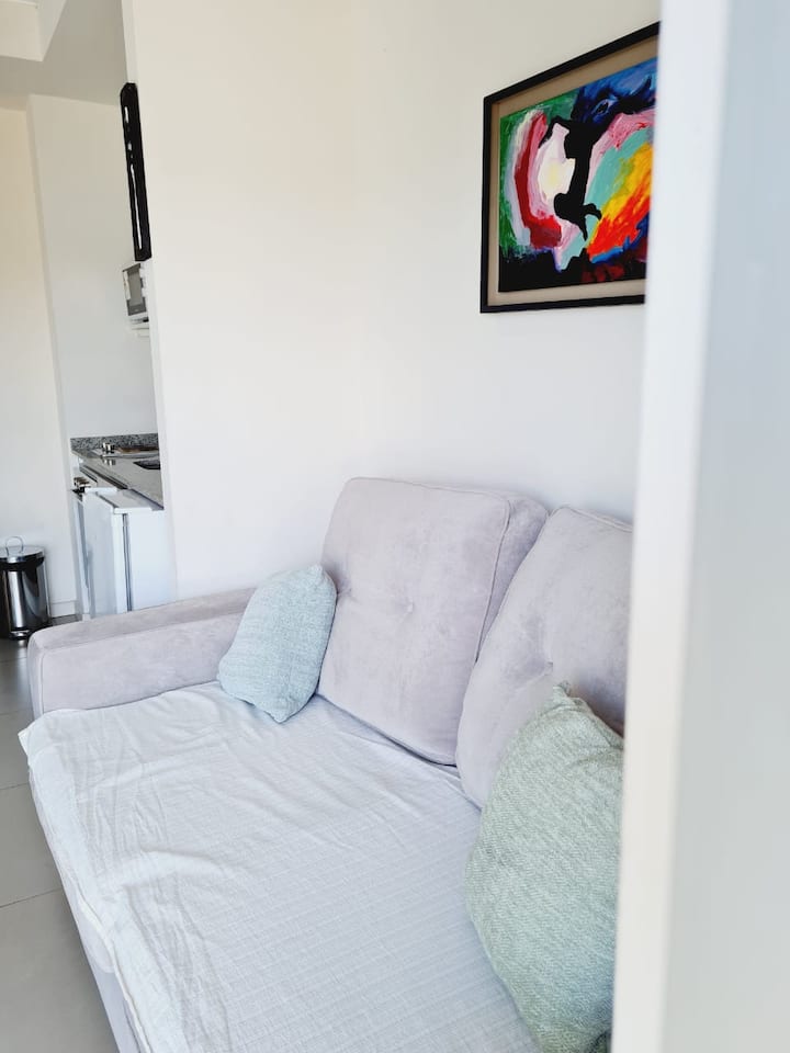 Departamento tipo torre en Villa Crespo, en el piso 12, con balcón y vista panorámica. Incluye pileta climatizada, gimnasio, SUM, sector de juegos, laundry, mesas de pool y ping pong, y seguridad 24 horas. Está equipado con cama doble, aire acondicionado, cortinas black out, TV inteligente con Netflix y cable, WiFi, cocina con horno y microondas, cafetera y vajilla. Se solicita DNI o pasaporte al ingreso en el edificio.