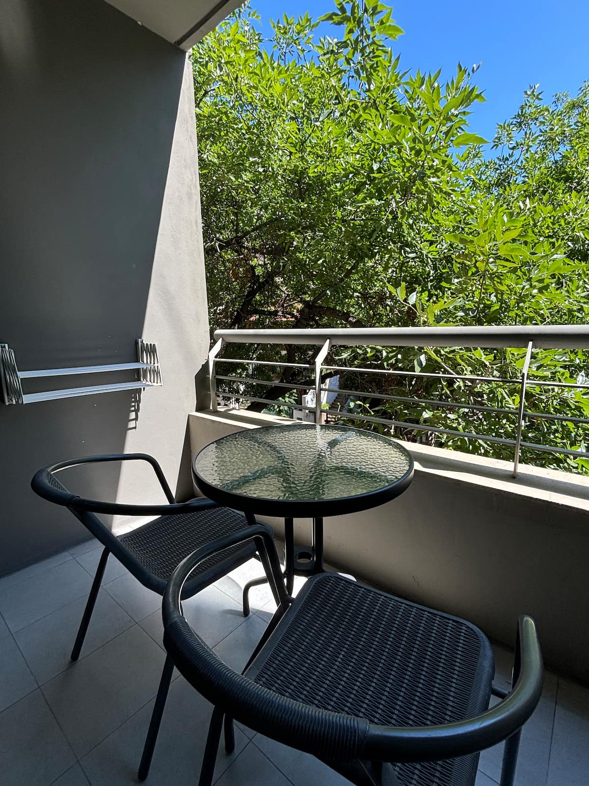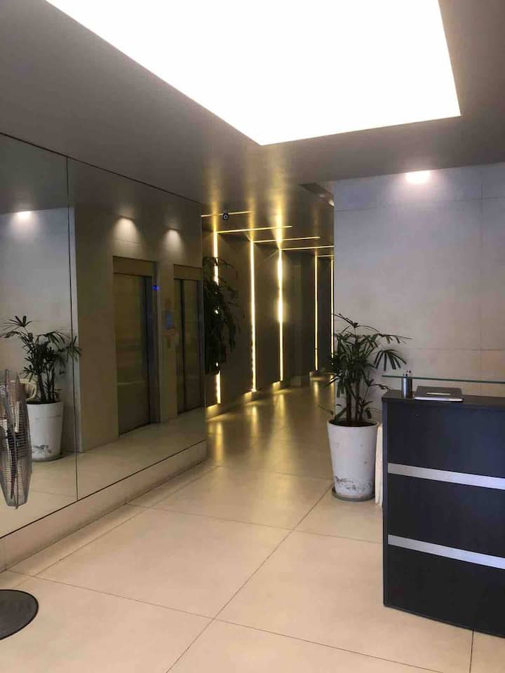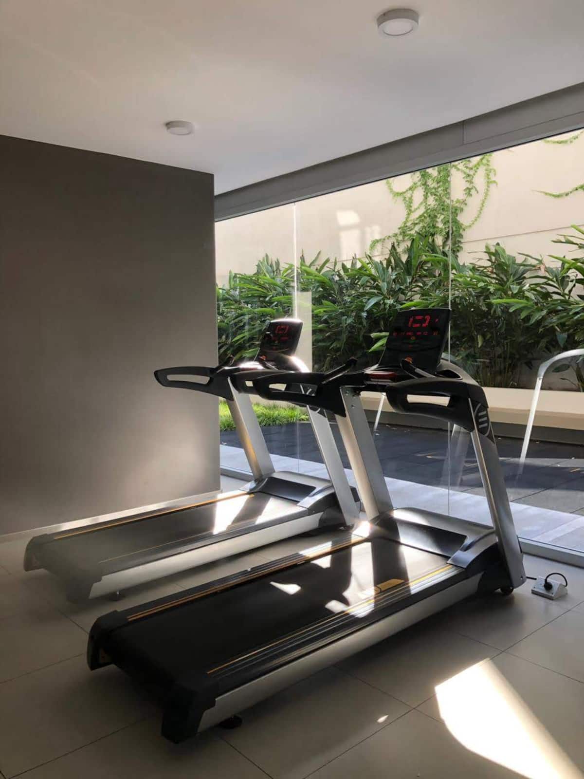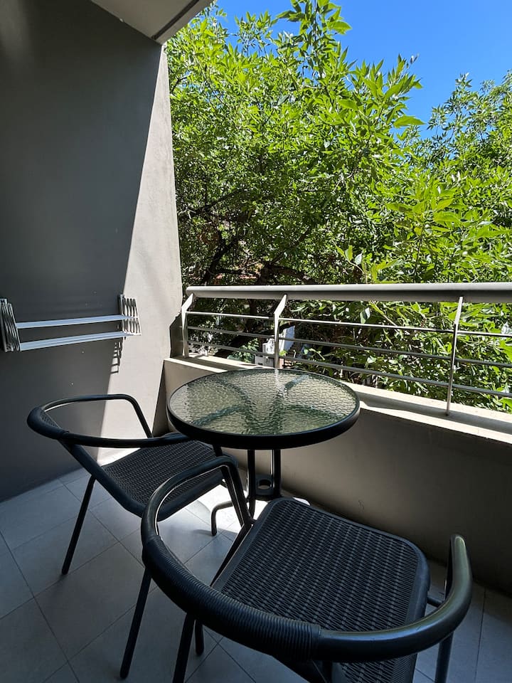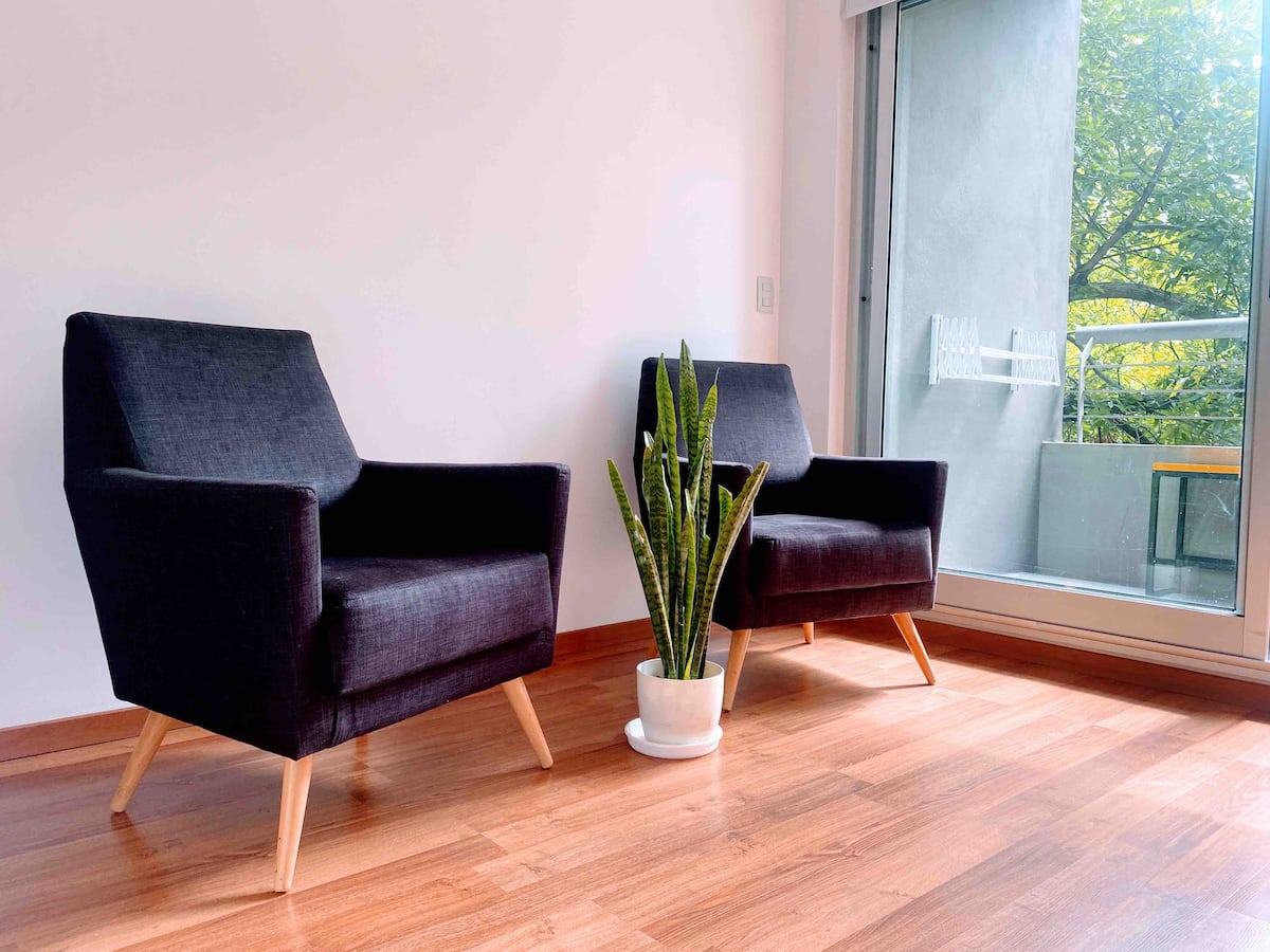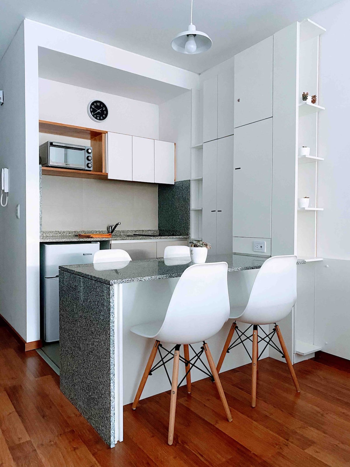 Monoambiente de 34 m² en planta a la calle con balcón. Cuenta con aire acondicionado de sistema smart, piso con doble cama y cama individual pequeña, y cocina con horno eléctrico, anafes, cafetera, tostadora y pava eléctrica. Incluye WiFi con fibra óptica, TV smart de 43", cable TV y equipamiento de sonido. El edificio dispone de seguridad 24 horas, piscina climatizada, jardín, gimnasio y sala de juegos; el SUM se usa para ese servicio según disponibilidad. La piscina climatizada funciona del 1