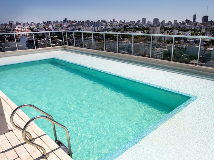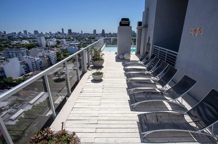 Monoambiente en Villa Crespo en torre con pileta y solárium