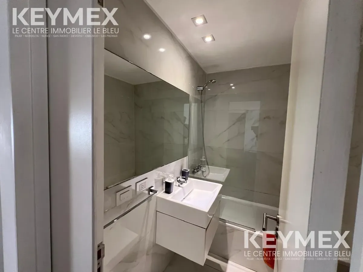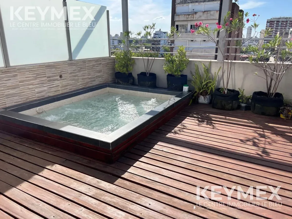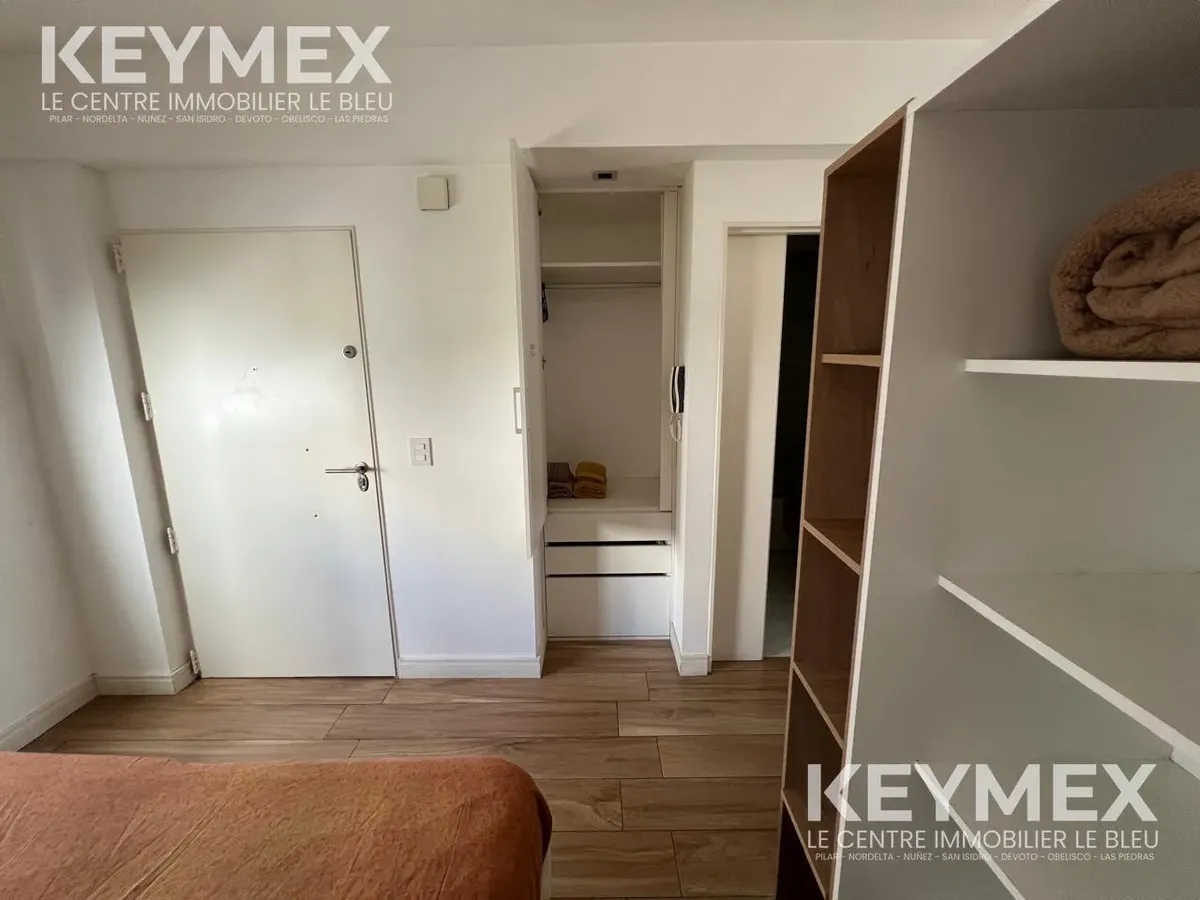 Departamento monoambiente en Villa Crespo con balcón y cochera cubierta. Se alquila con amoblamiento completo: cama de 2 plazas, livings de 2 cuerpos, mesa ratona y mesa de comedor/cocina con sillas; heladera con freezer, microondas, TV plasma de 40 pulgadas y pava eléctrica. Cocina con alacenas y bajo mesada, cocina de 4 hornallas con horno y calefón a botonera (ambos a gas); baño completo con bañera y bidet. El edificio cuenta con SUM con parrilla, hidromasaje para 6 personas con solárium y la