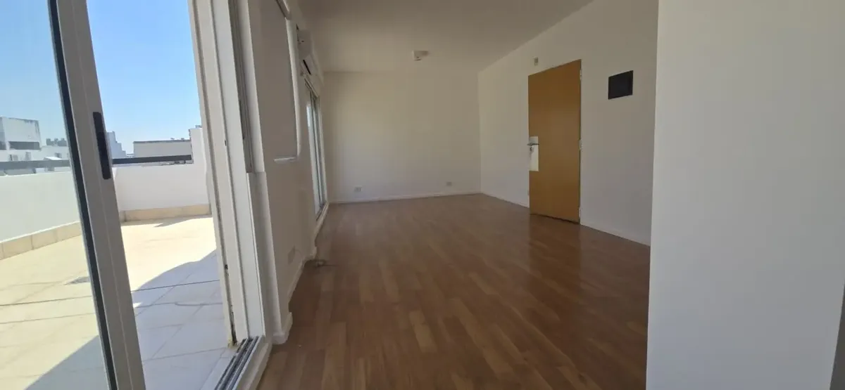 Departamento monoambiente divisible en Villa Crespo, apto profesional y comercial. 8º piso, frente, con balcón terraza de 25 m2 aprox. Cuenta con living comedor, cocina, baño completo y posibilidad de generar 1 dormitorio por la disposición apaisada, con acceso desde todos los ambientes al balcón terraza. Incluye pisos flotantes, aire acondicionado Electra frío/calor, horno y anafe eléctrico Smeg, y termotanque eléctrico Ecotermo.