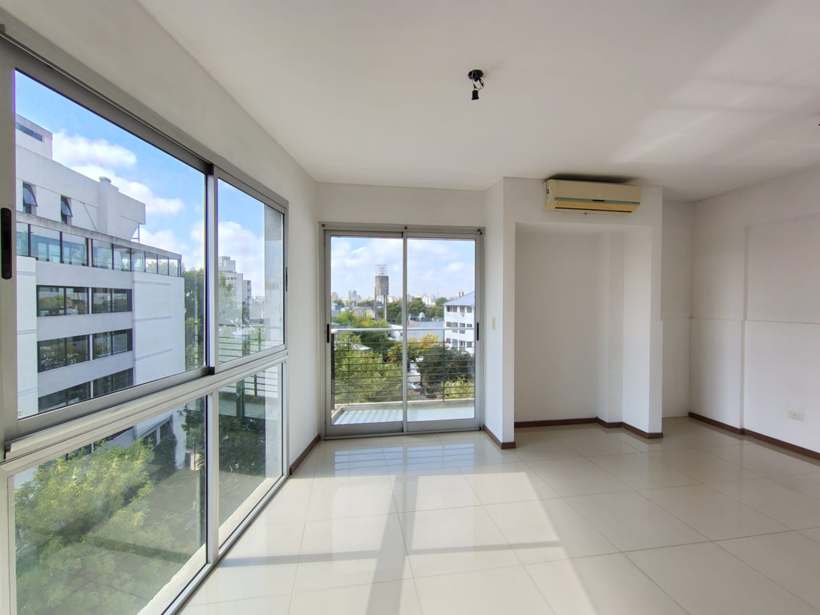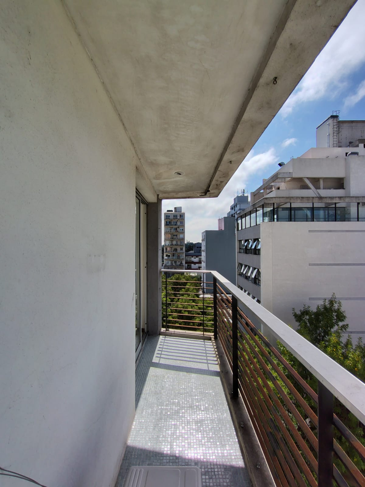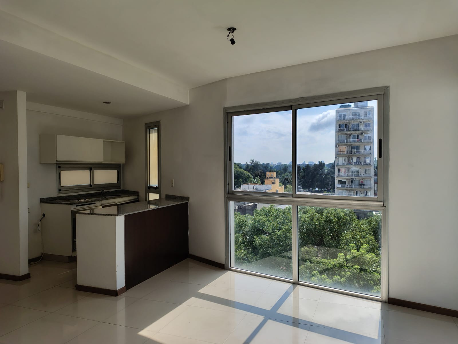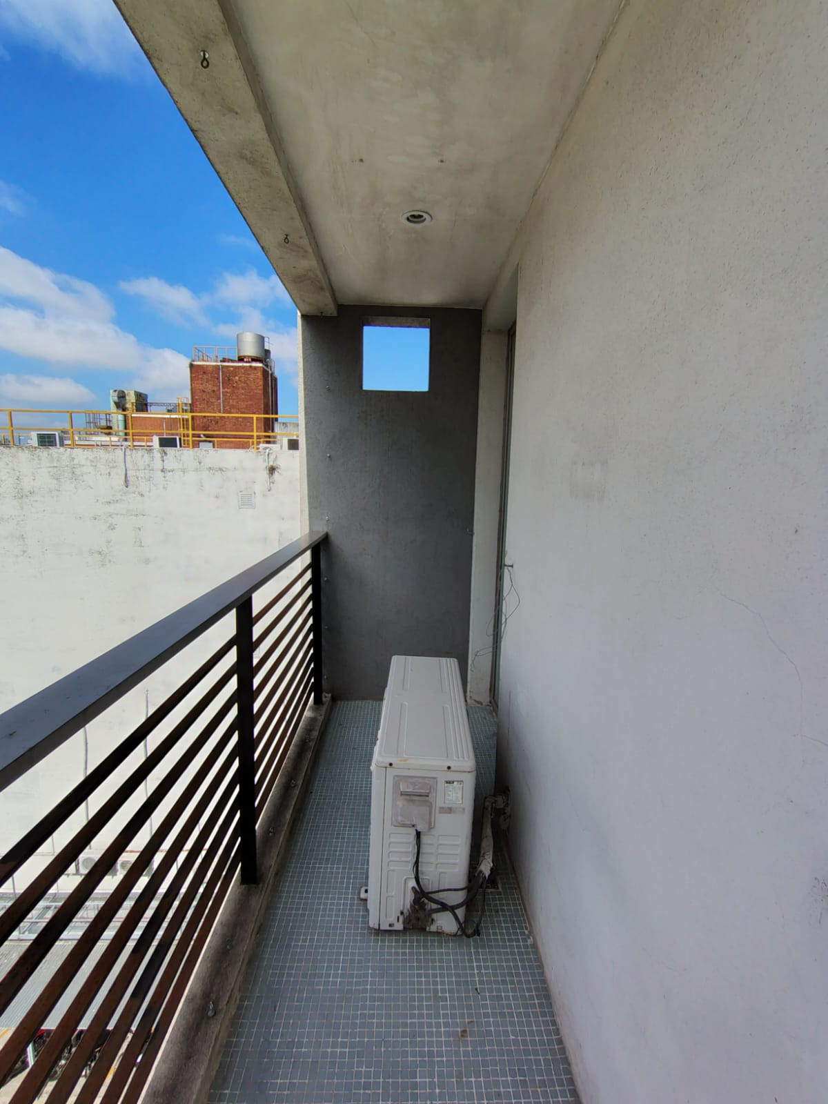 Departamento monoambiente con 29,12 m² (5,60x5,20 m) con piso de porcelanato, aire split frío/calor y área de cocina con mueble desayunador y mueble bajo mesada. Cuenta con baño completo y balcón de 4,40x1 m.