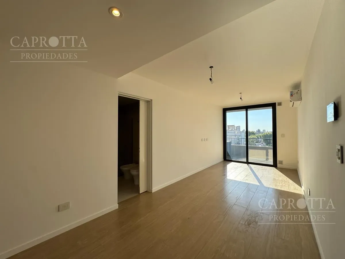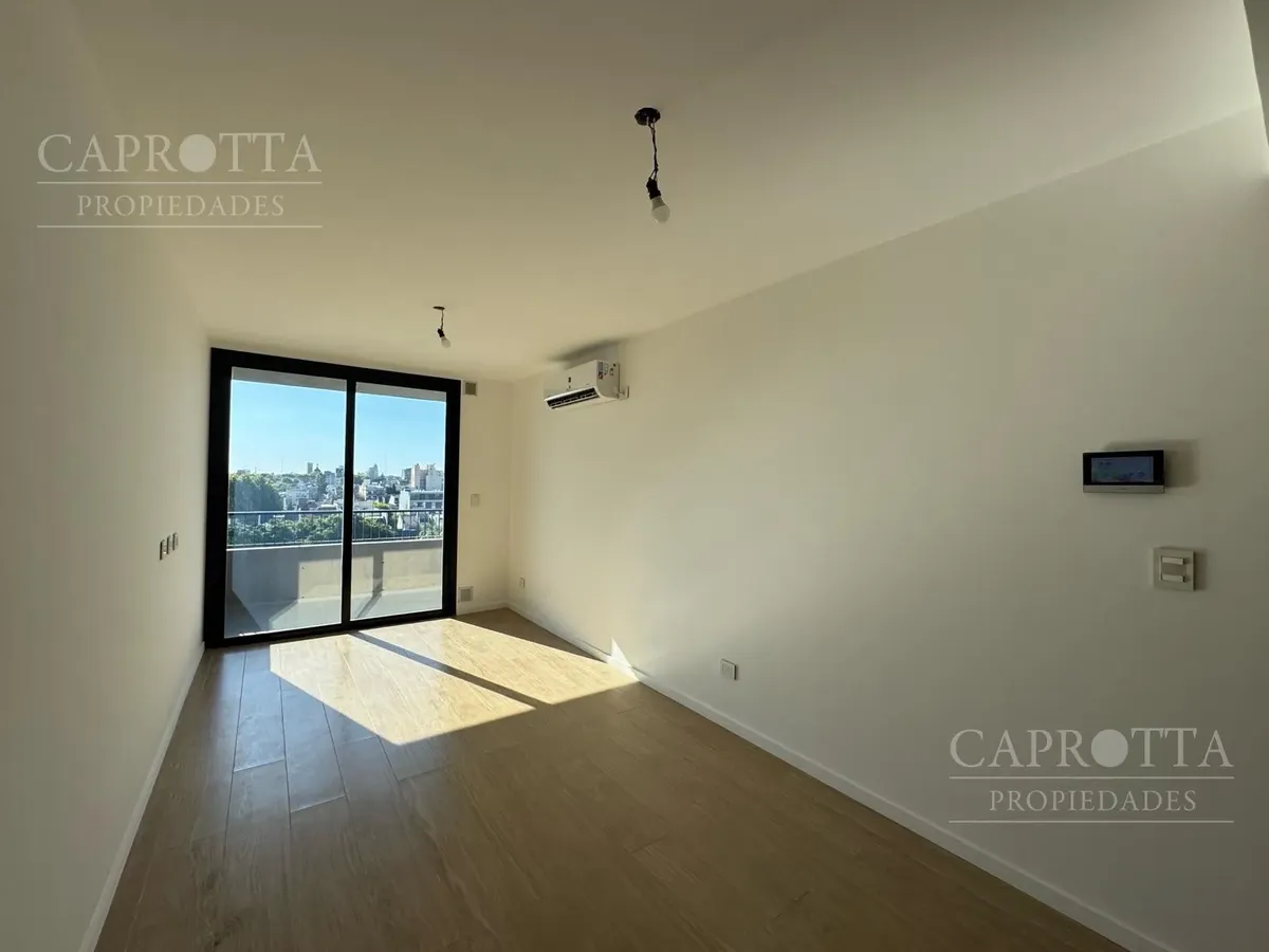 Monoambiente a estrenar en Villa del Parque, con orientación norte. Cuenta con equipo split frío/calor, cortinado blackout y placard con interiores completos, listo para habitar. Incluye instalación para lavarropas en el balcón al contrafrente. El edificio dispone de SUM en planta baja con cocina y mesa de pool, piscina y terraza con parrilla y pérgola. Apto uso profesional; no apto mascotas.