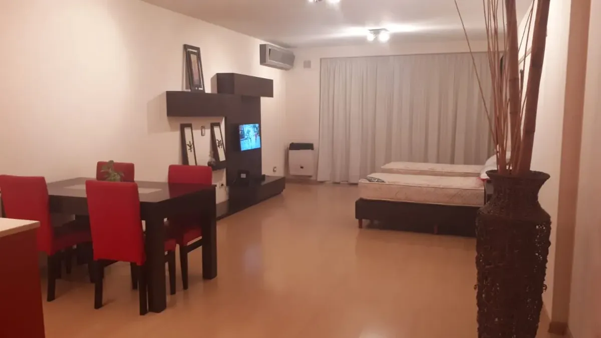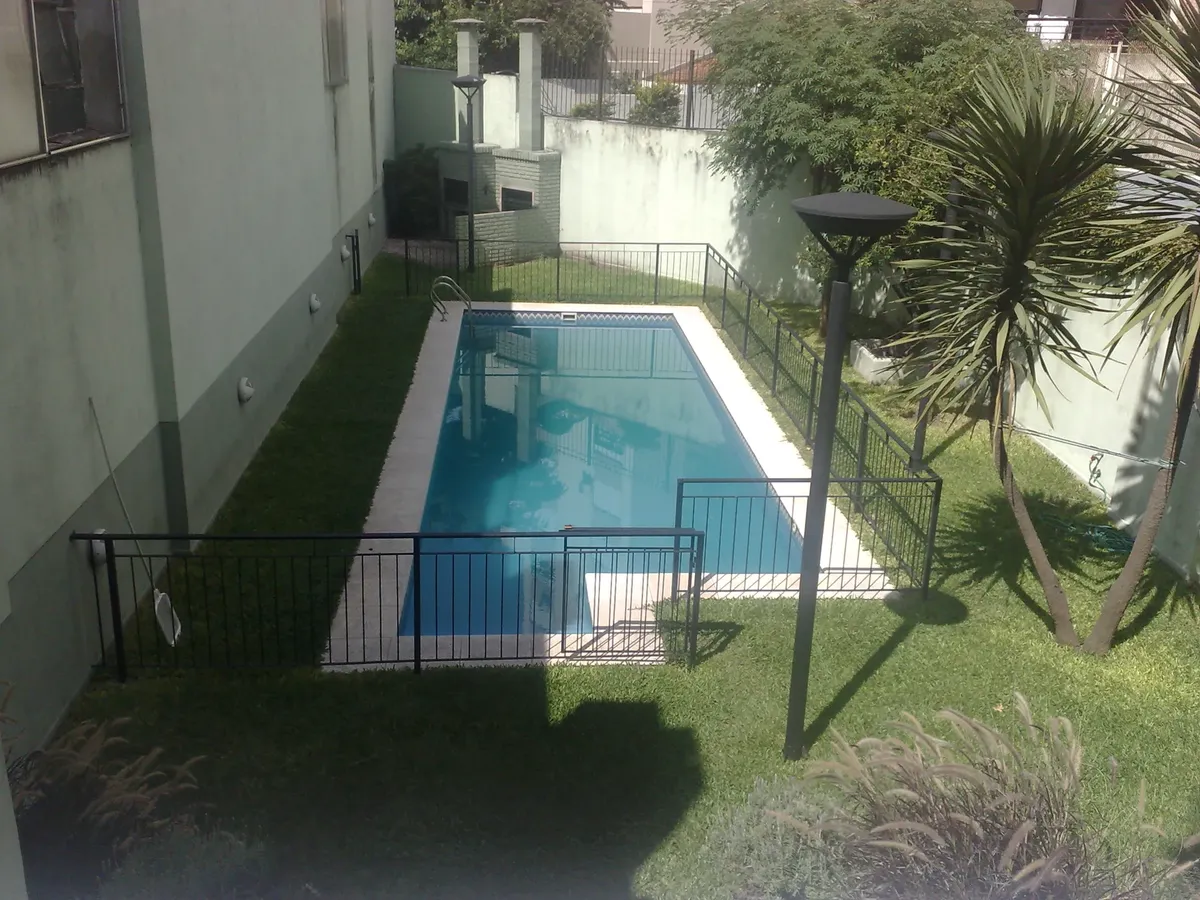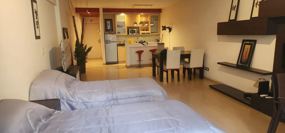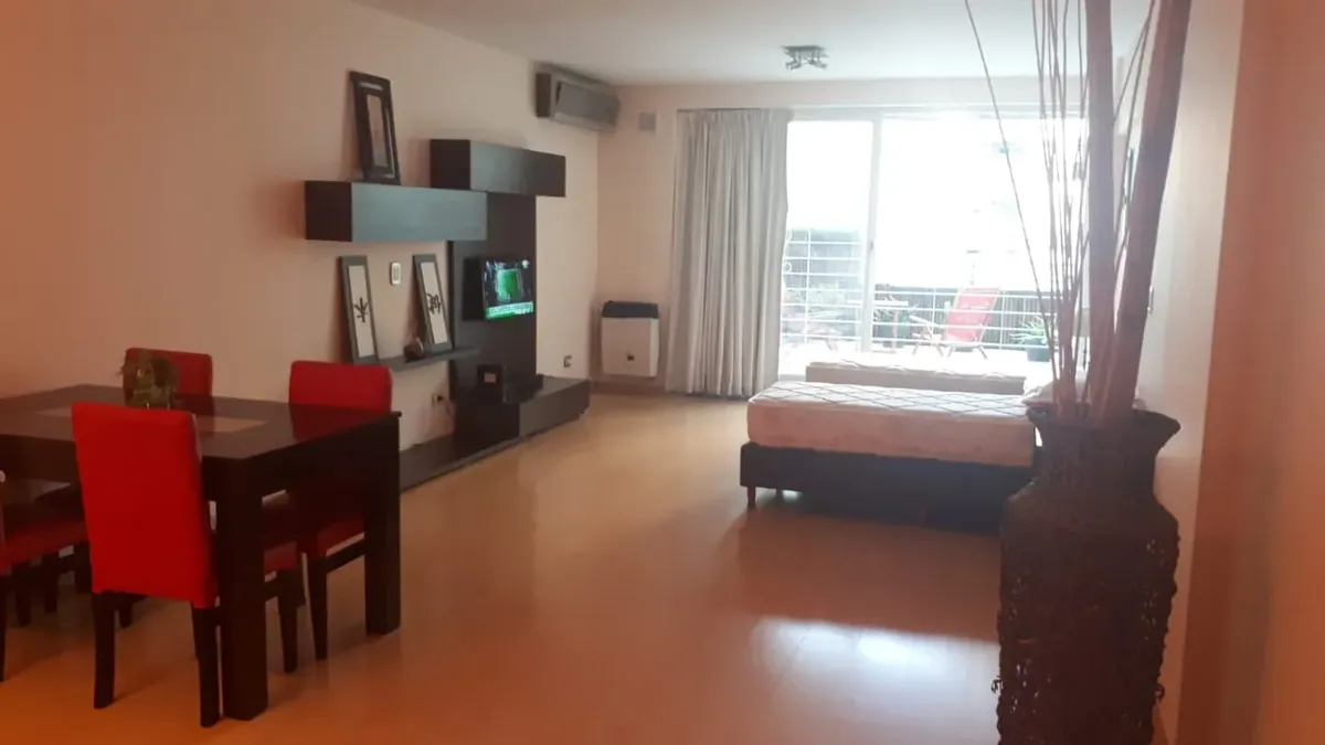 Departamento studio amueblado con balcón terraza y vista a la piscina en Villa del Parque