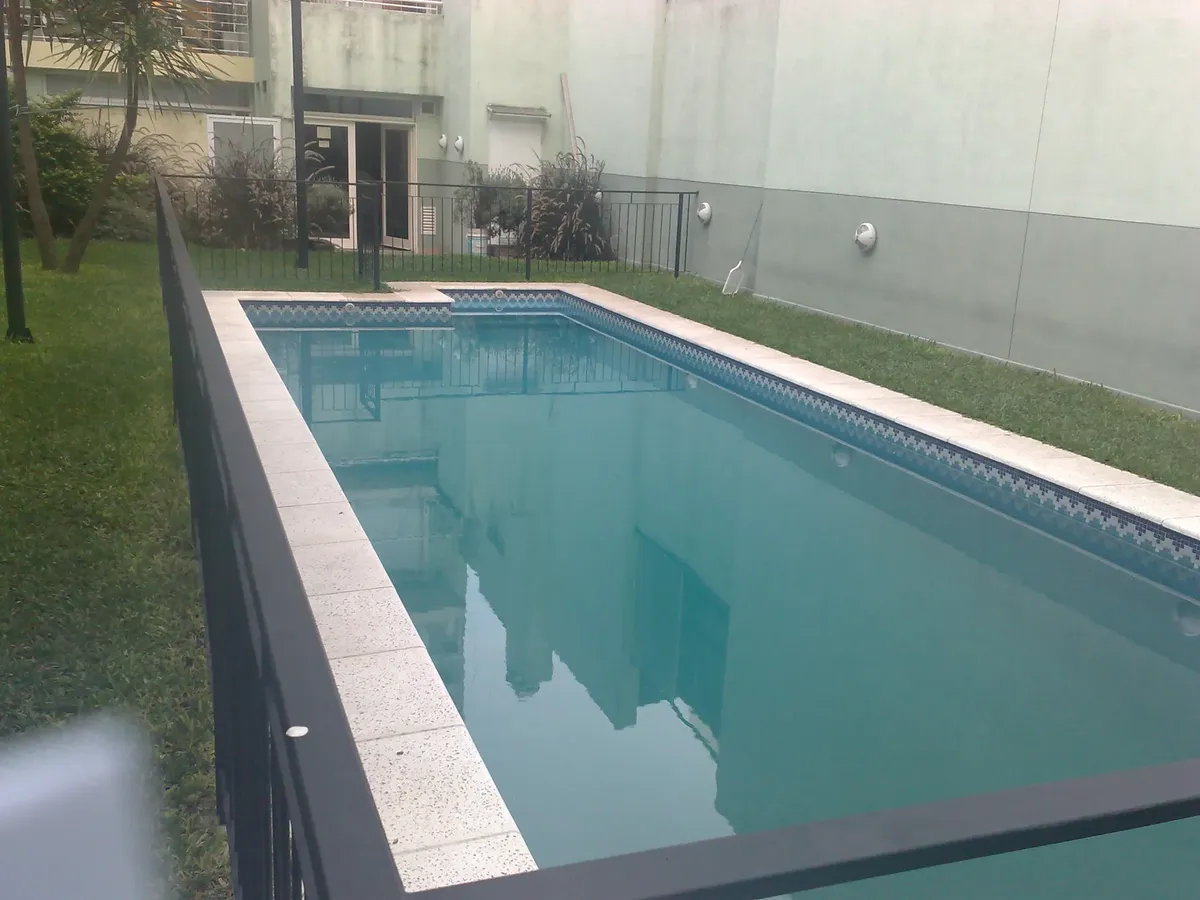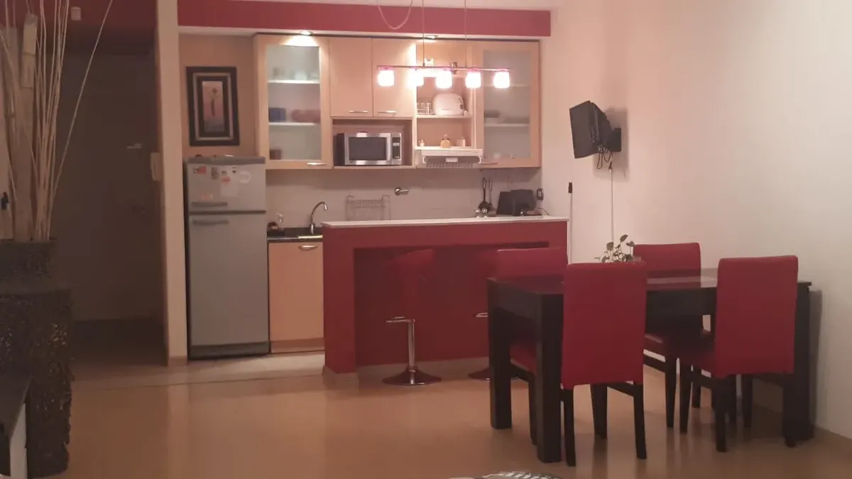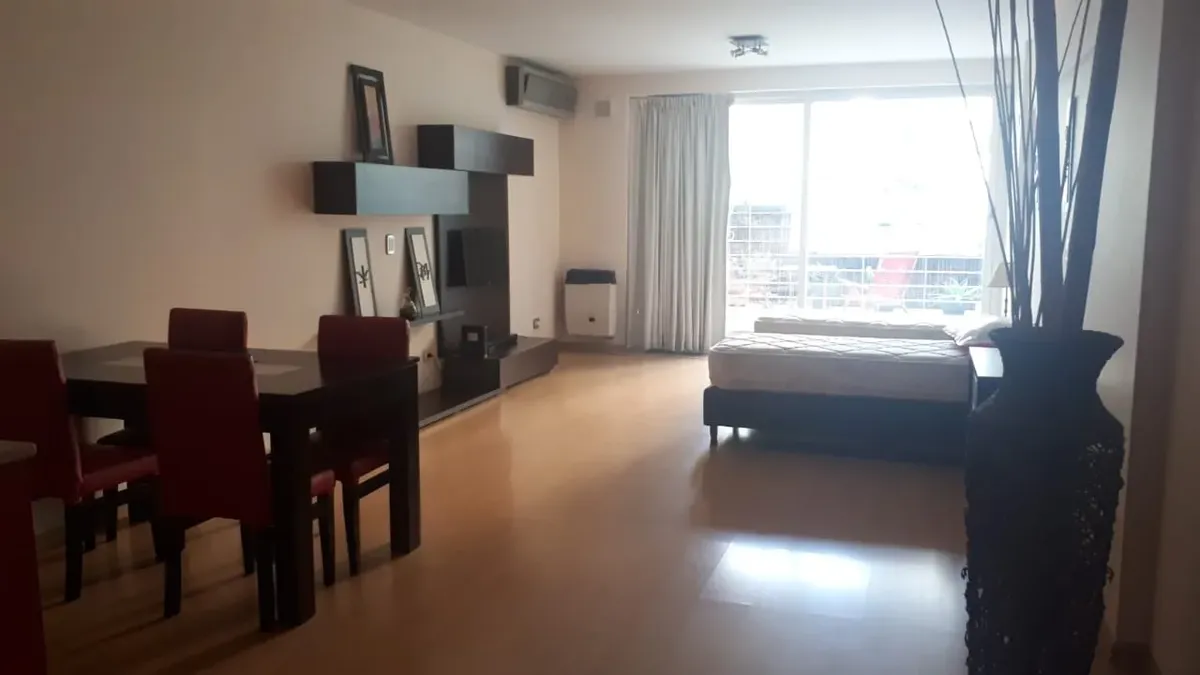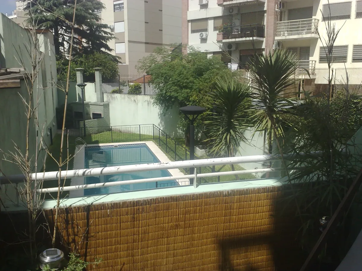 Departamento studio amueblado con balcón terraza y vista a la piscina en Villa del Parque