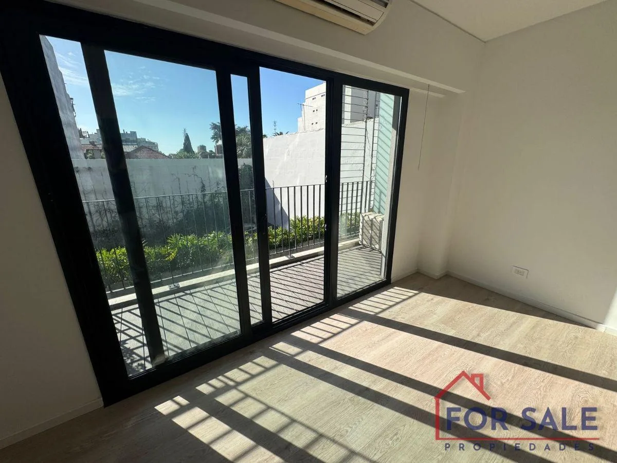 Monoambiente de 1 ambiente en el edificio “Devoto Blue”, con balcón al contrafrente. Dispone de cocina integrada con anafe eléctrico vitrocerámico, horno eléctrico empotrado y extractor de olores. Cuenta con placard/vestidor con conexión para lavarropas, aire acondicionado split frío/calor y baño completo. Incluye baulera en subsuelo; el edificio tiene terraza con parrillas y SUM. El valor publicado incluye expensas: $800.000. Requiere recibos de sueldo acordes, seguro de garantía (Finaer o Gara