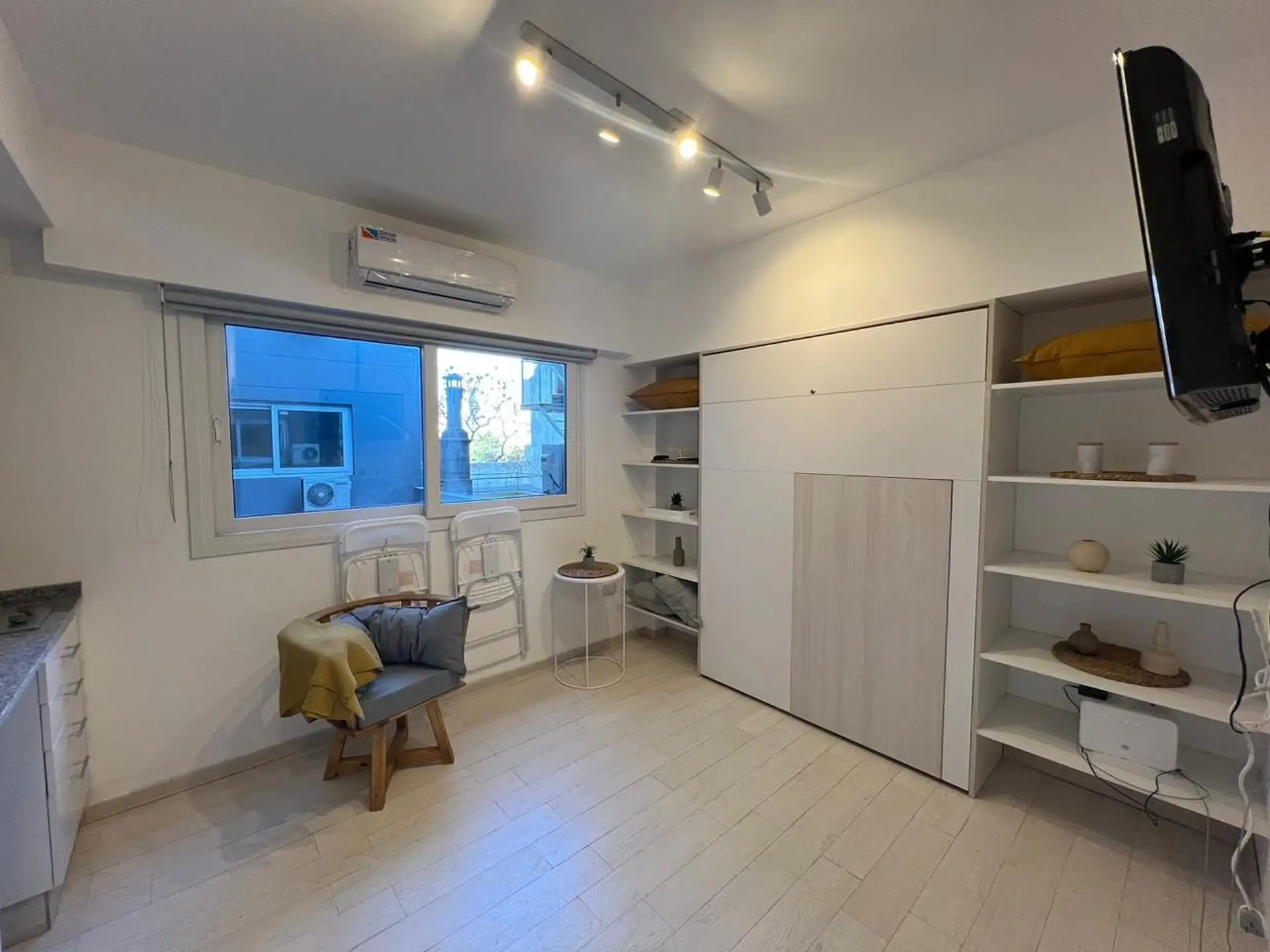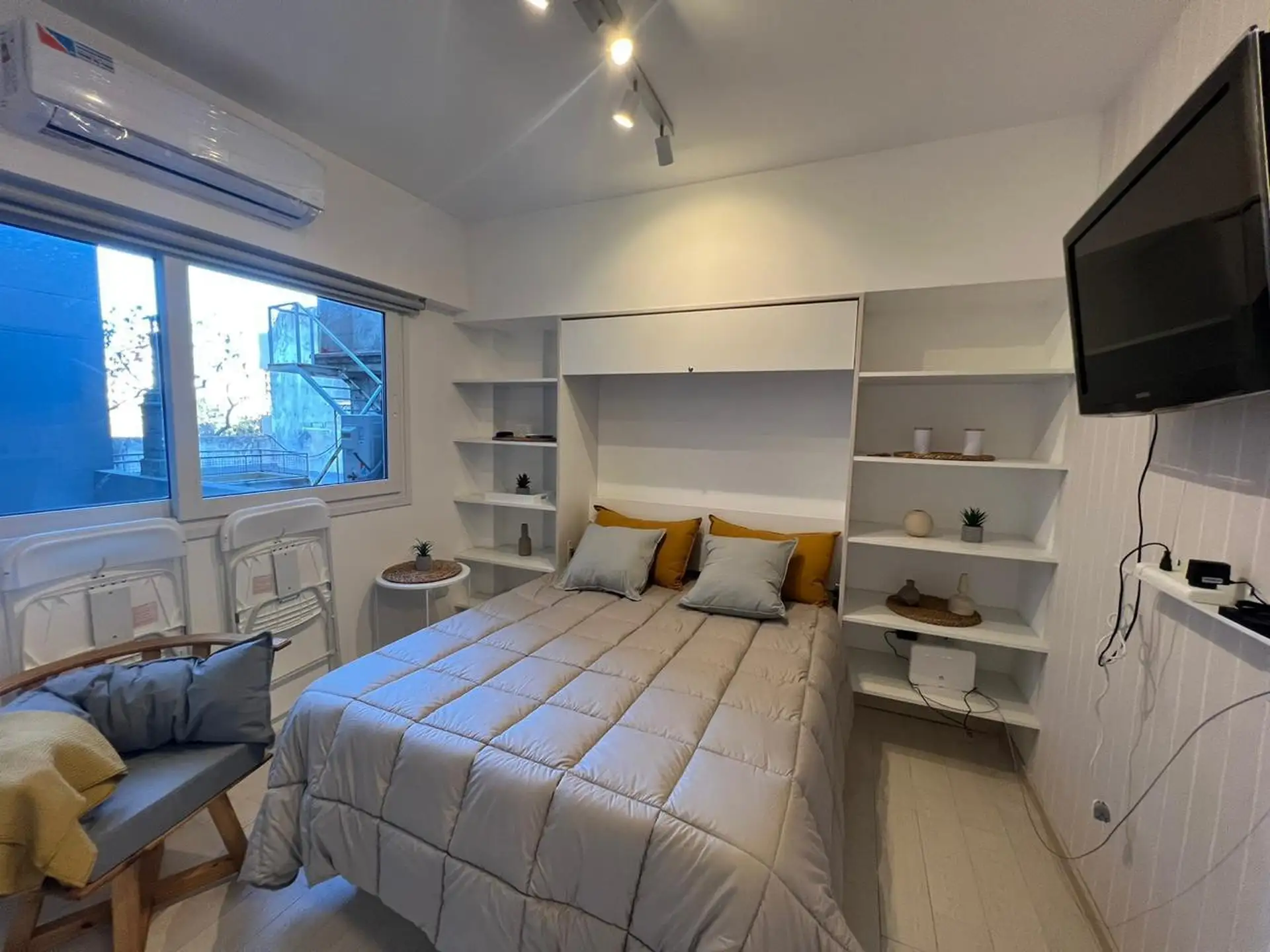 Monoambiente de 20 m² totales en alquiler, totalmente amoblado y equipado. Incluye baño completo, aire acondicionado split frío/calor, heladera y cama. Se solicita un mes de adelanto, un mes de depósito, demostración de ingresos y garantía (propietaria de CABA o seguro de caución), con contrato por 2 años y aumentos por IPC cada 3 meses.