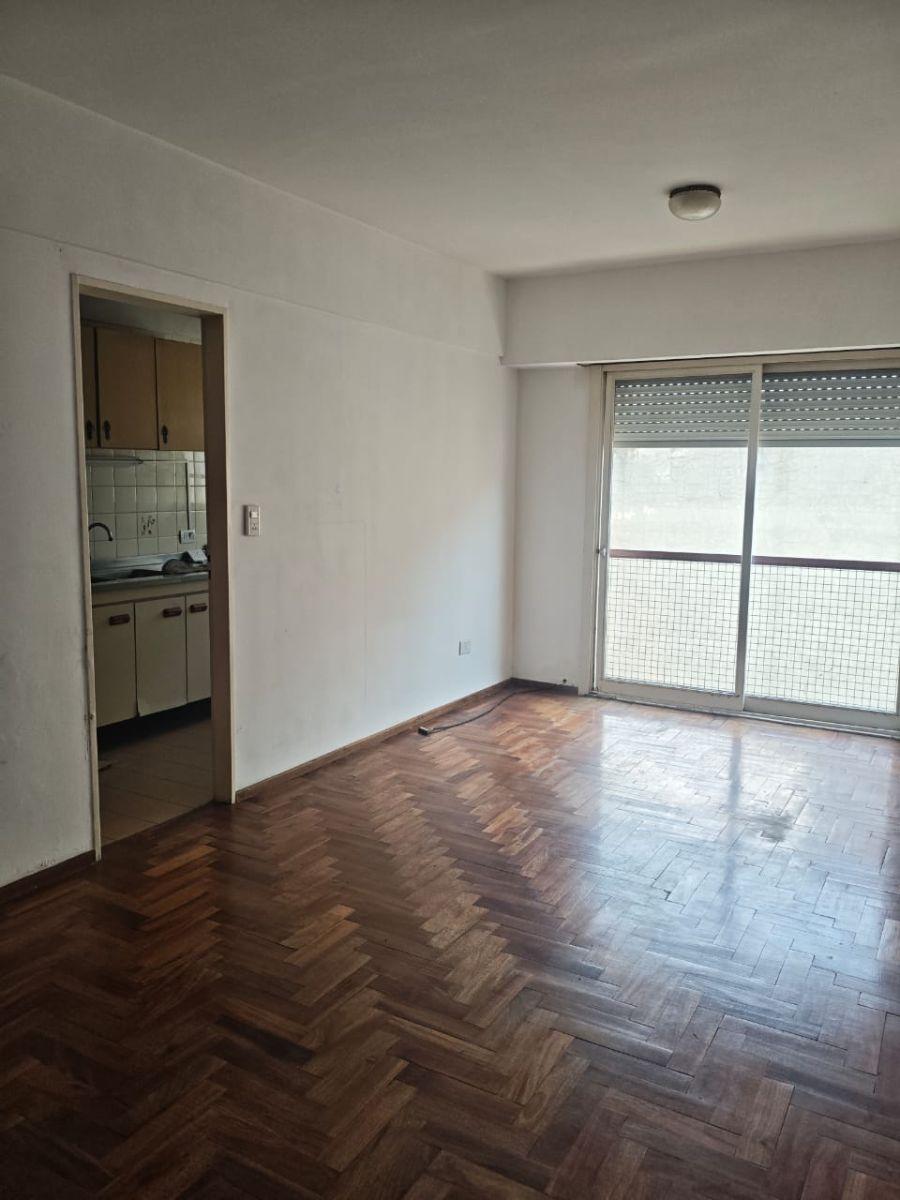 Departamento de 1 ambiente de 28 m² de superficie construida y 27 m² totales, con disposición contrafrente. Cocina independiente y baño completo. El edificio tiene ascensor y encargado, con 3 departamentos por piso y una antigüedad de 40 años.