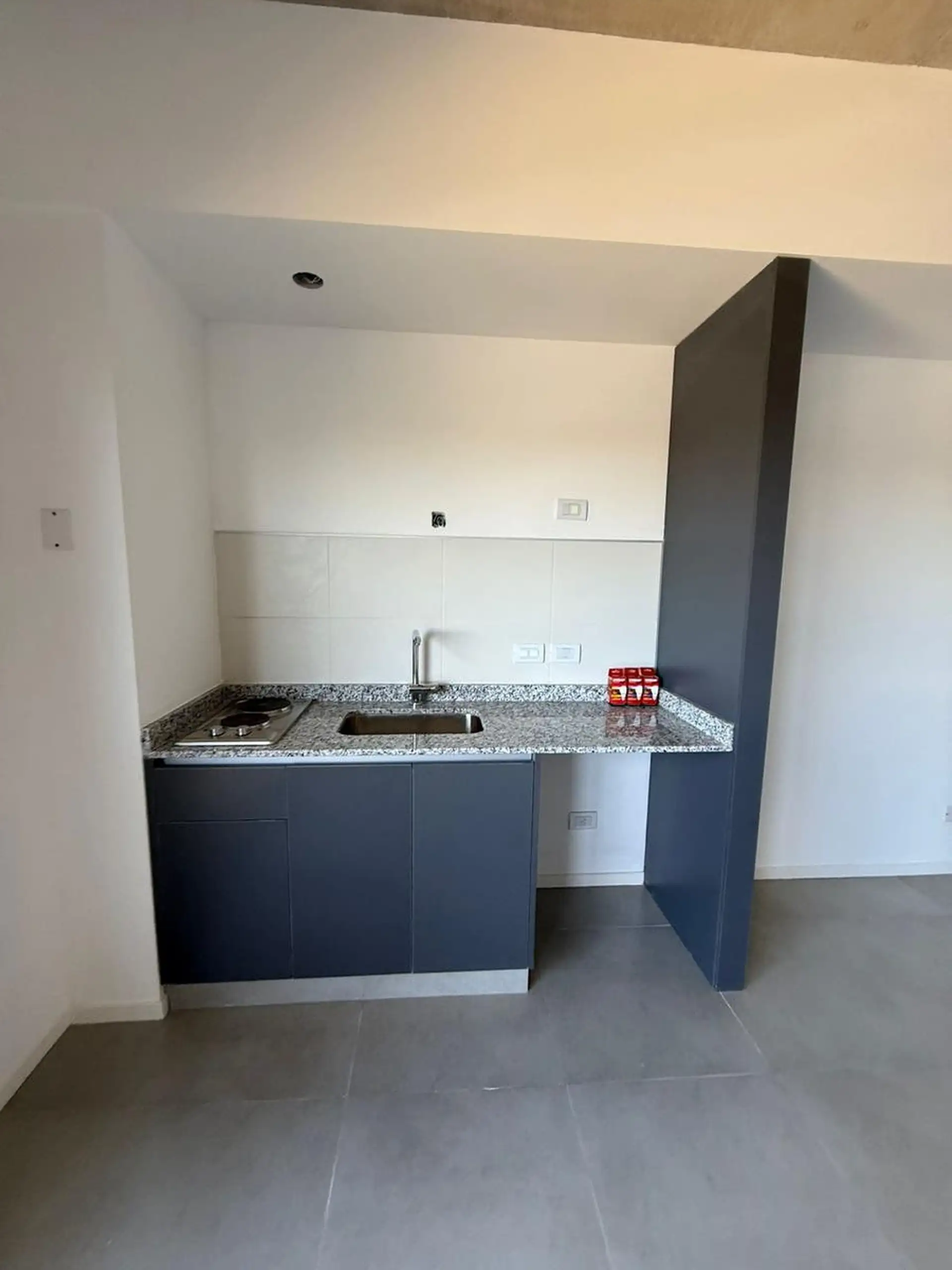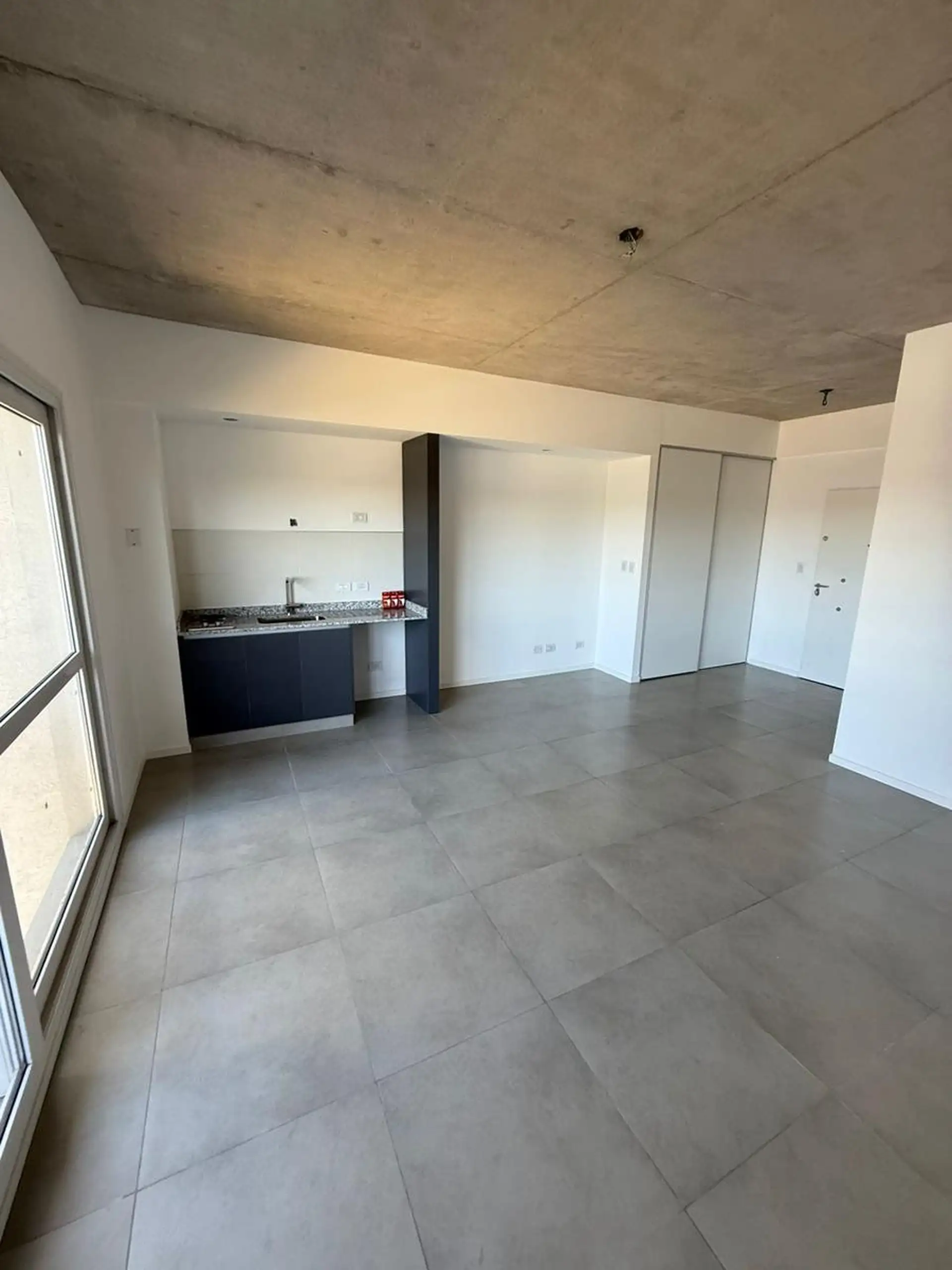 Departamento tipo monoambiente a estrenar en Villa Martelli, con balcón y baño completo. Cocina integrada con mobiliario bajo mesada y balcón con vista al jardín. El edificio cuenta con seguridad, piscina, gimnasio, parrilla y SUM.