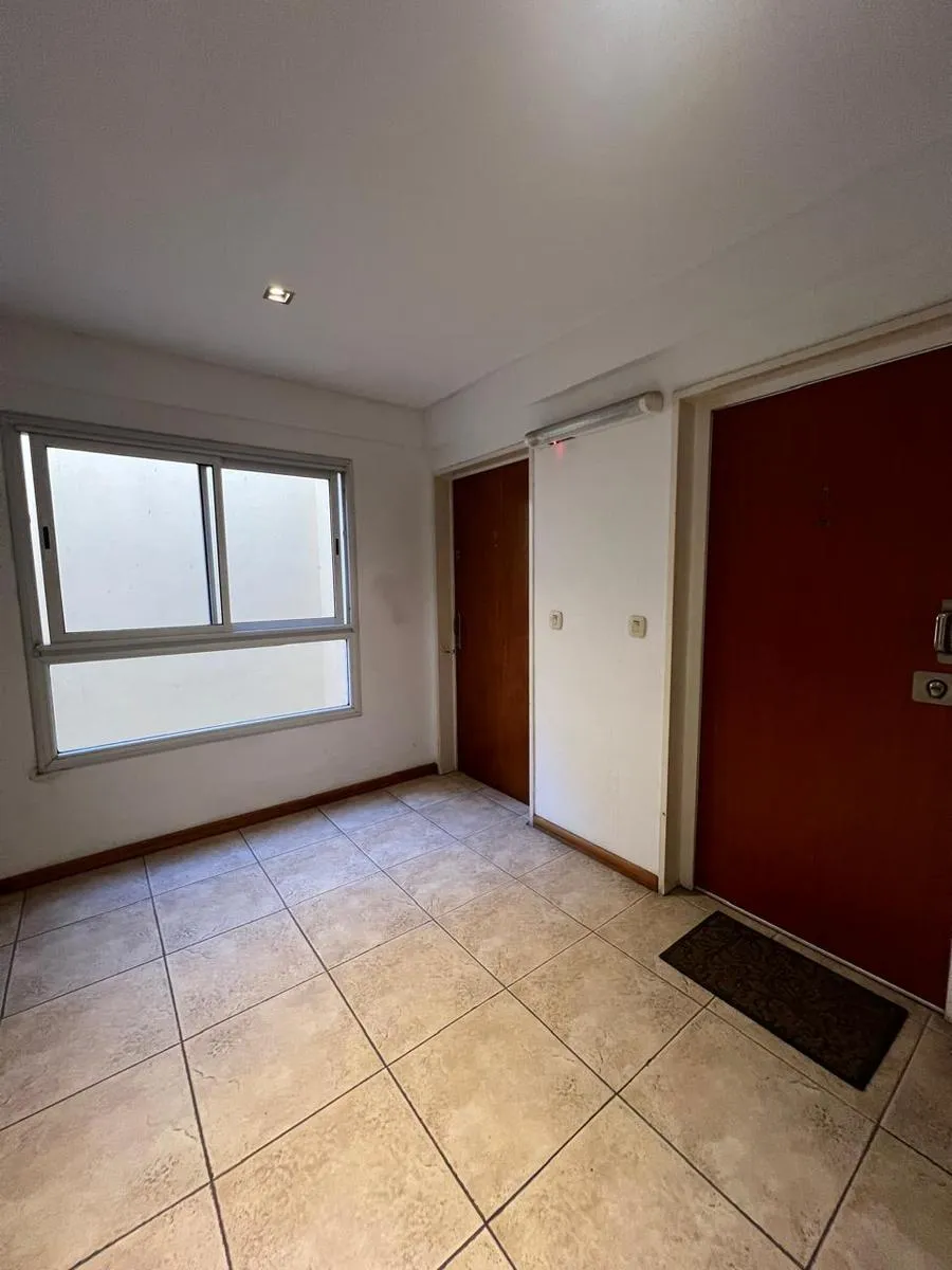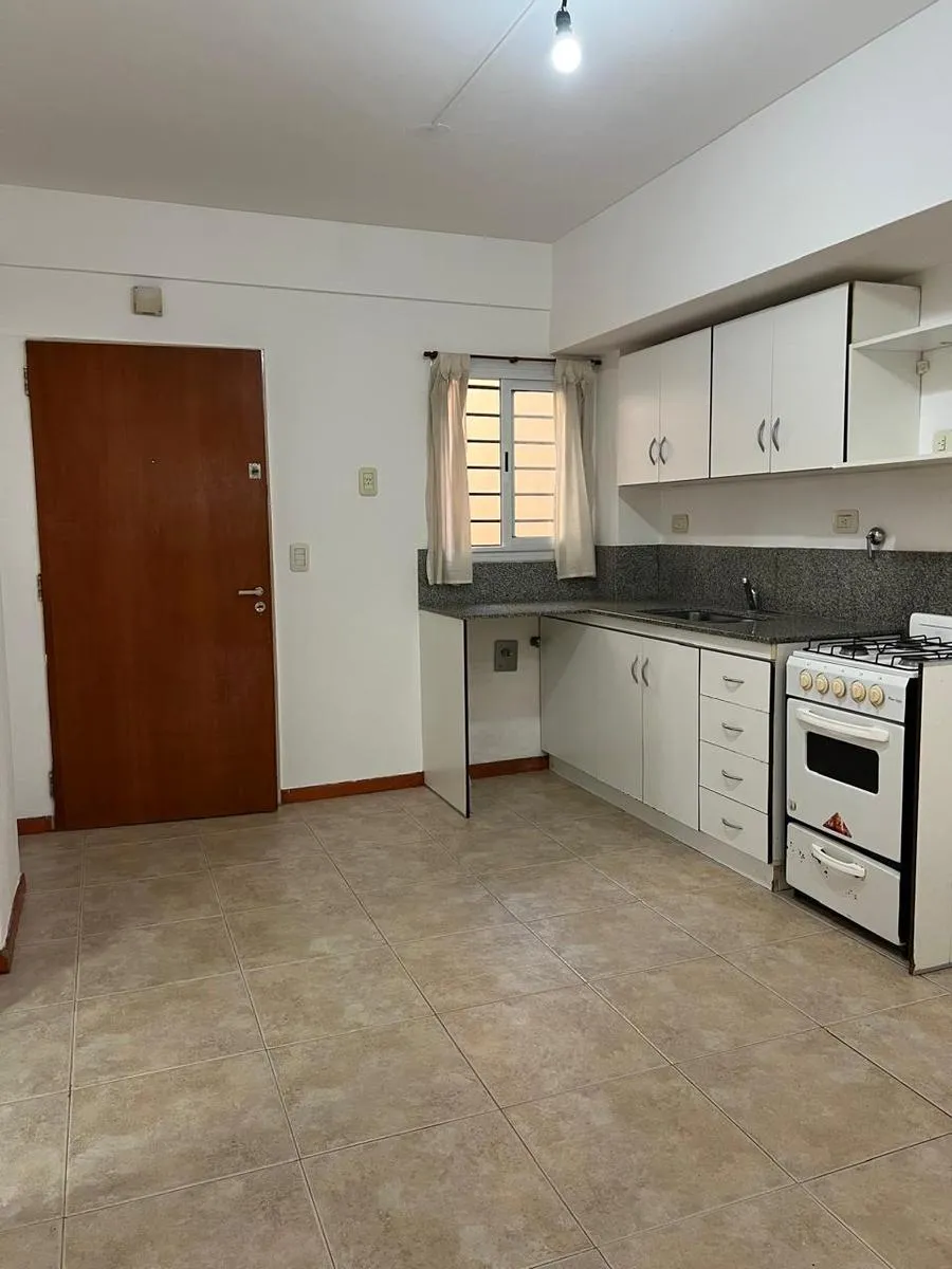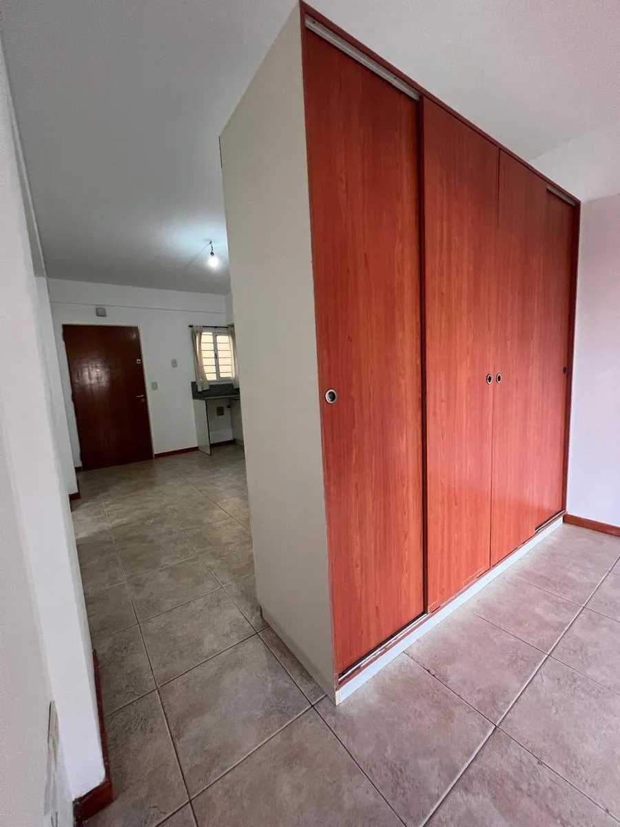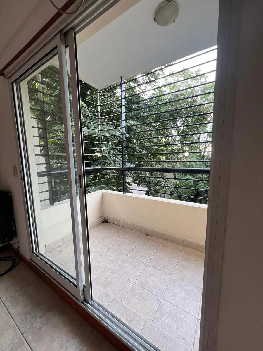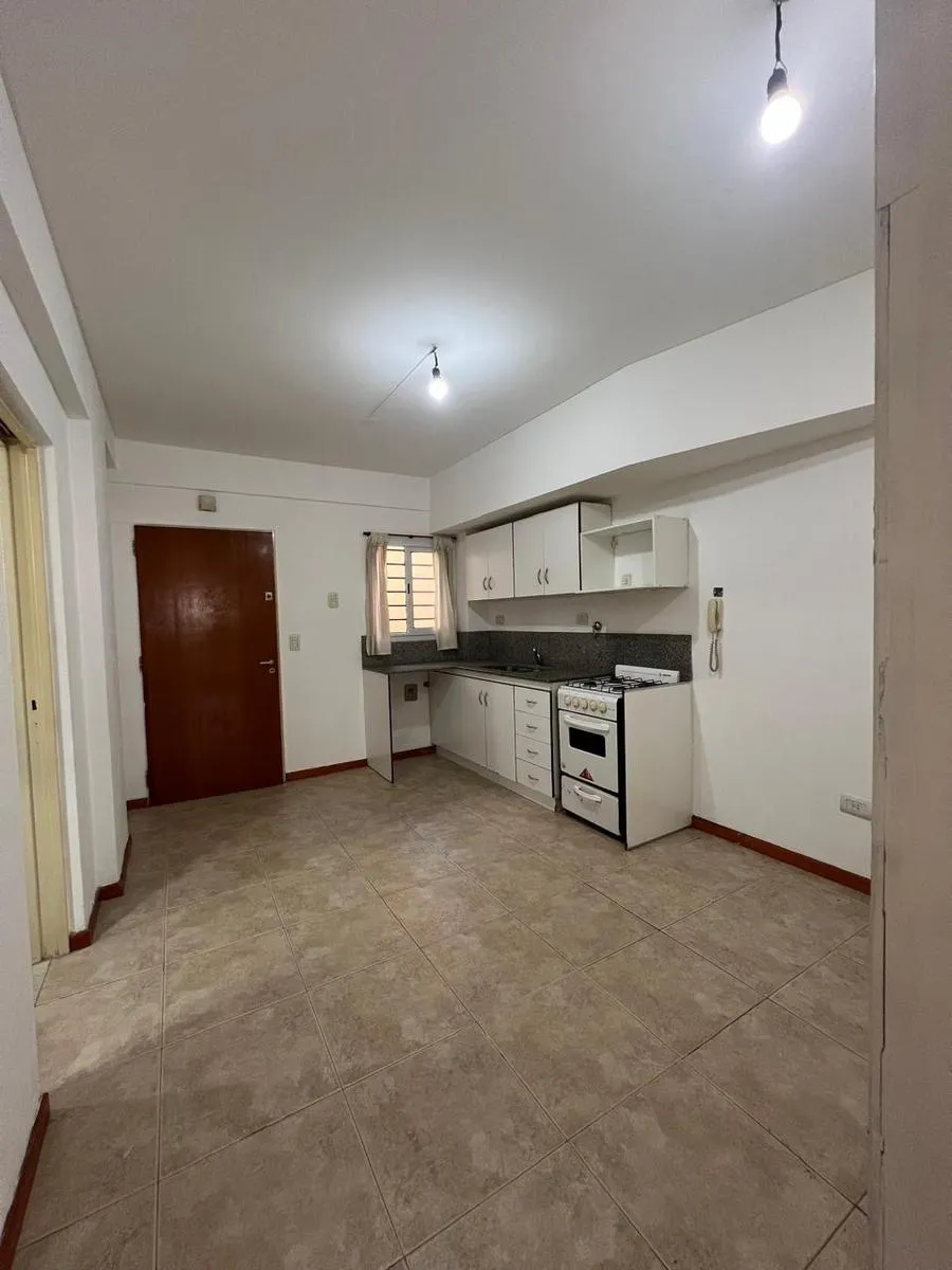 Departamento de 1 ambiente dividido, con balcón al frente y baño completo. El living tiene cocina integrada, muebles completos y mesada de mármol, con lavadero incorporado y ventana en la cocina. El dormitorio está separado y cuenta con gran placard, y se acepta mascota pequeña.