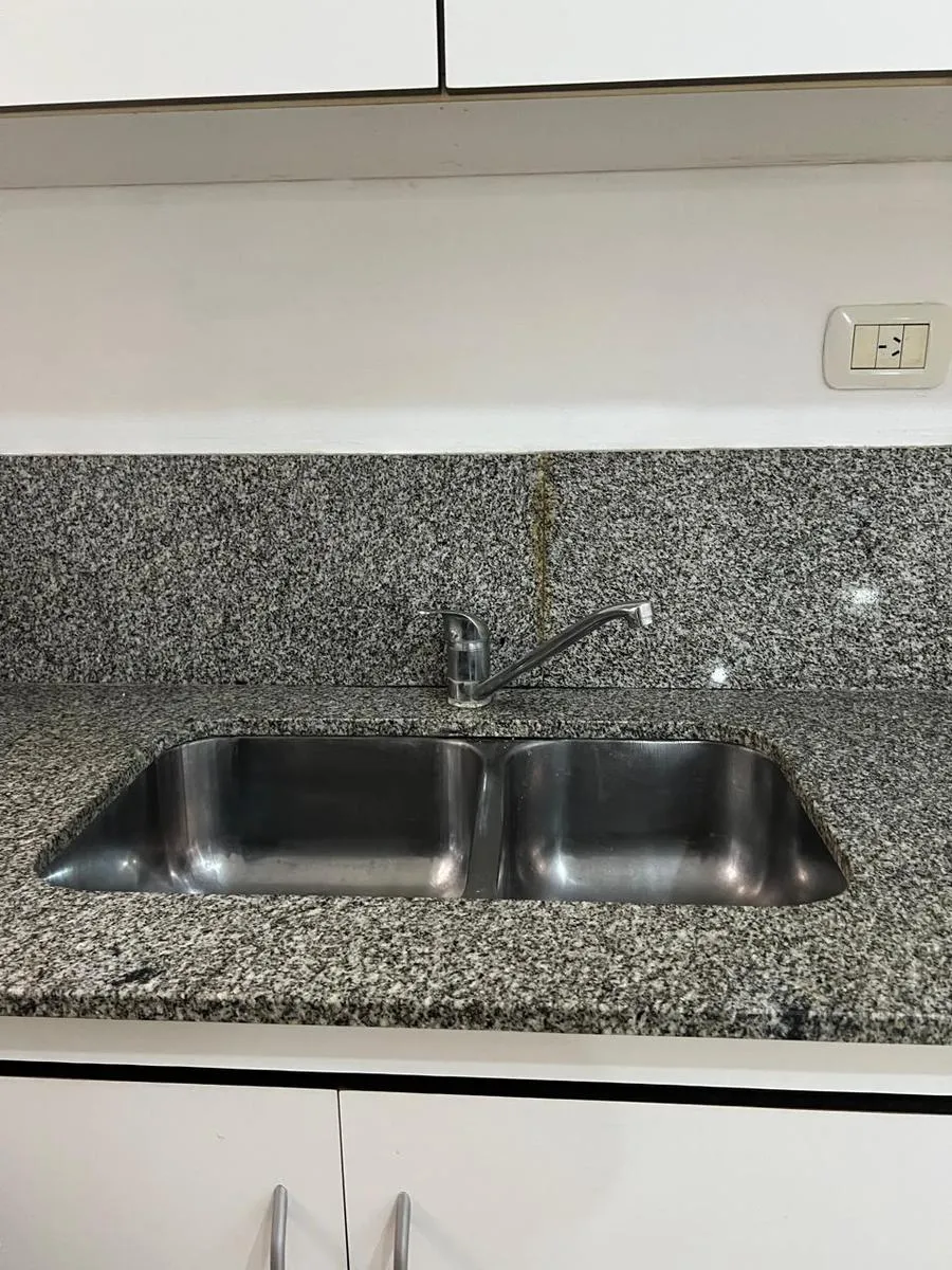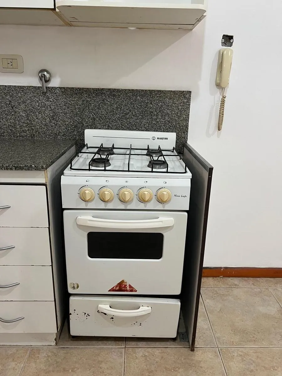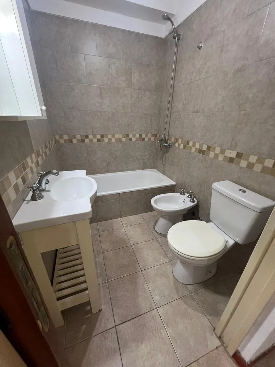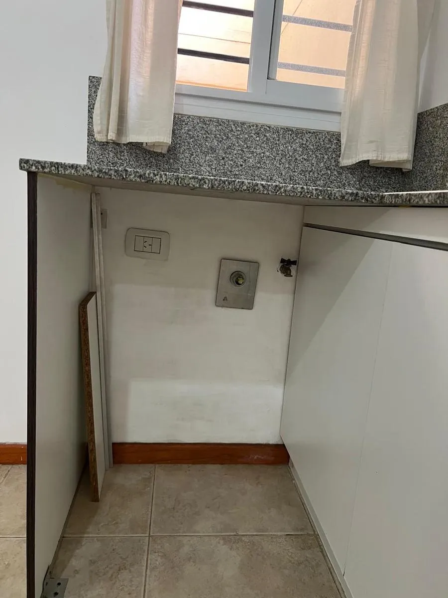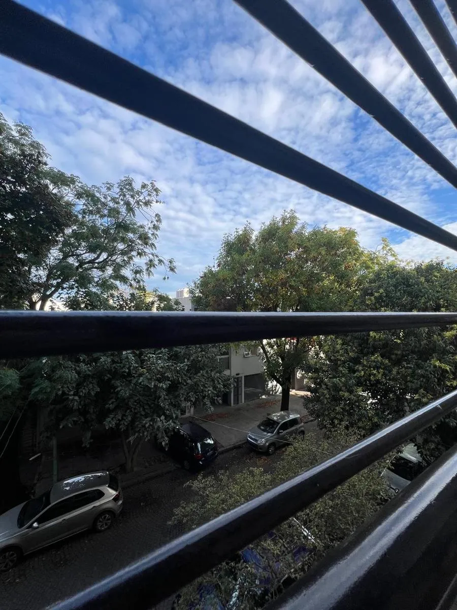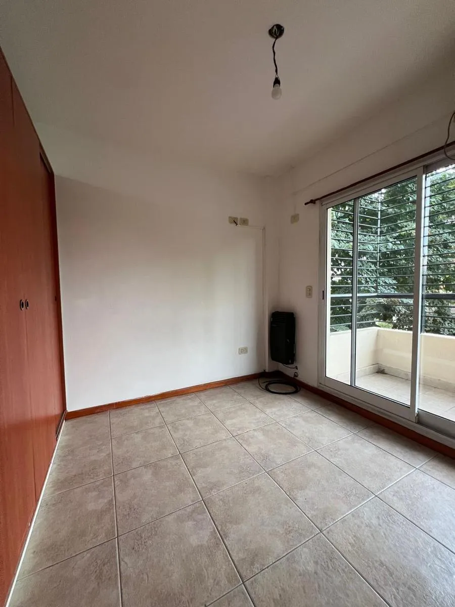 Departamento de 1 ambiente dividido, con balcón al frente y baño completo. El living tiene cocina integrada, muebles completos y mesada de mármol, con lavadero incorporado y ventana en la cocina. El dormitorio está separado y cuenta con gran placard, y se acepta mascota pequeña.