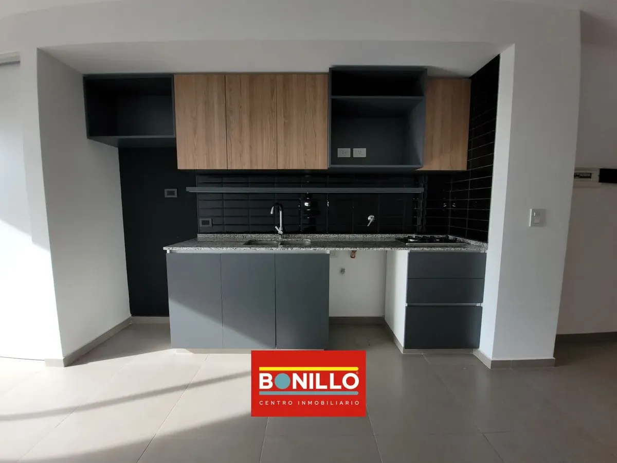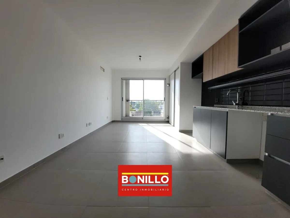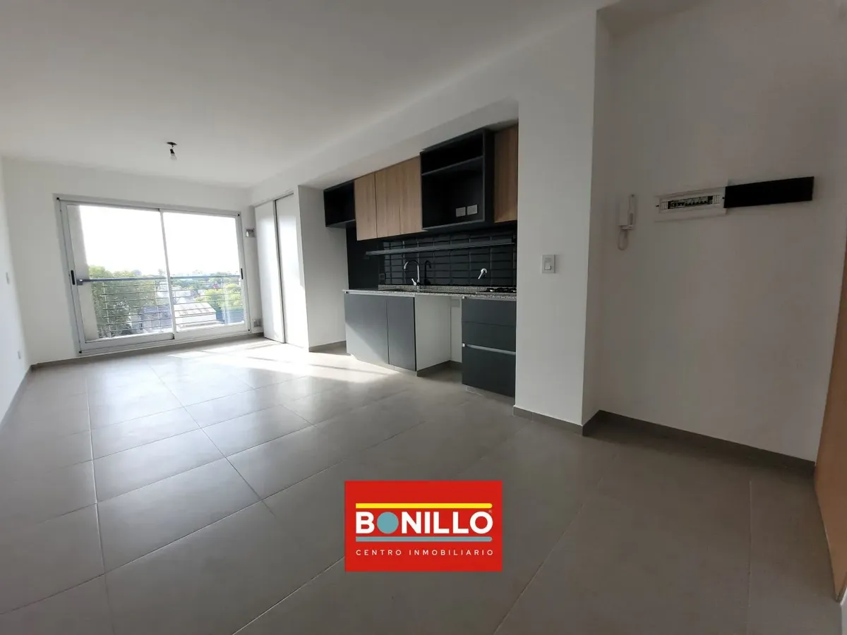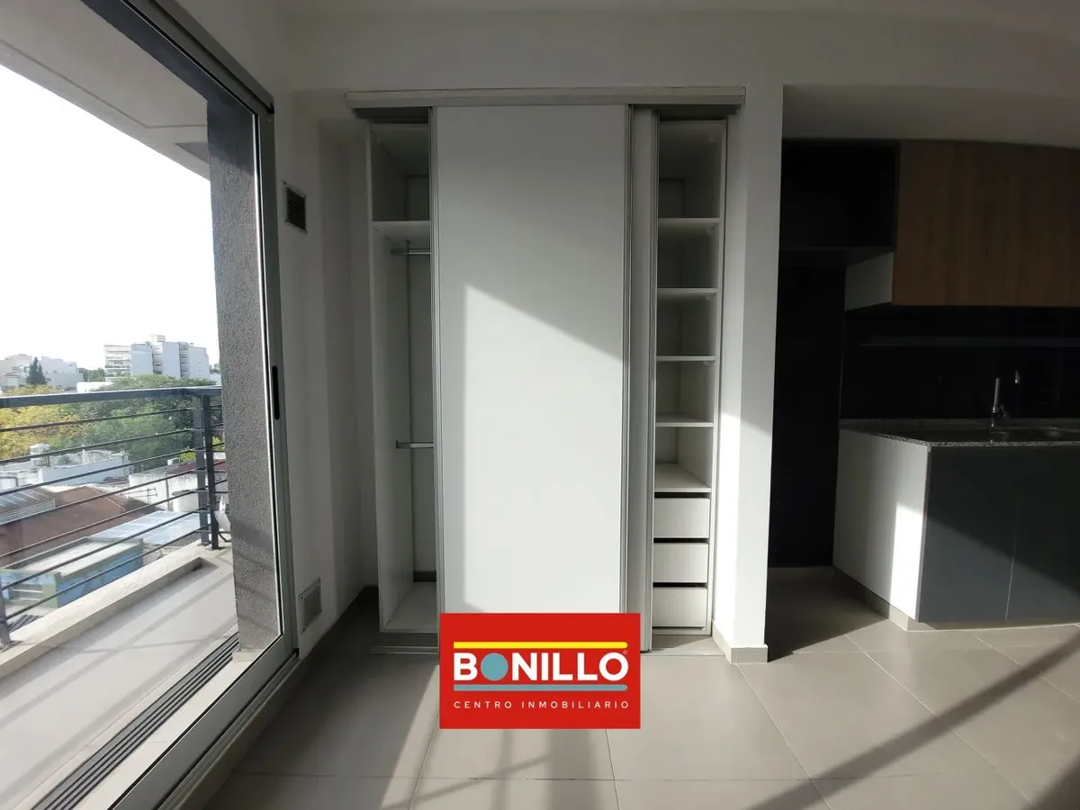 Departamento monoambiente de alquiler en Villa Pueyrredón, al contrafrente, con balcón. Cuenta con muebles completos en la cocina, equipada con 2 hornallas a gas natural (no tiene horno), y placard con puerta corrediza. Baño completo. El edificio tiene personal de limpieza y las expensas incluyen AYSA.