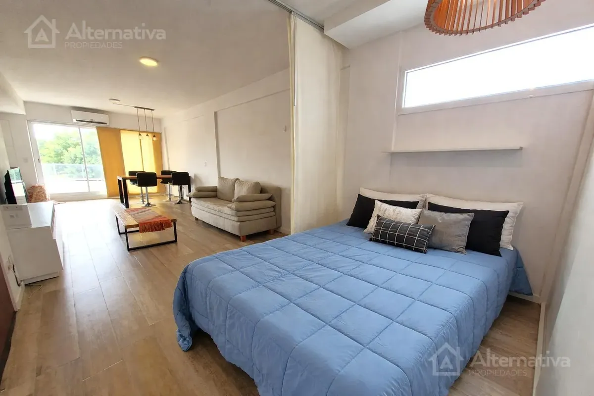 Departamento monoambiente en alquiler temporario, con balcón. Se entrega con blanquería y cuenta con cocina y baño completos. expensas y servicios incluidos; luz y gas con tope de consumo. No apto mascotas.