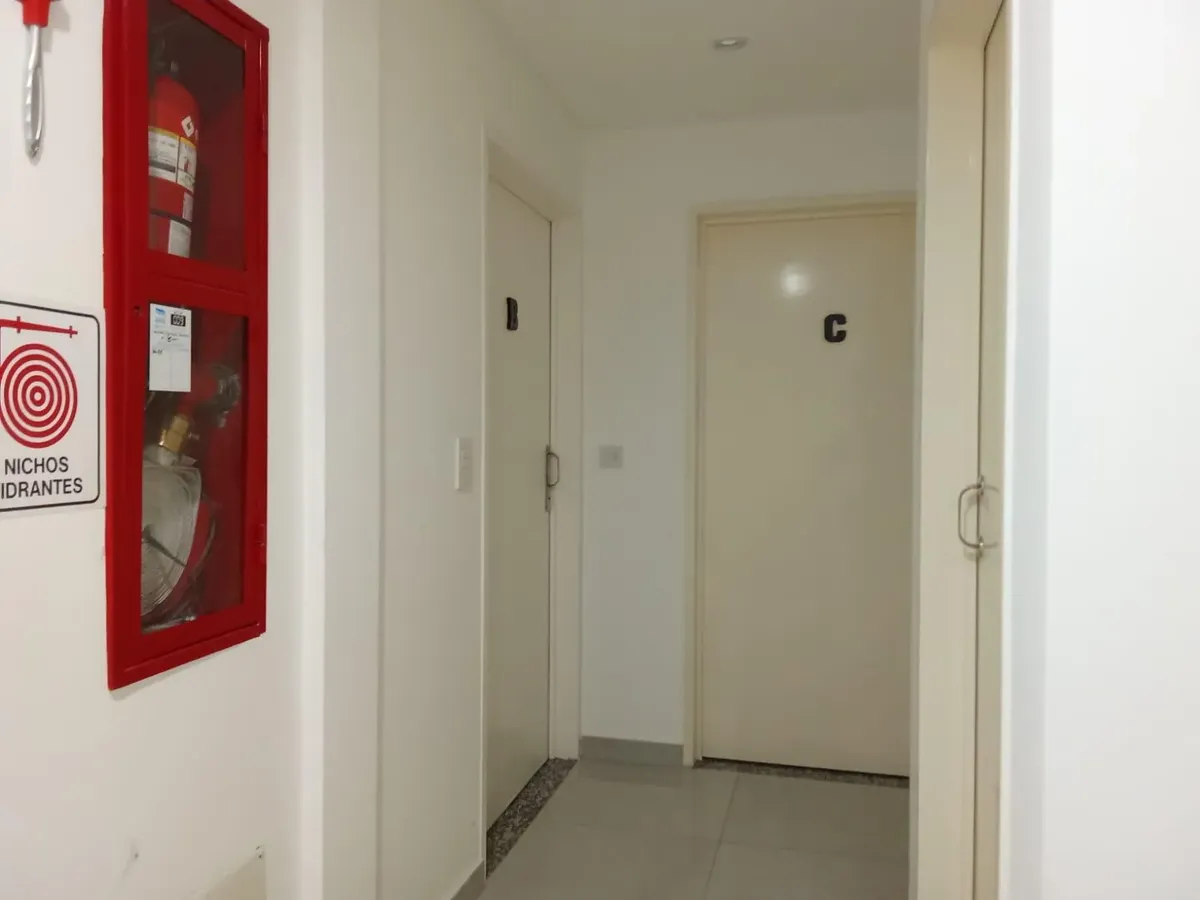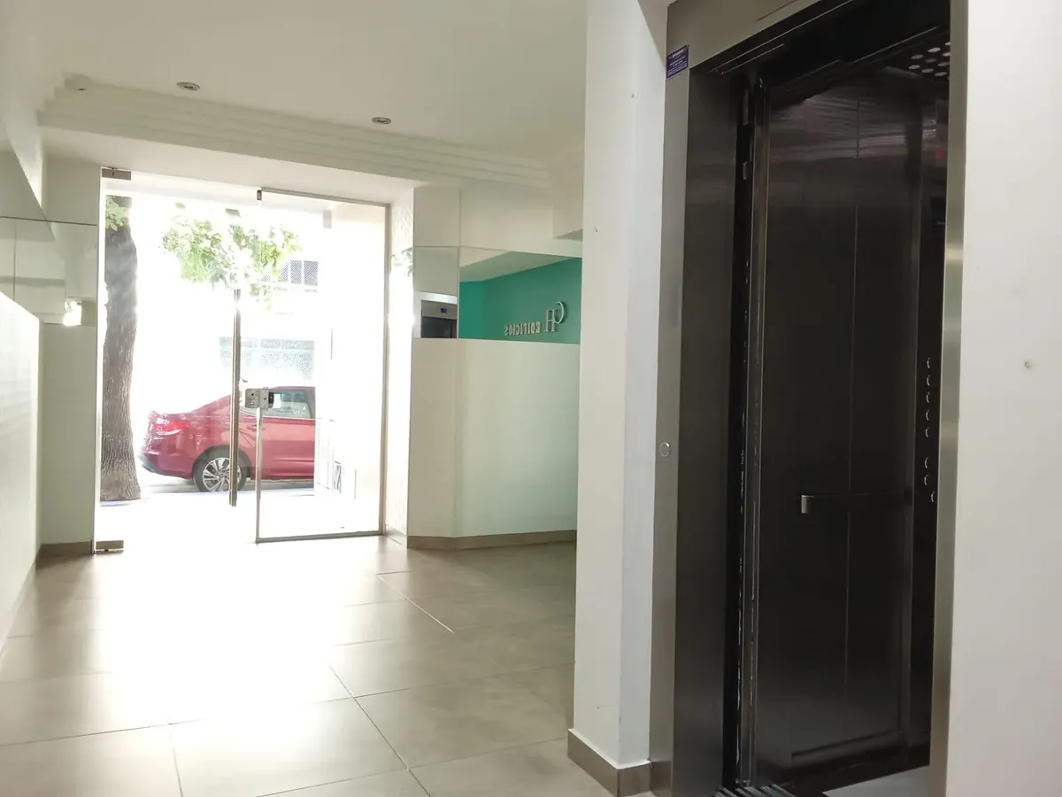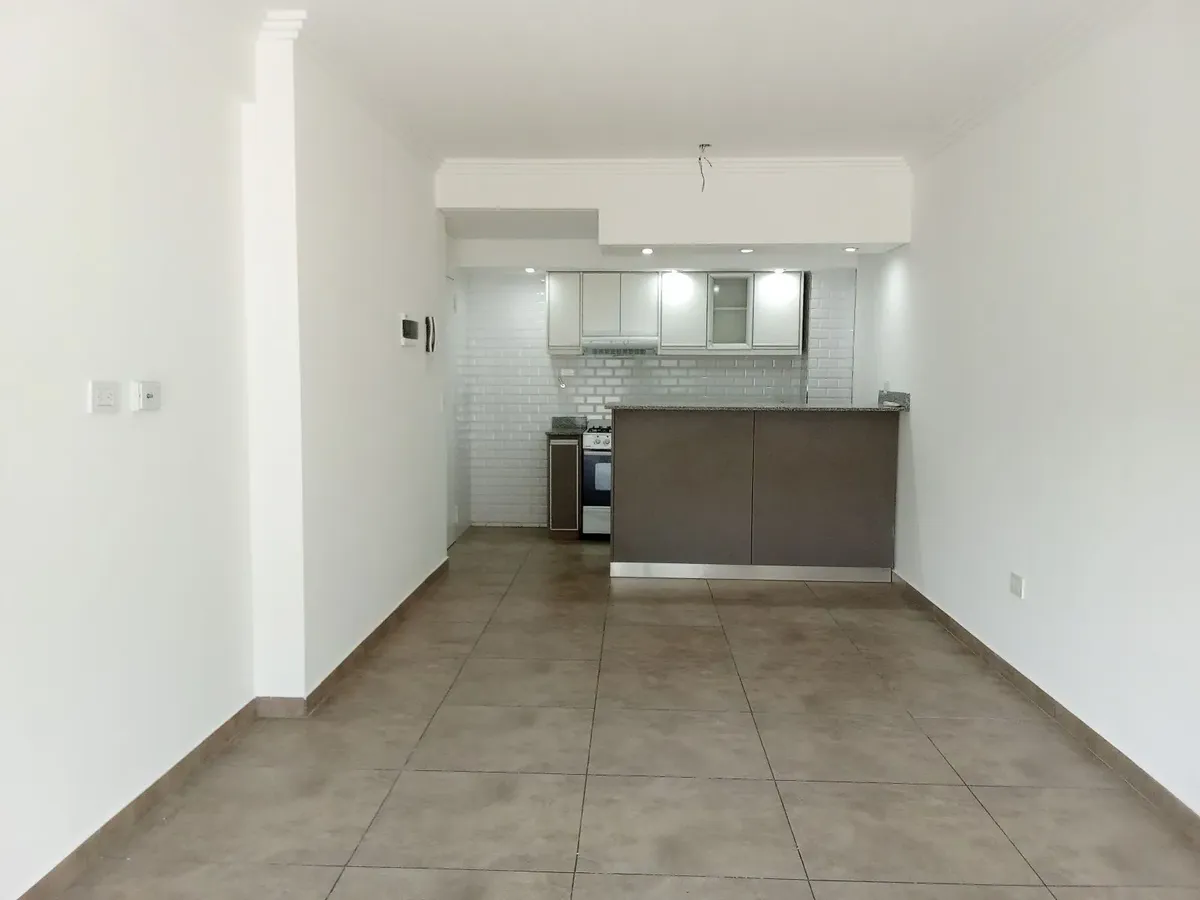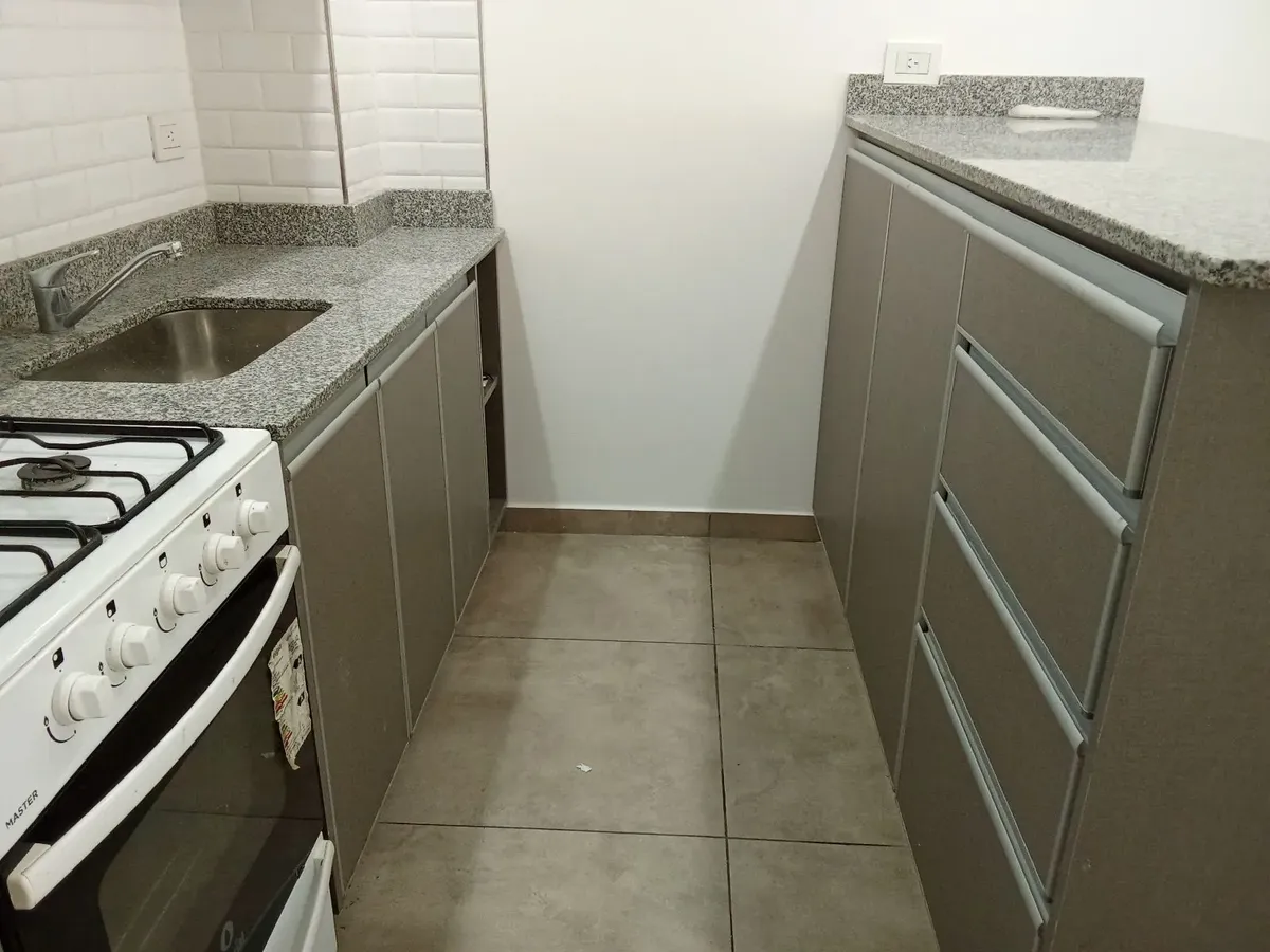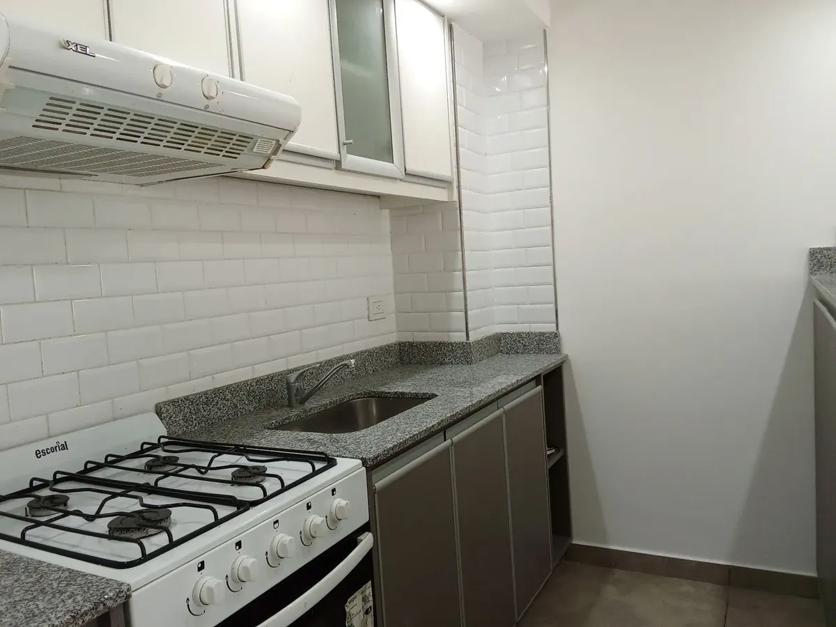 Departamento monoambiente de un ambiente al contrafrente, con patio. Cuenta con ventanal de acceso al patio, placard con puertas corredizas e interior completo. Cocina con muebles completos, revestimiento cerámico, mesada de granito con bacha de acero, artefacto a gas y purificador de aire, además de conexión para lava-ropa. Baño completo y equipo de aire frío-calor en el ambiente. La unidad tiene cocina a gas y agua caliente central, y conexión para video cable interna. Contrato por 24 meses co