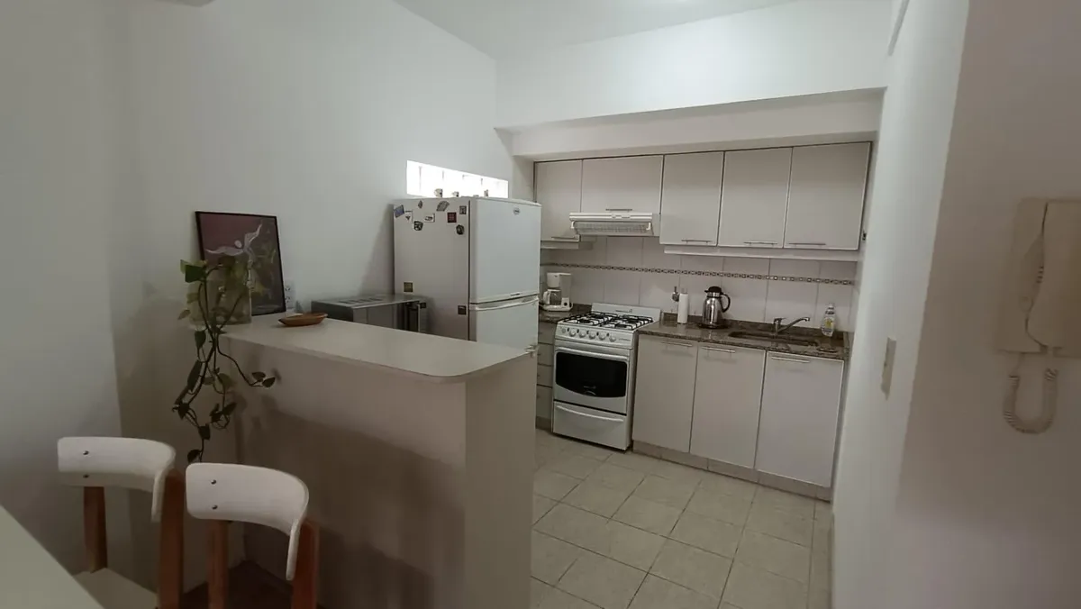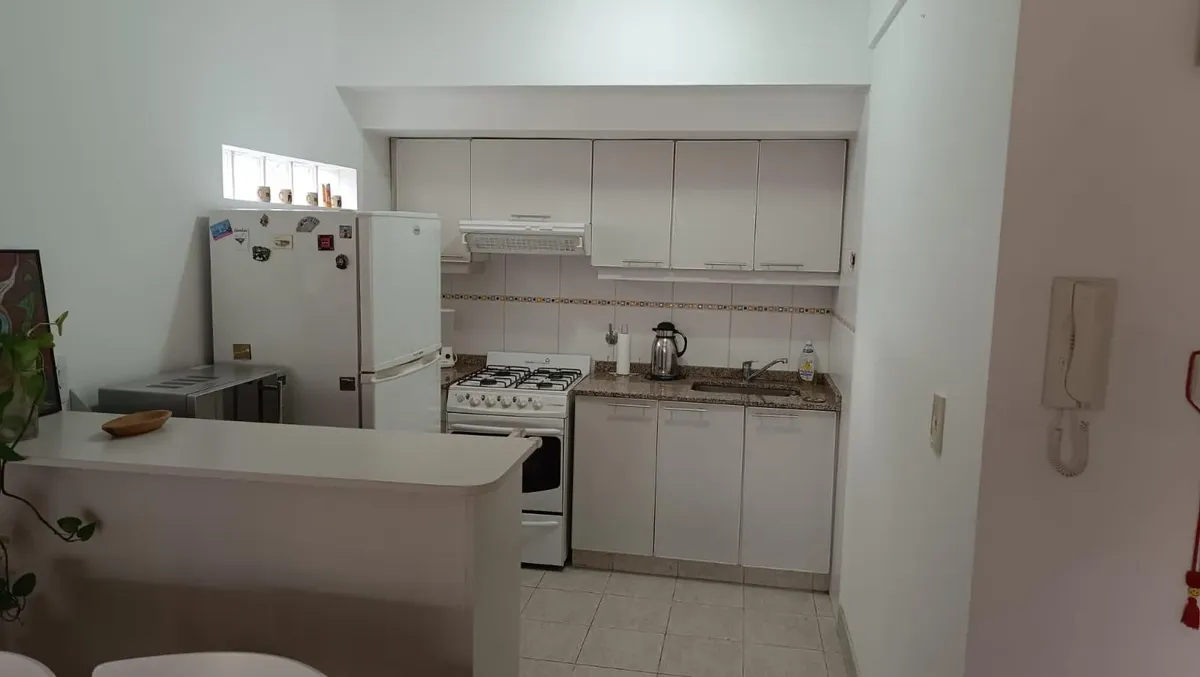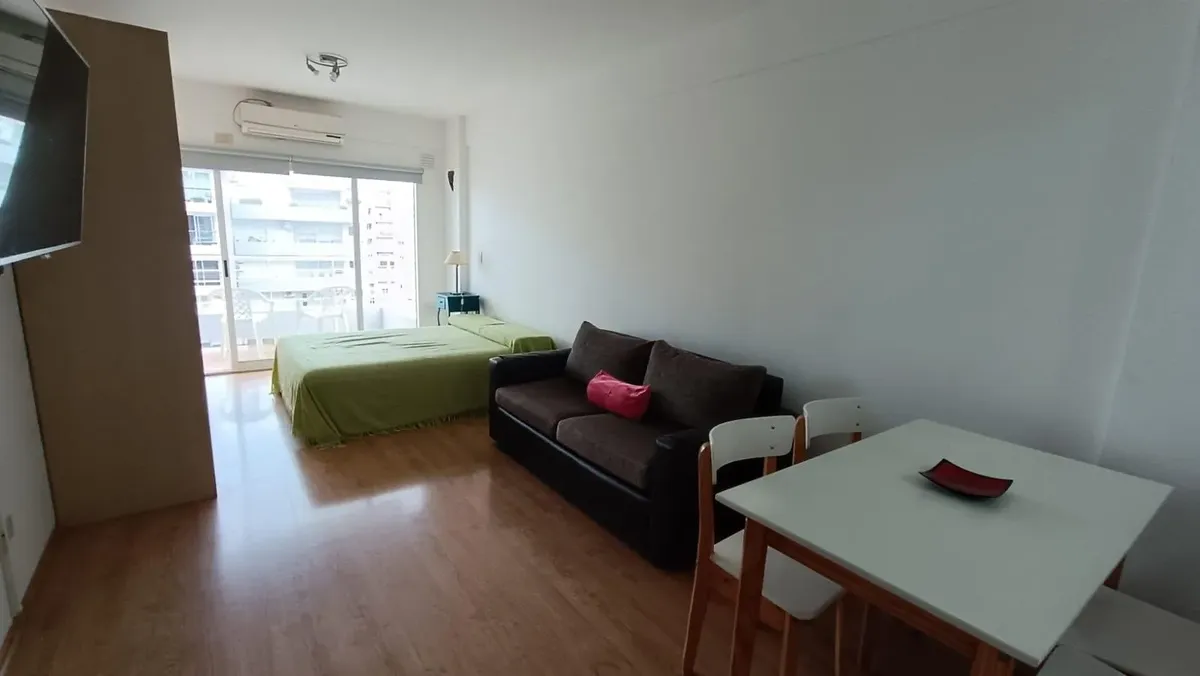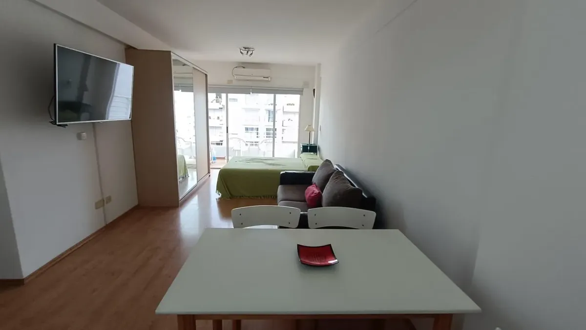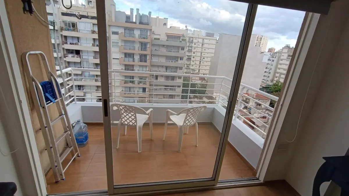 Departamento monoambiente amueblado de 9º piso al contrafrente en Villa Urquiza, con vista abierta. Cuenta con balcón de 1,20 x 3 m, aire acondicionado, TV LED de 43", microondas y cocina a gas. Incluye baño completo y acceso a laundry en el edificio. El valor no incluye expensas ni servicios; expensas: $110.000.