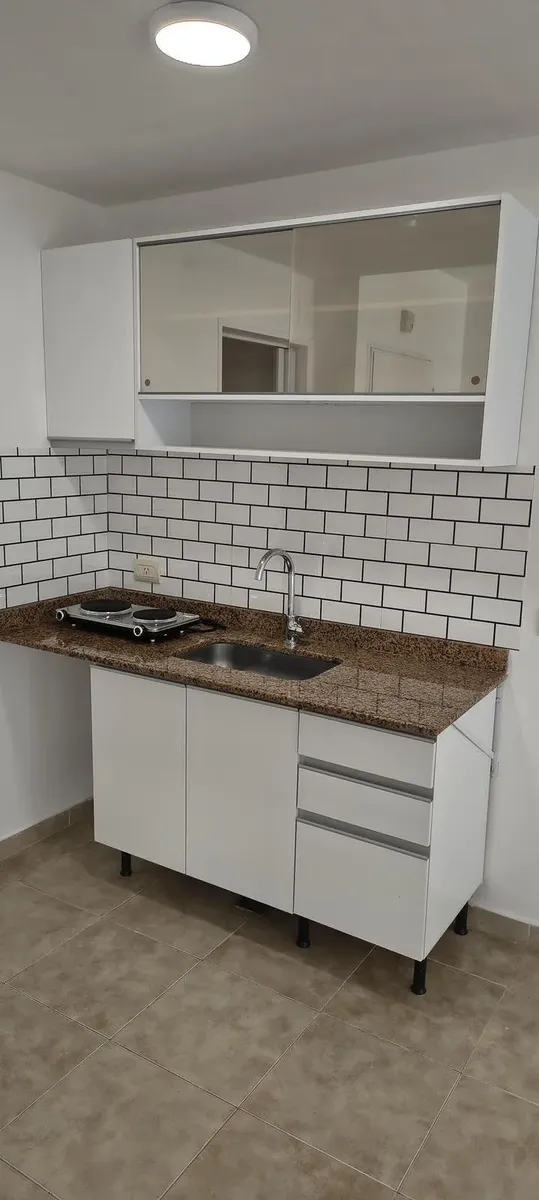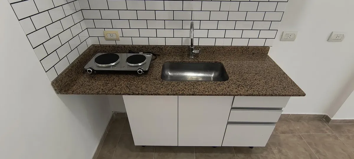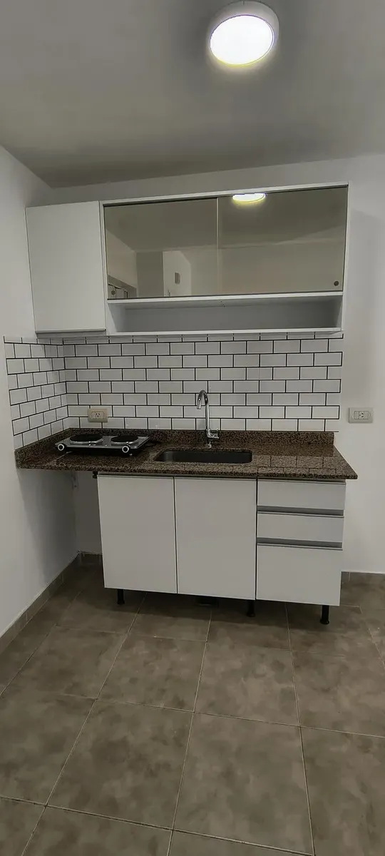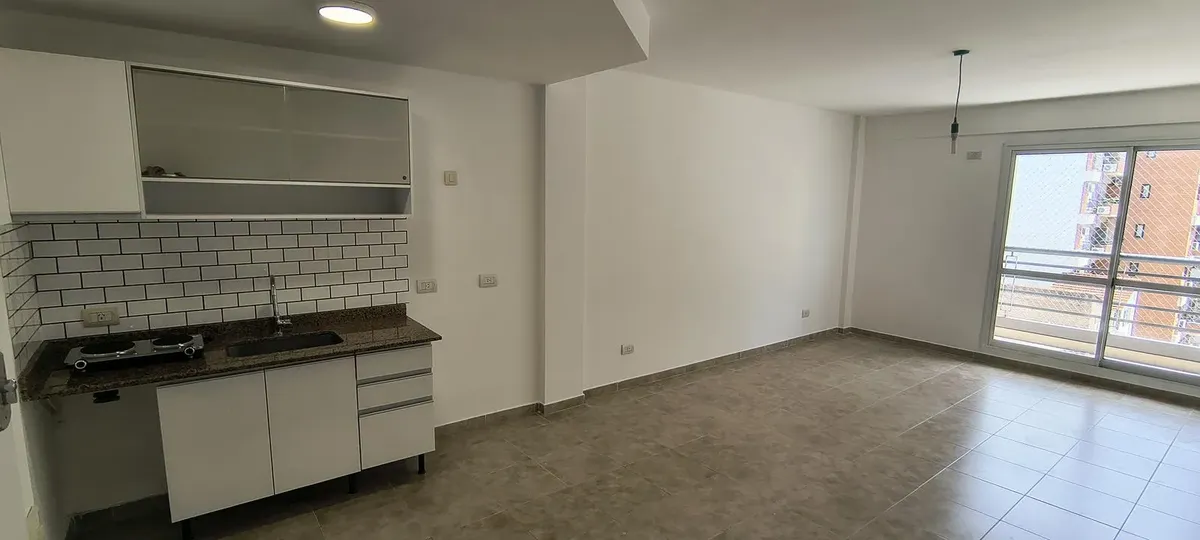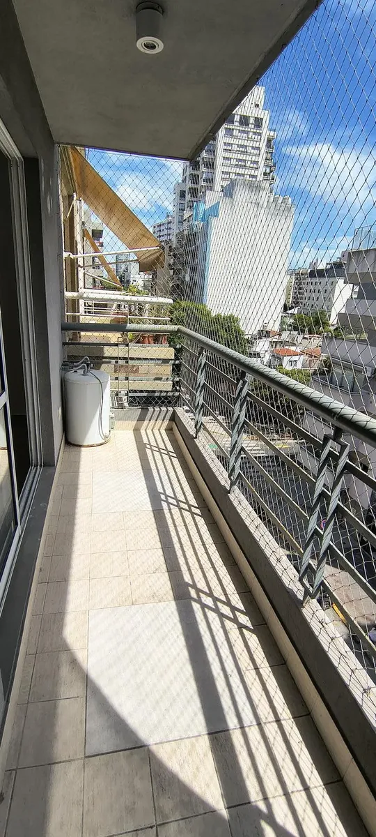 Monoambiente divisible en Villa Urquiza, con 35 m² según superficie ppia, al frente y con orientación Norte. El ambiente principal mide 7 m x 4 m y cuenta con balcón de 4 m x 1 m. Tiene baño completo con cuadro de ducha, cocina integrada con anafe de 2 hornallas y muebles bajo mesada y alacenas, puerta blindada y agua caliente por termotanque eléctrico, con lugar para lavarropas en el balcón. Apto para uso profesional y con bajas expensas; se requieren ingresos demostrables y garantía FINAER, ca