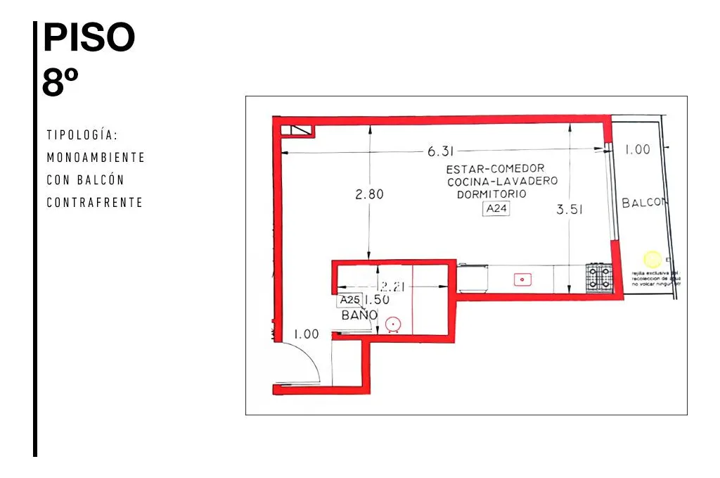 Monoambiente a estrenar en el 6º piso, en Villa Urquiza. Cuenta con balcón y cocina con horno y anafe eléctricos, grifería monocomando FV, bacha de acero inoxidable y mesada granítica. Baño con bañera y vanitory de madera maciza. El edificio tiene agua caliente central y ascensor; además, se consignan cañerías de cobre preparadas para aire acondicionado frío/calor tipo multisplit e instalación para TV por cable. Se entrega con aire frío/calor y cortinas black-out; el alquiler se ajusta trimestra
