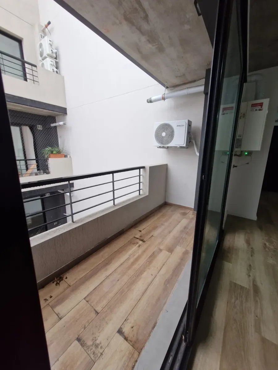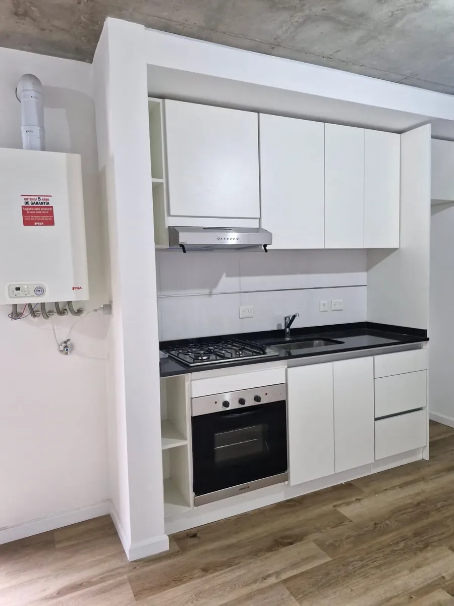 Monoambiente a estrenar de 28 m² cubiertos y 33 m² de superficie total, con balcón, en Villa Urquiza. El departamento cuenta con ambiente principal con pisos símil madera, aberturas de aluminio y acceso a balcón. La cocina tiene muebles de guardado, anafe y horno empotrado, con espacio para heladera y conexión para lavarropas; el baño es completo con bañera y revestimientos parciales. Incluye caldera individual, baulera y acceso con puerta de seguridad; edificio con palier y ascensor, con acceso