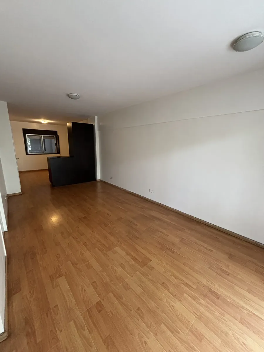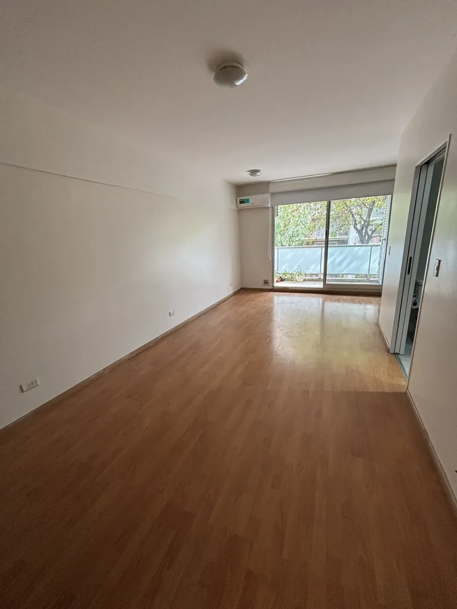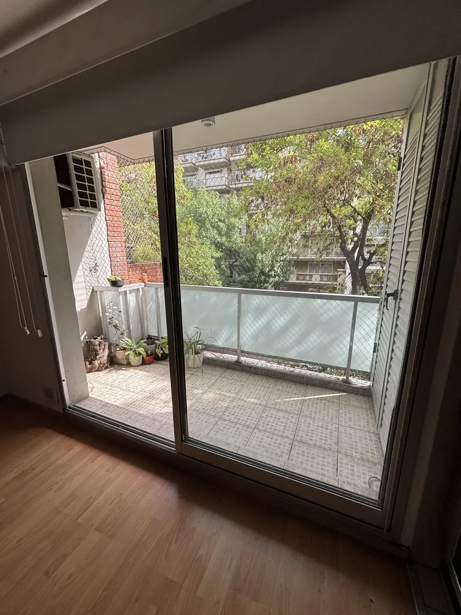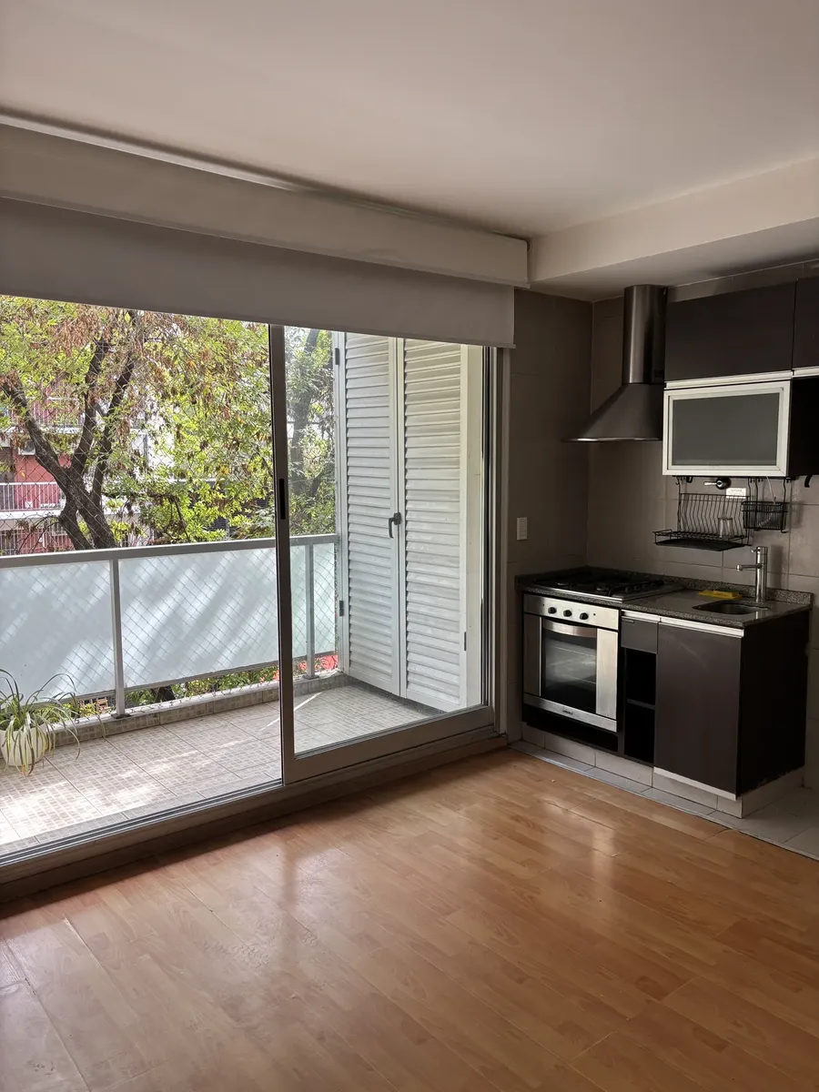 Monoambiente divisible de 40 m² al frente, con balcón. La división se realiza mediante un mueble de madera (placard) que delimita una superficie destinada a dormitorio con ventana al aire y luz. Cuenta con cocina incorporada con espacio para heladera, cocina a gas y balcón al frente, con sector para lavadero y caldera, además de baño completo. Tiene calefacción por piso radiante, agua caliente con caldera individual y aire acondicionado frío/calor. Apto profesional. No se aceptan mascotas.