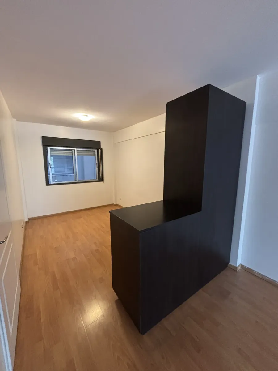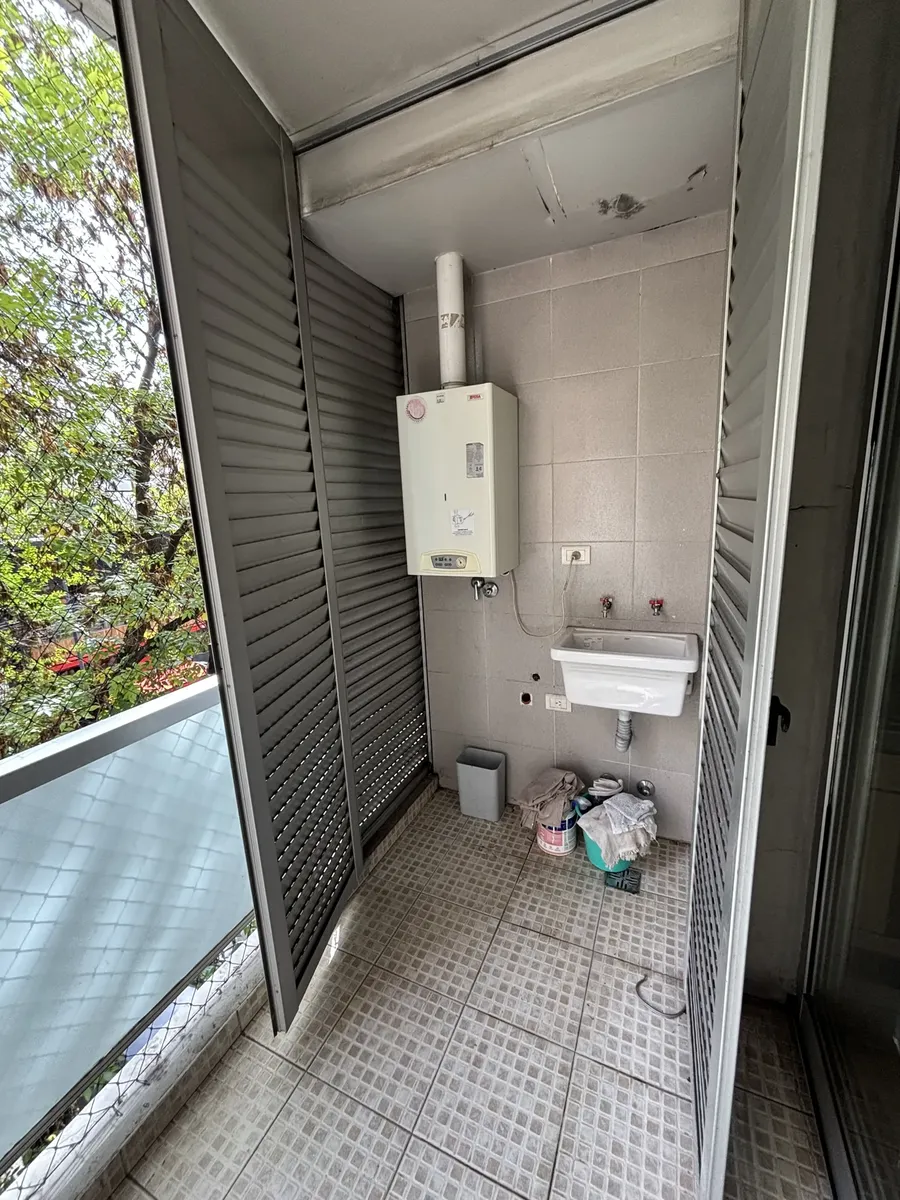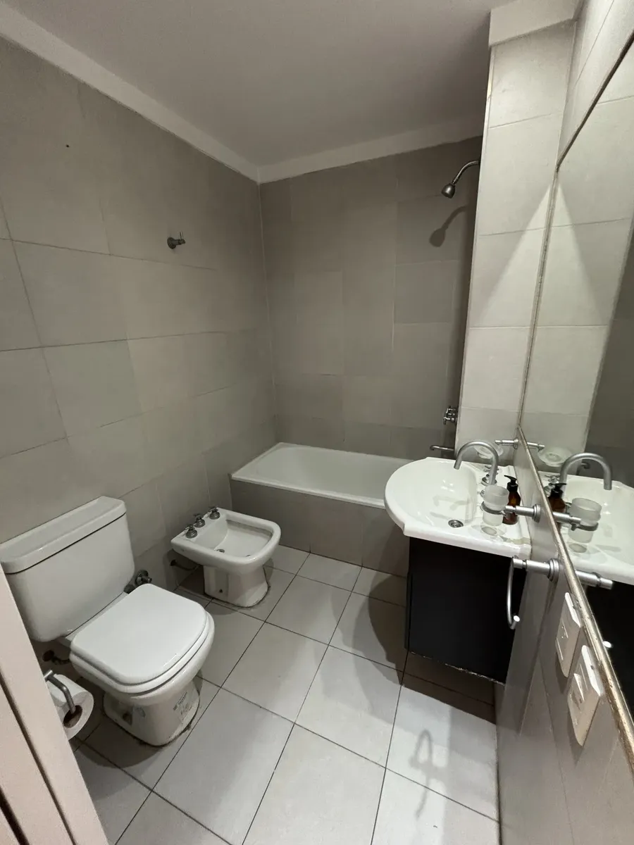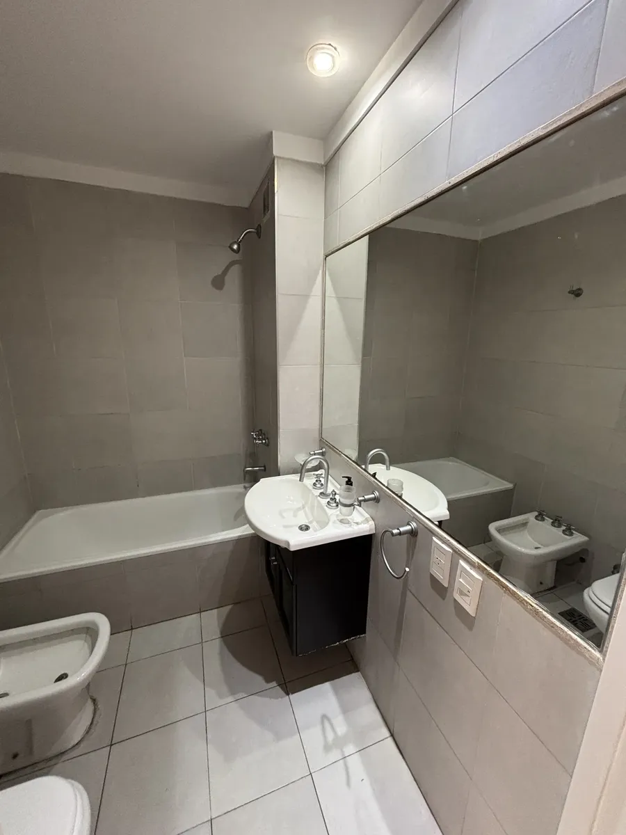 Monoambiente divisible de 40 m² al frente, con balcón. La división se realiza mediante un mueble de madera (placard) que delimita una superficie destinada a dormitorio con ventana al aire y luz. Cuenta con cocina incorporada con espacio para heladera, cocina a gas y balcón al frente, con sector para lavadero y caldera, además de baño completo. Tiene calefacción por piso radiante, agua caliente con caldera individual y aire acondicionado frío/calor. Apto profesional. No se aceptan mascotas.