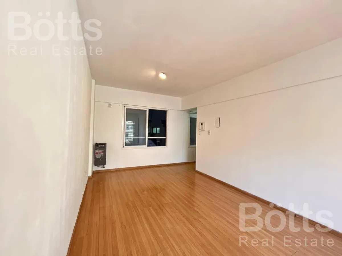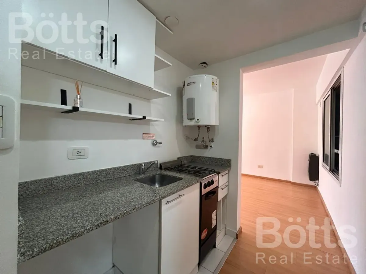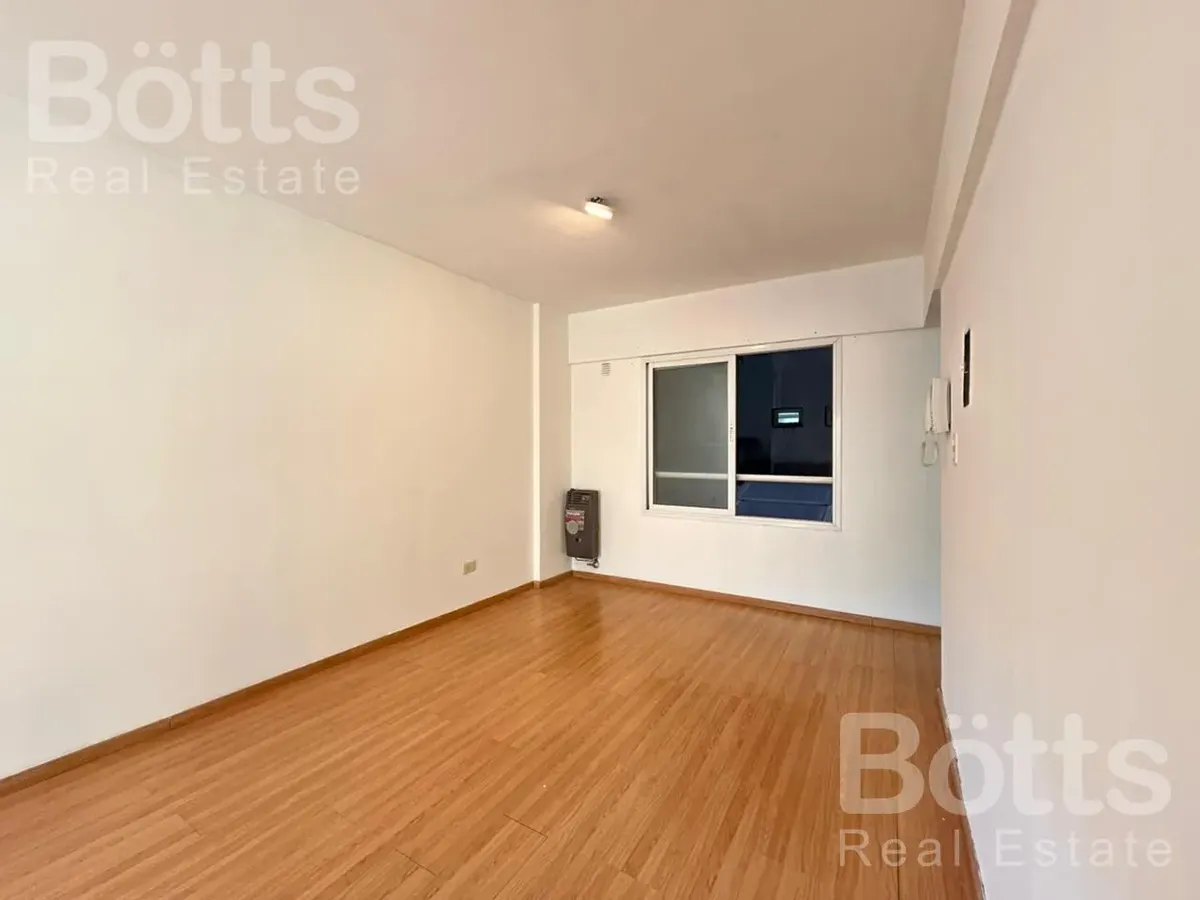 Monoambiente de 34 m² totales, 32 m² cubiertos y 2 m² de balcón, al contrafrente. Está en el 2do piso con vista abierta. Cocina integrada con alacena, mueble bajo mesada y cocina a gas de 2 hornallas, además de termotanque eléctrico; placard con puerta de espejo; calefacción por estufa. Baño completo con bañera. Expensas: $109.000. Contrato tradicional a 2 años con ajuste trimestral según IPC; requiere 1 mes de alquiler y 1 mes de depósito, y seguro de caución o fianza privada FINAER. Hasta 2 pe