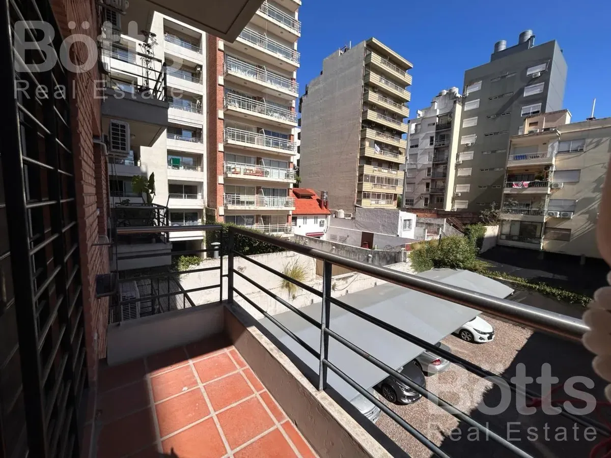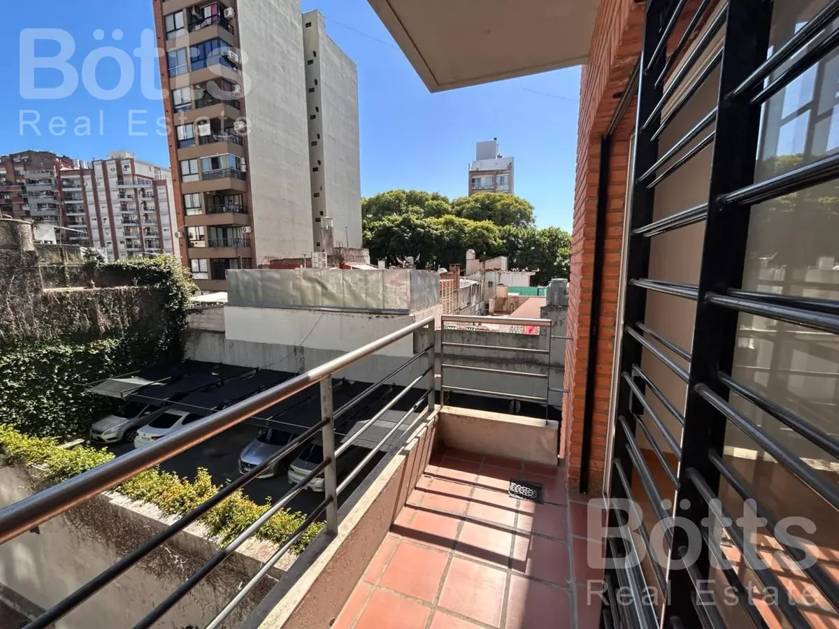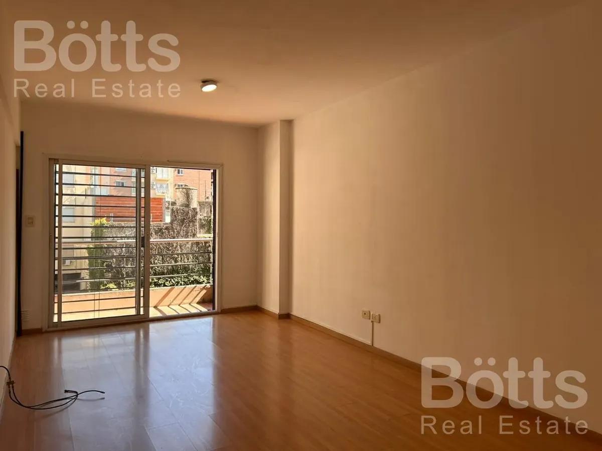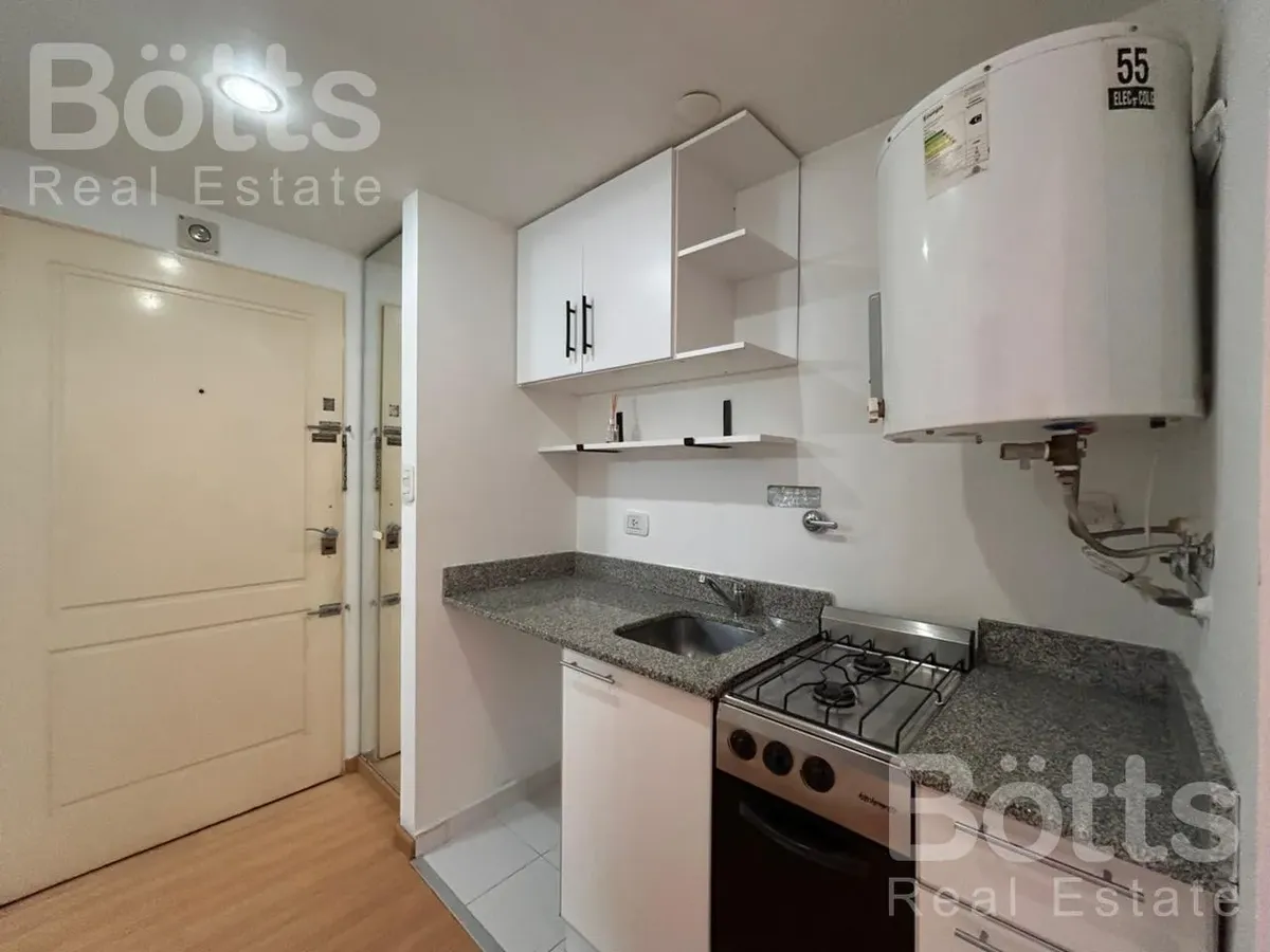 Monoambiente de 34 m² totales, 32 m² cubiertos y 2 m² de balcón, al contrafrente. Está en el 2do piso con vista abierta. Cocina integrada con alacena, mueble bajo mesada y cocina a gas de 2 hornallas, además de termotanque eléctrico; placard con puerta de espejo; calefacción por estufa. Baño completo con bañera. Expensas: $109.000. Contrato tradicional a 2 años con ajuste trimestral según IPC; requiere 1 mes de alquiler y 1 mes de depósito, y seguro de caución o fianza privada FINAER. Hasta 2 pe