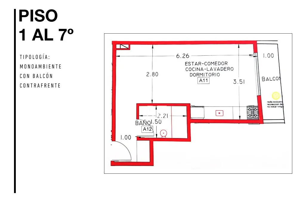 Monoambiente a estrenar en el 6º piso en Villa Urquiza, con balcón. La cocina incluye horno y anafe eléctricos, grifería monocomando FV, bacha de acero inoxidable, mesada granítica y mobiliario. El baño tiene bañera y vanitory. El edificio cuenta con ascensor, agua caliente central y cañerías de cobre preparadas para aire acondicionado frío/calor tipo multisplit, con instalación para TV por cable. El alquiler se ajusta trimestralmente de acuerdo con el IPC; se entrega con aire frío/calor y corti