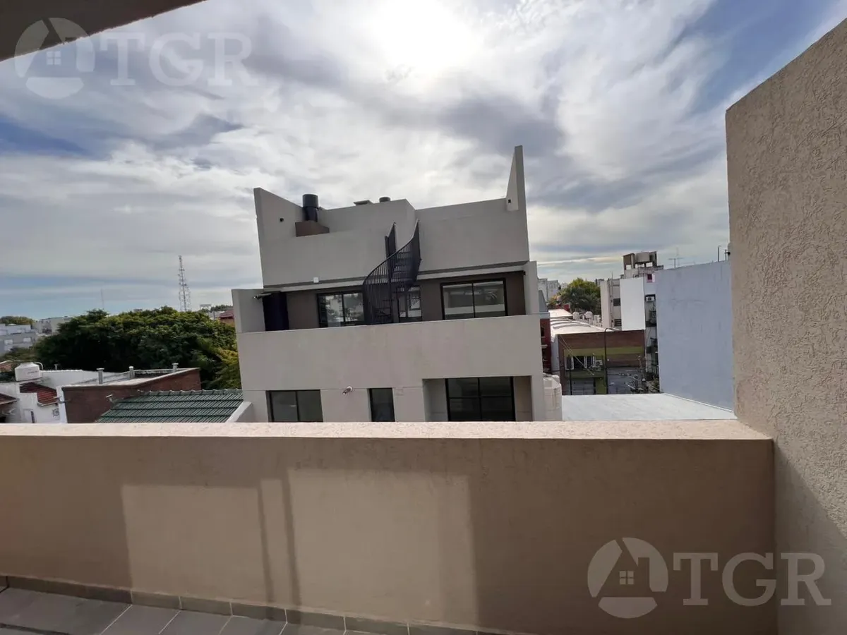 Monoambiente a estrenar en Villa Urquiza, en el 4 piso, al contrafrente. Cuenta con terraza propia: una primera a nivel a la que se accede desde el interior y una segunda en el nivel superior, a través de una escalera interna, con parrilla propia. Incluye cocina integrada con barra de mármol, placard empotrado con espejo y baño completo con bañera. Contrato por 2 años, ajuste por ICL y garantía propietaria o seguro de caución, con ingresos demostrables.