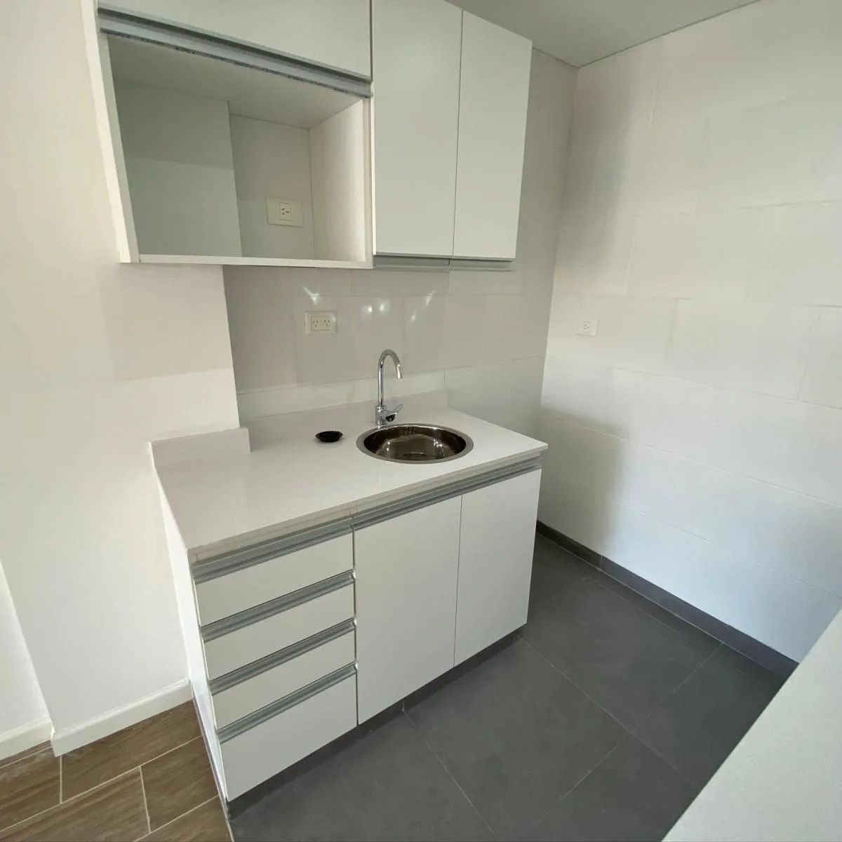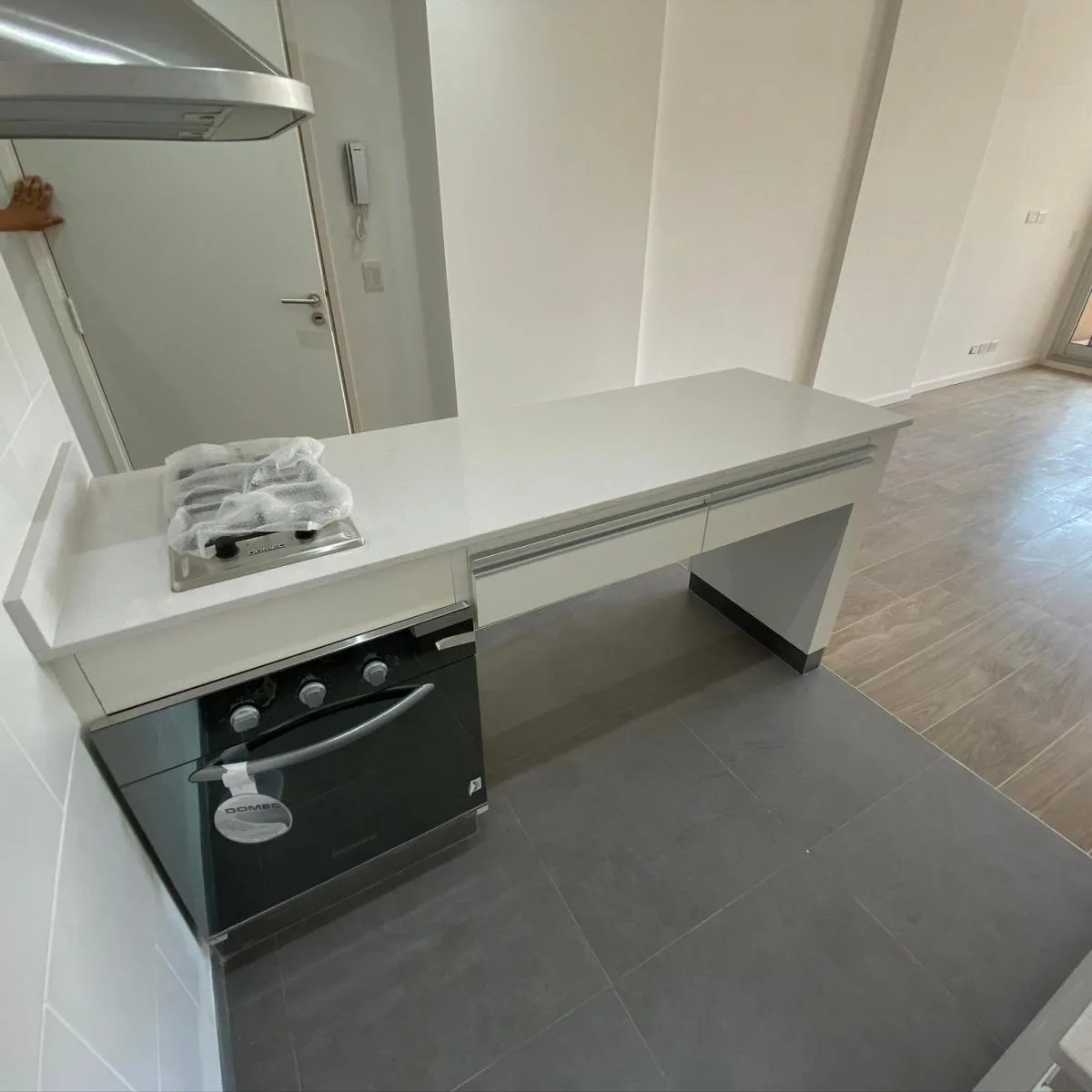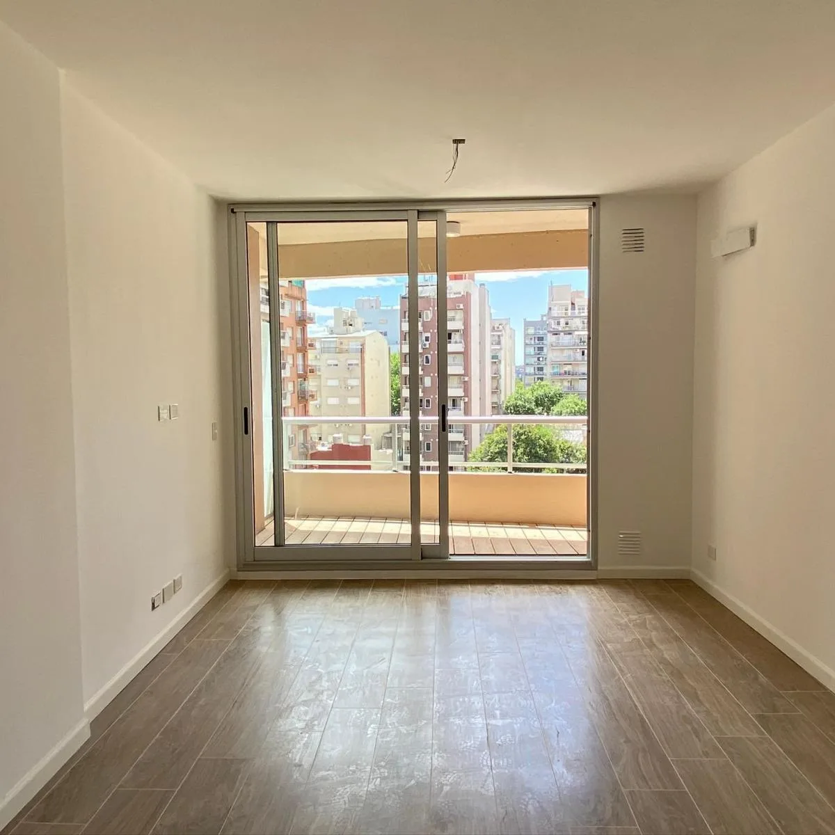 Monoambiente de 6º piso al frente, orientación Este, con balcón aterrazado con deck. Cocina integrada con barra, horno eléctrico, anafe a gas y campana de extracción. Incluye aire acondicionado, cortina blackout, agua caliente central, calefacción por losa radiante y conexión para lavarropas en el balcón. Expensas de $91.500 e incluyen Aysa; el contrato contempla depósito en dólares y ajuste trimestral por IPC.