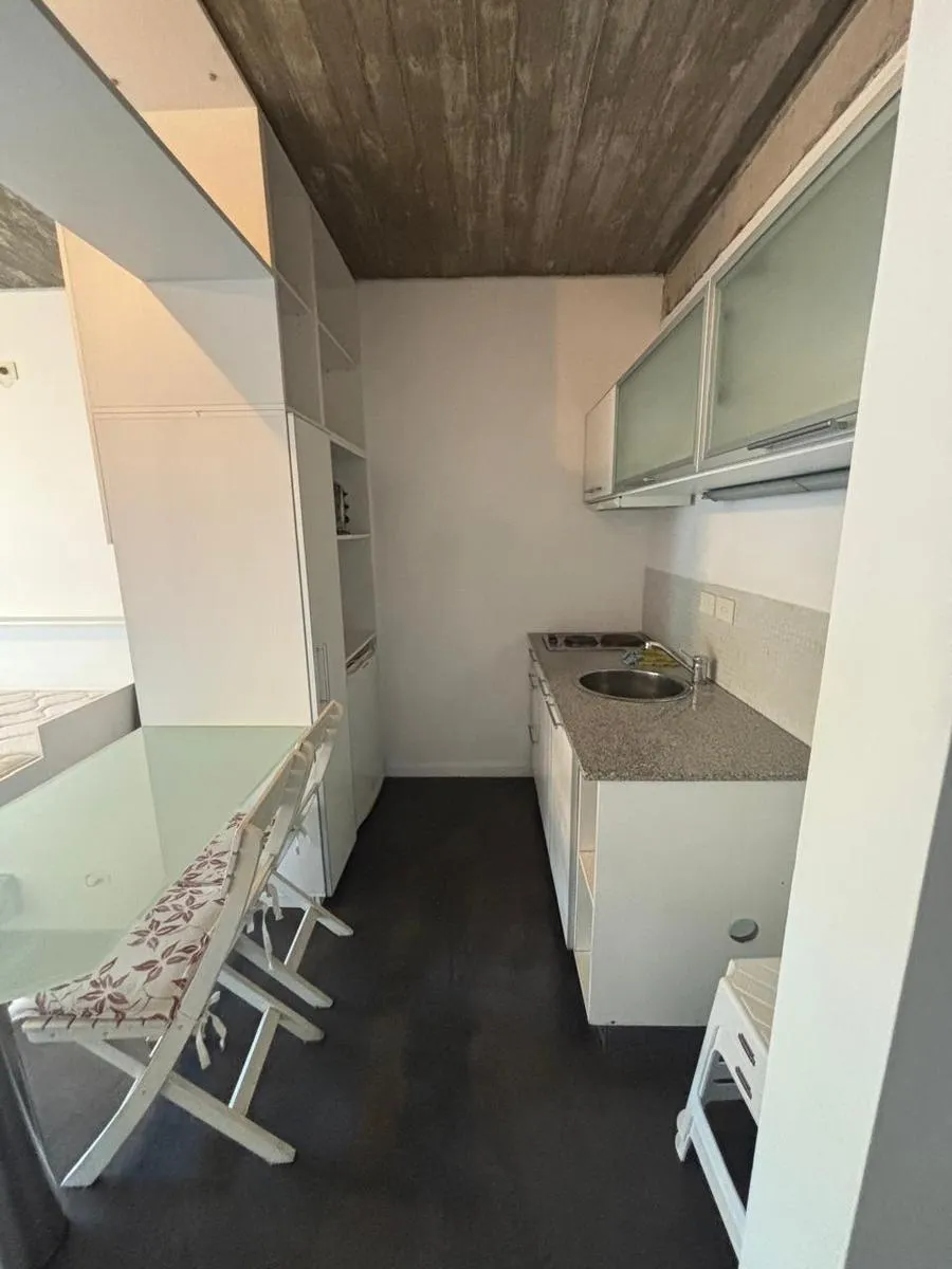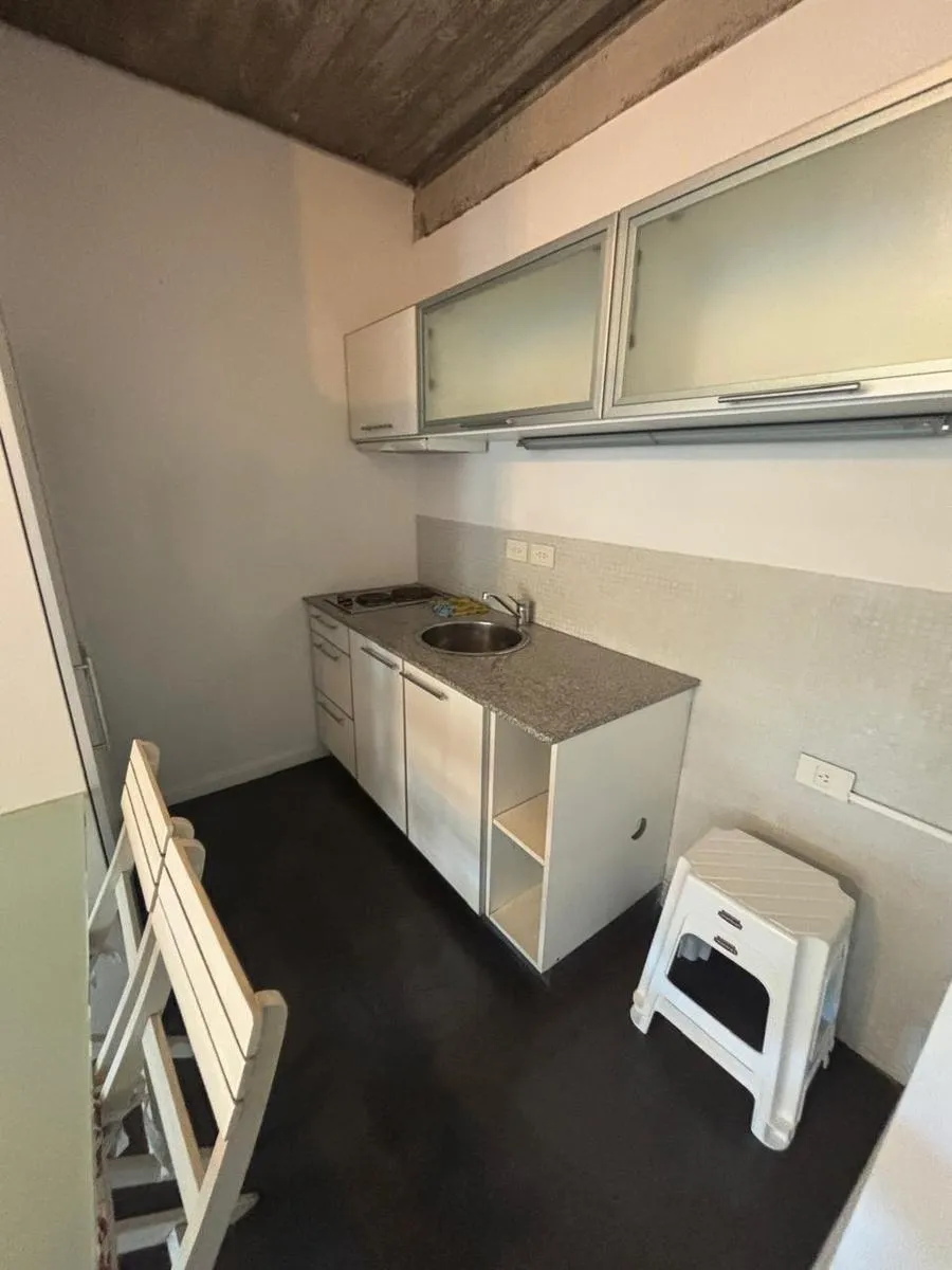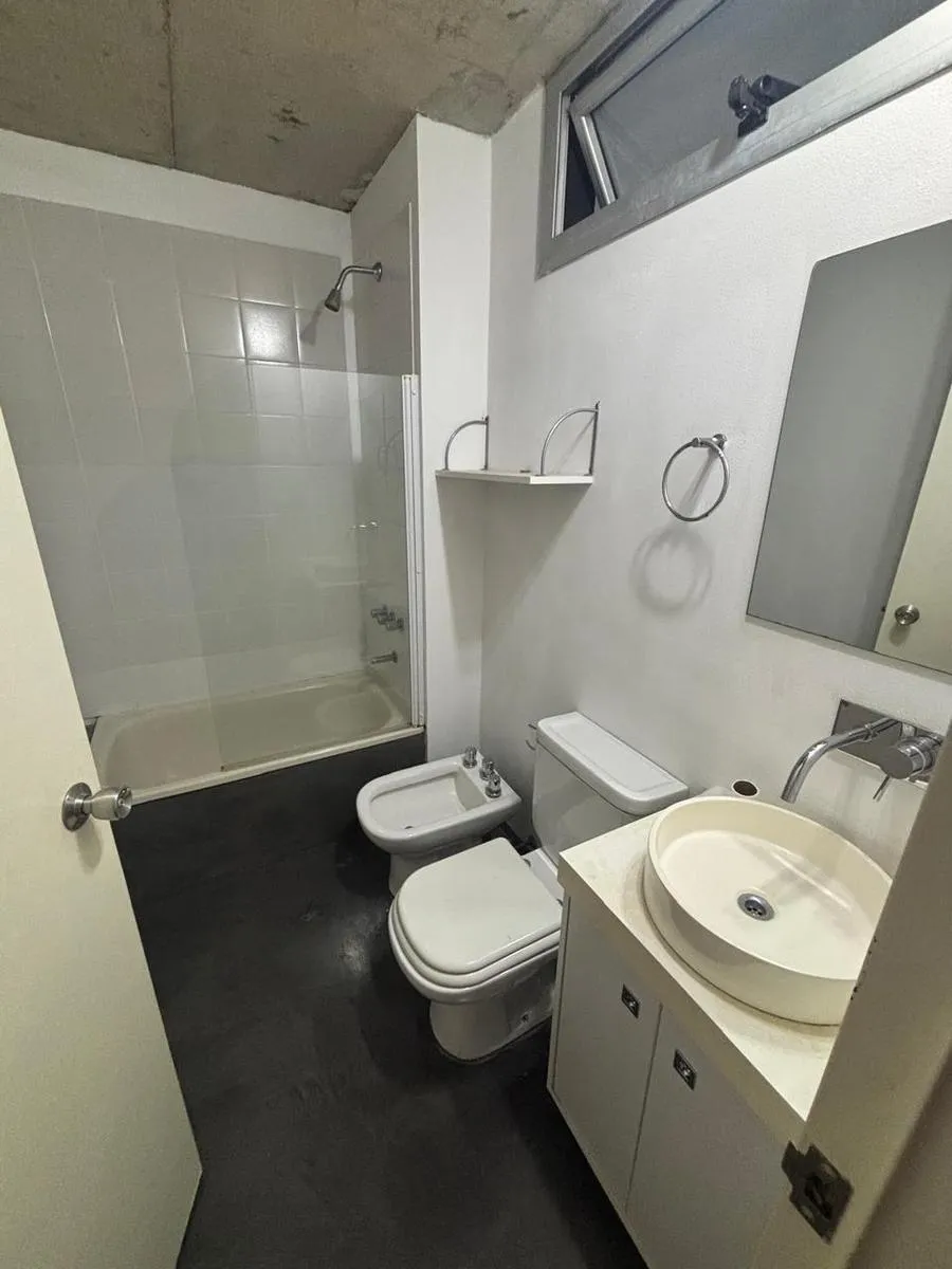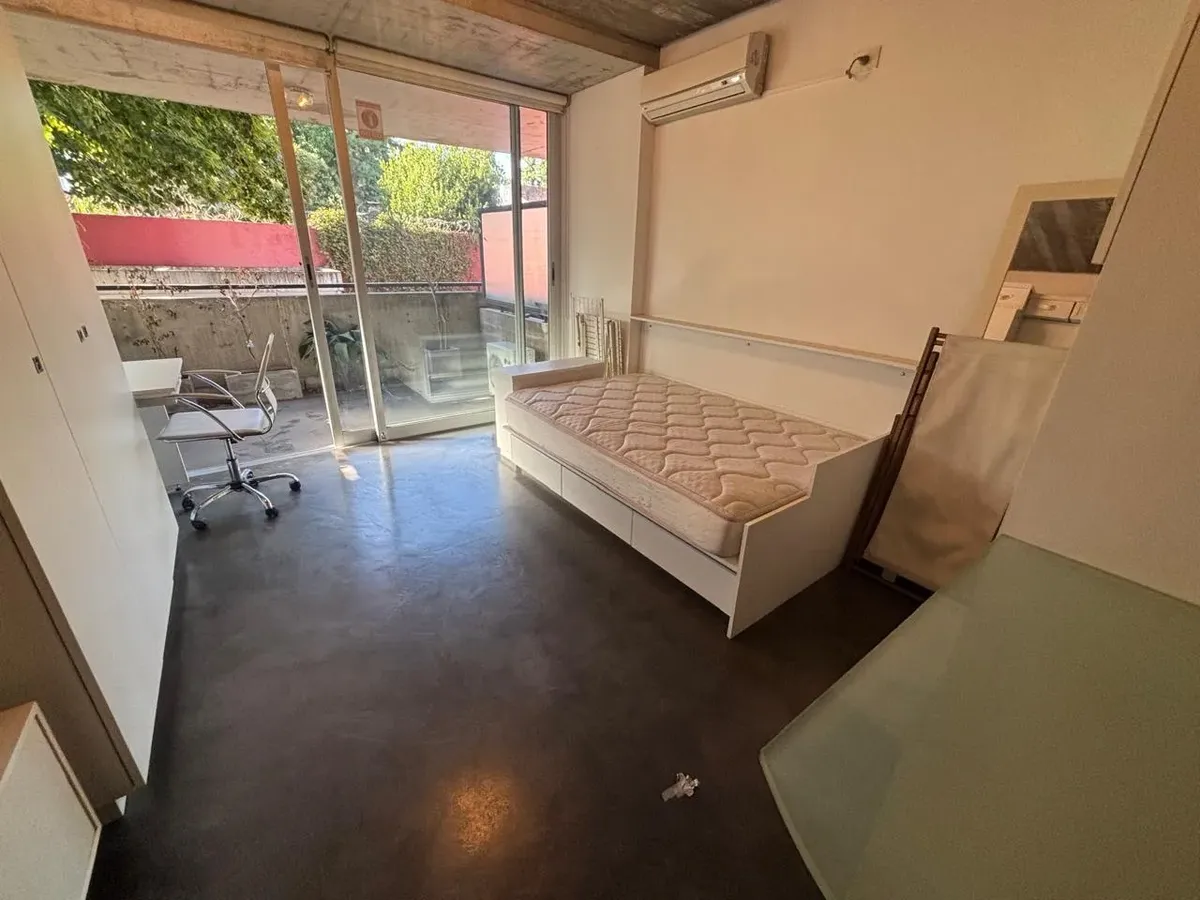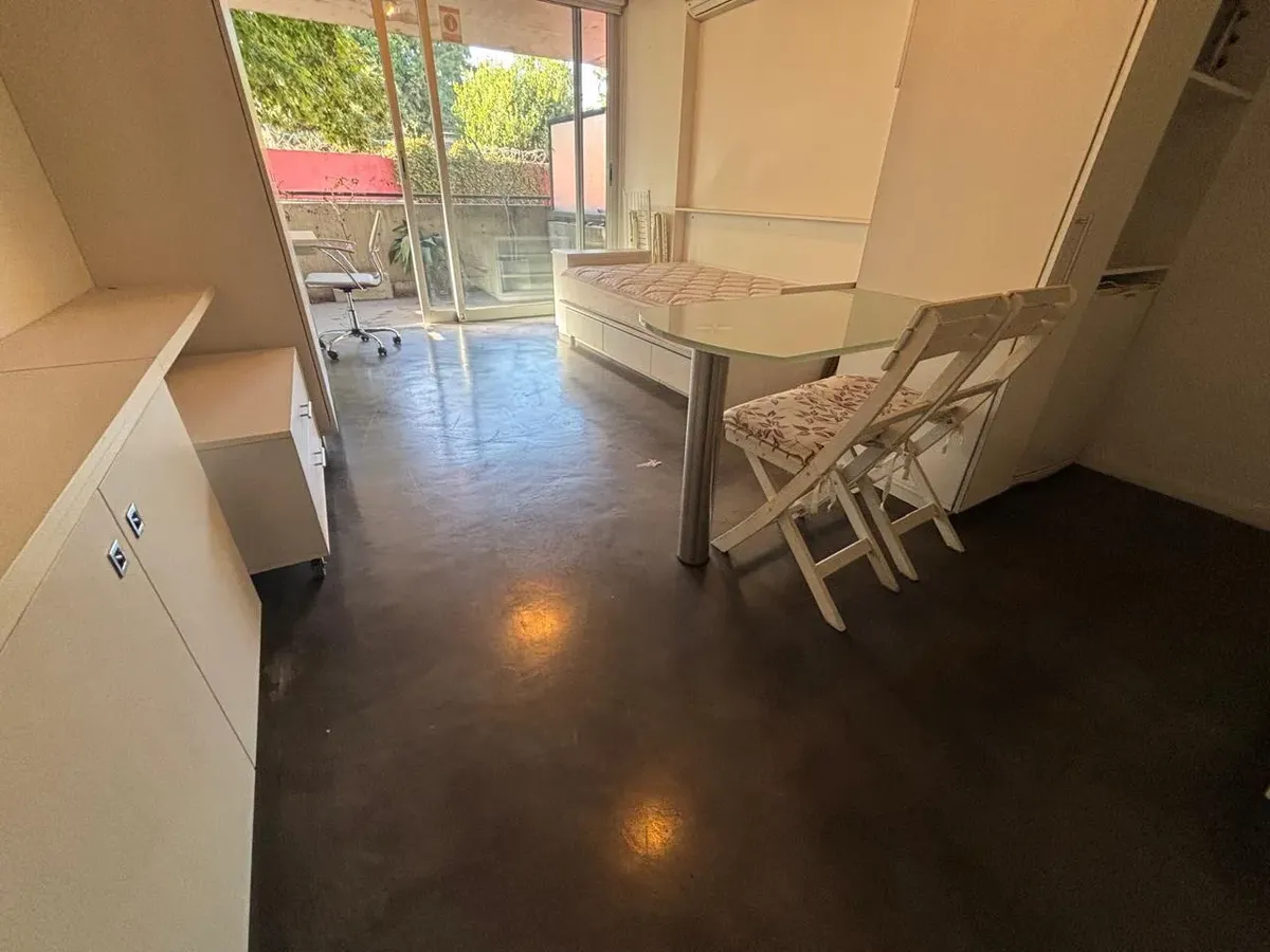 Monoambiente de 45 m² con balcón aterrazado, al frente. Cocina integrada totalmente eléctrica y baño completo con mampara. Se entrega amueblado e incluye placares, heladera bajo mesada Patrik, cama plaza y media tipo sillón, aire acondicionado LG y blackout. El edificio (12 años) cuenta con SUM, parrillas y piscina. Expensas incluyen AySA y gas.