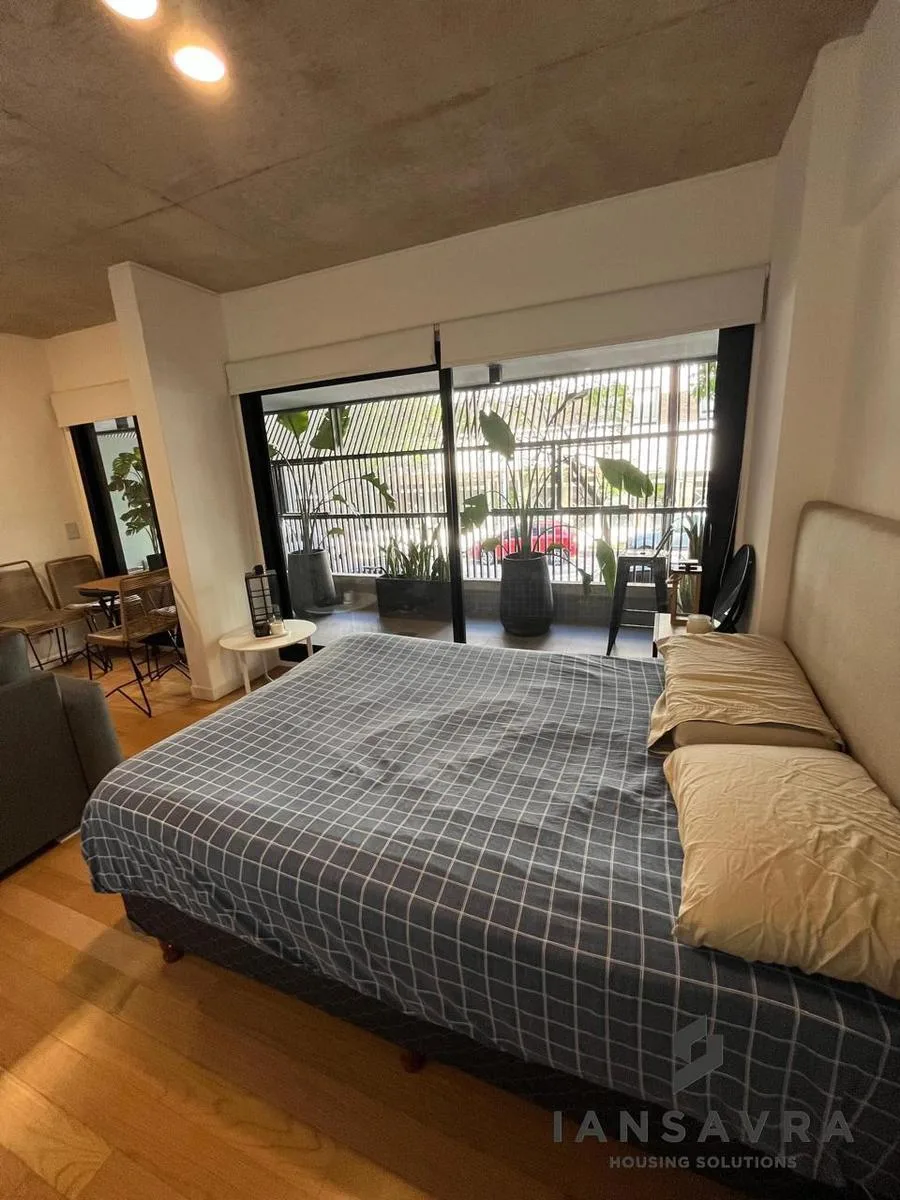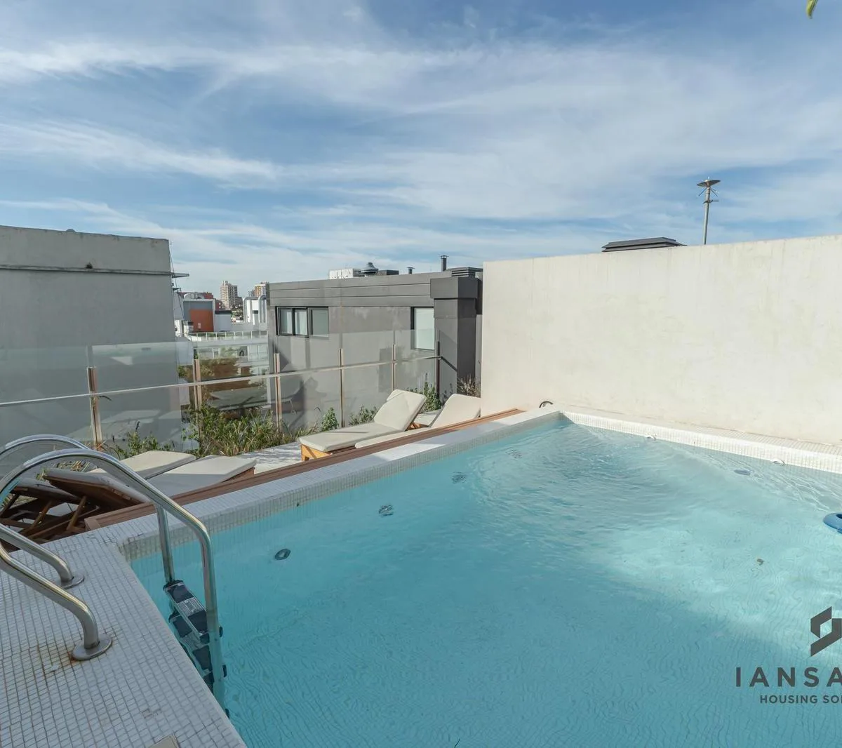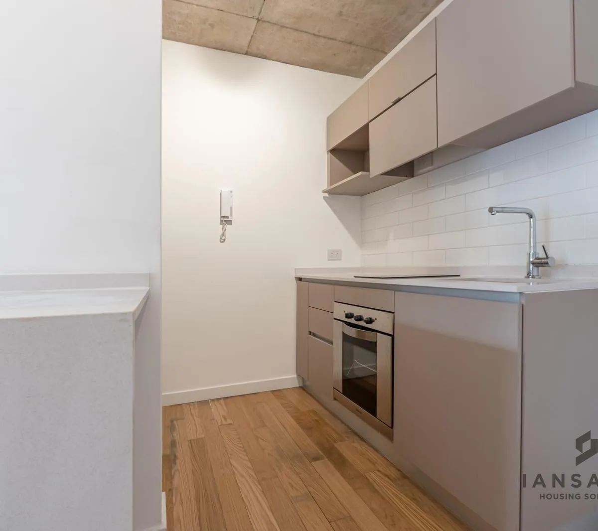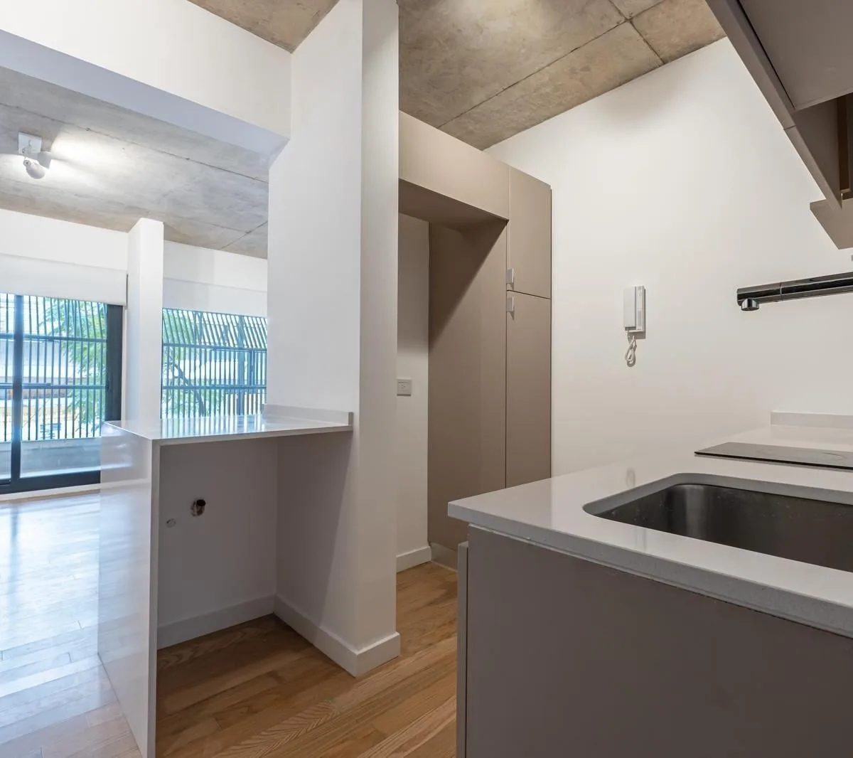 Monoambiente de 40,75 m² en entrepiso en Villa Urquiza, con balcón corrido. Cocina integrada con bajo y sobre mesada, anafe y horno eléctrico; baño completo. El edificio cuenta con terraza con pileta, gimnasio, fogón, SUM, laundry y seguridad 24 hs.