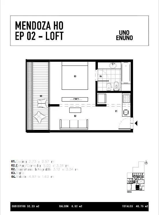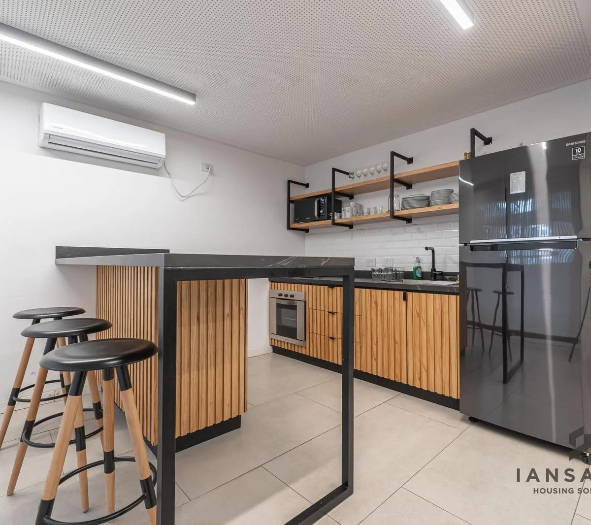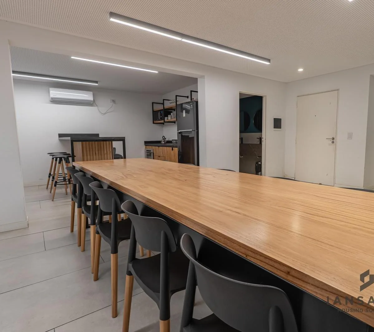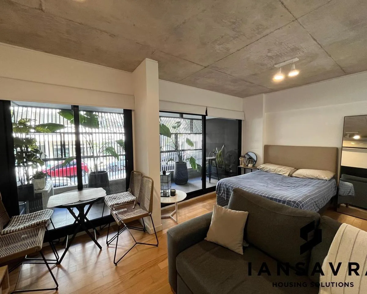 Monoambiente de 40,75 m² en entrepiso en Villa Urquiza, con balcón corrido. Cocina integrada con bajo y sobre mesada, anafe y horno eléctrico; baño completo. El edificio cuenta con terraza con pileta, gimnasio, fogón, SUM, laundry y seguridad 24 hs.