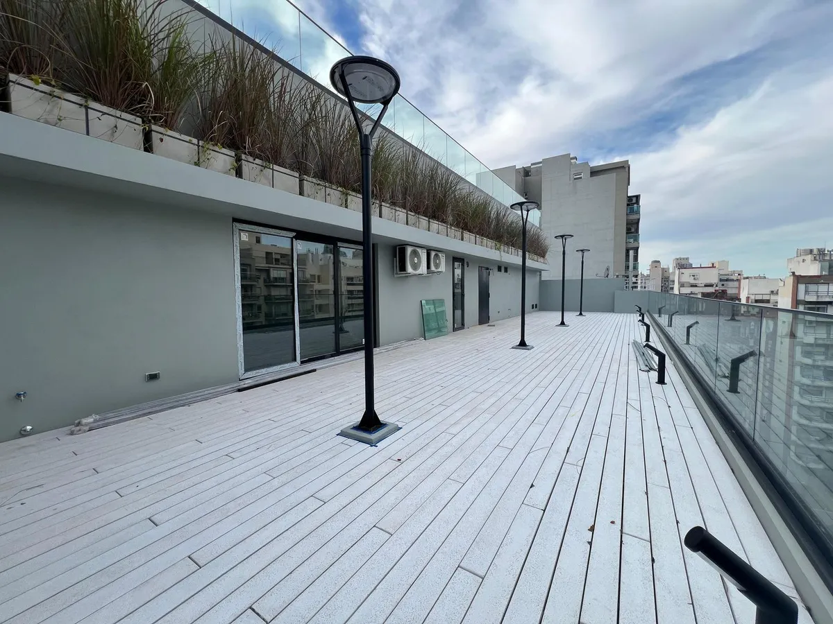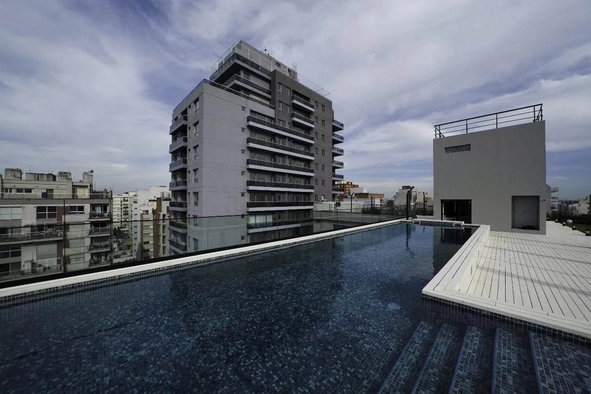 Departamento monoambiente de 4to piso al contrafrente en Villa Urquiza. Cuenta con estar-comedor, cocina integrada con muebles bajo y sobre mesada, 2 placares, baño completo y balcón con conexión para lavarropas. Todas las aberturas tienen DVH. Dispone de calefacción por piso eléctrico con termostato independiente en cada ambiente y aire frío/calor en todos los ambientes. El edificio tiene 10 plantas, con 3 subsuelos de cocheras y amenities: piscina cubierta, piscina descubierta y piscina infant