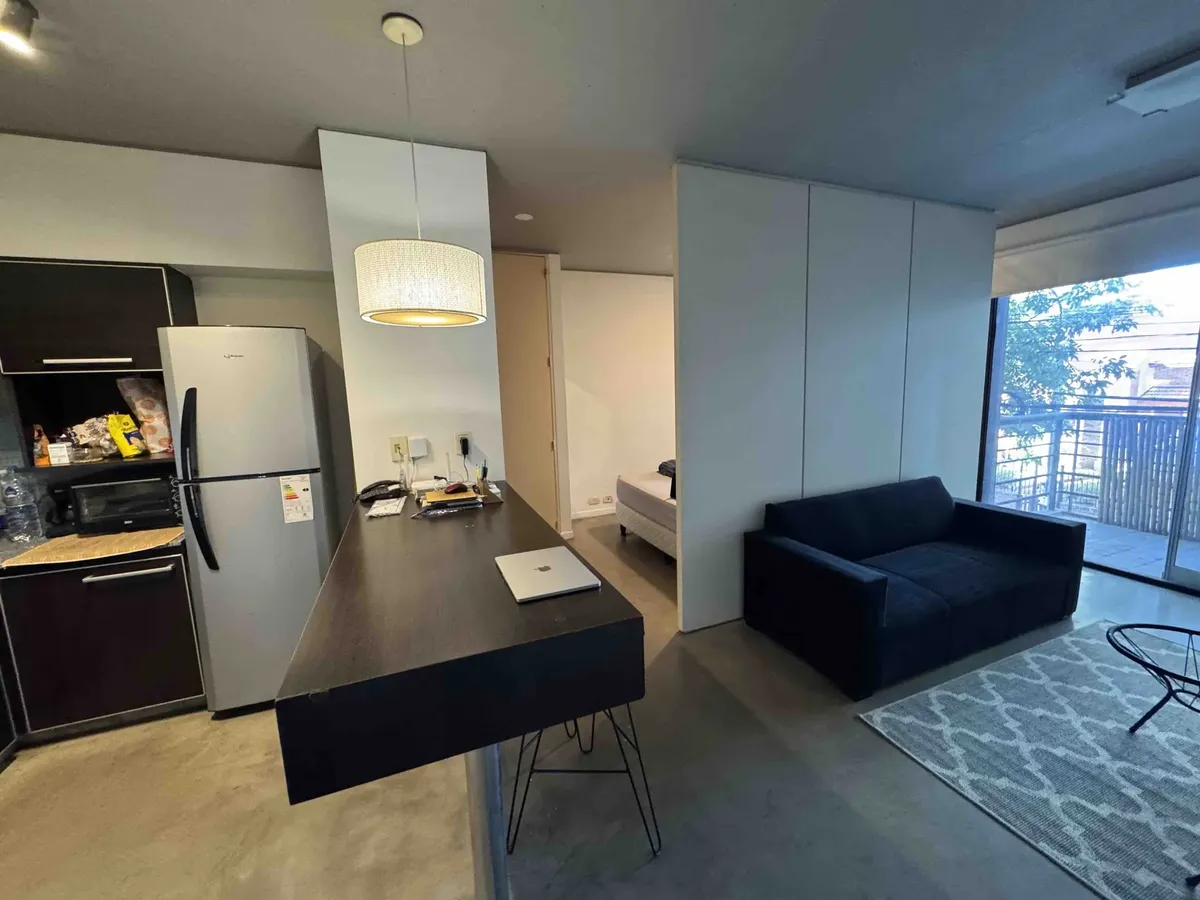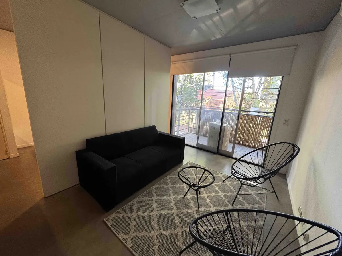 Monoambiente dividido en alquiler en Villa Urquiza, con balcón al frente. Ingreso a living-comedor con cocina anexada, baño completo y horno eléctrico; espacio para heladera. Incluye aire acondicionado frío-calor, cortinas con black out y mueblería; se entrega sin muebles. El edificio cuenta con pileta, parrilla, solarium y SUM, además de gran jardín de uso común. Alquiler $600.000 y expensas $205.000. Ubicado sobre calle Ávalos, a metros de Subte.
