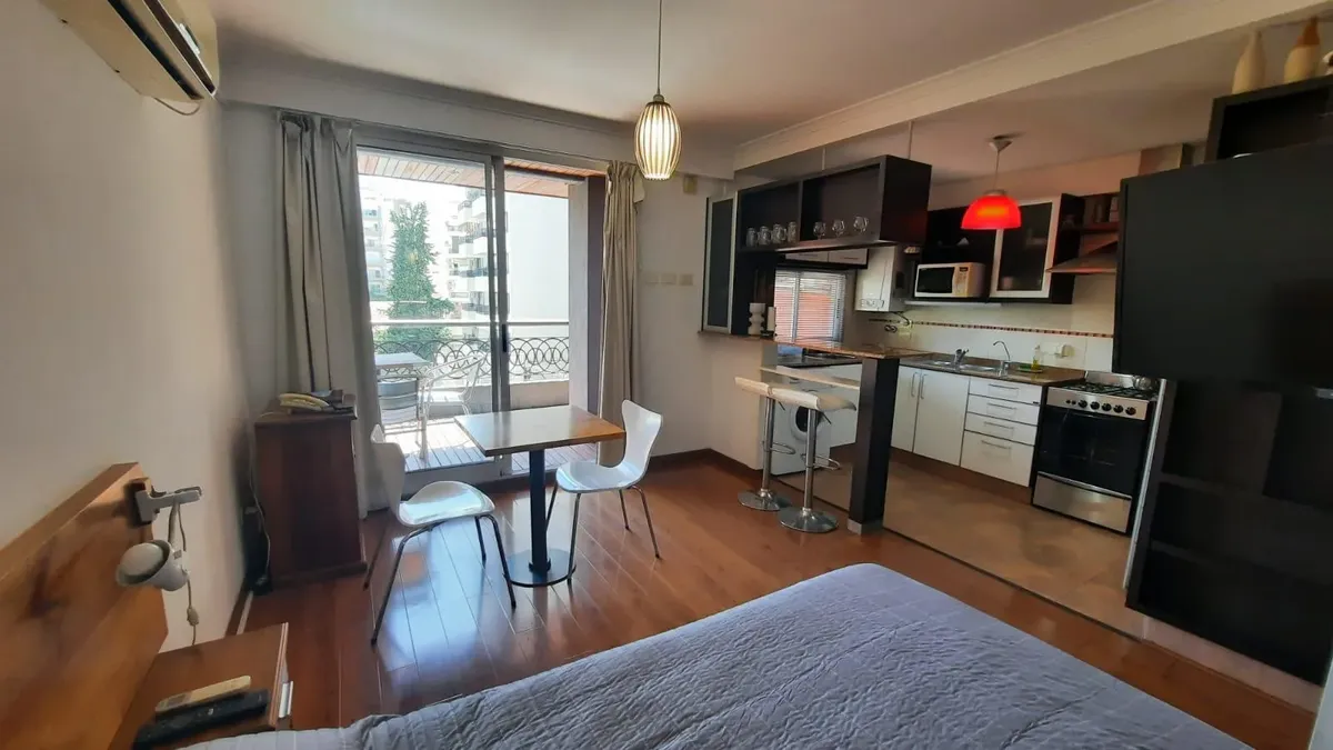 Departamento monoambiente amoblado de 33 m² cubiertos y 42 m² totales, en el 3er piso al contrafrente, con balcón y vista abierta. Cocina integrada, baño completo y aire frío-calor. El edificio cuenta con solarium, pileta, 2 SUM con parrilla y sala de juegos, gimnasio, laundry y sauna. Expensas más servicios a cargo del inquilino, con ajuste trimestral por I.P.C. Plazo de 1 o 2 años; requiere un mes de depósito en garantía y un mes de alquiler por adelantado, con ingresos comprobables y garantía