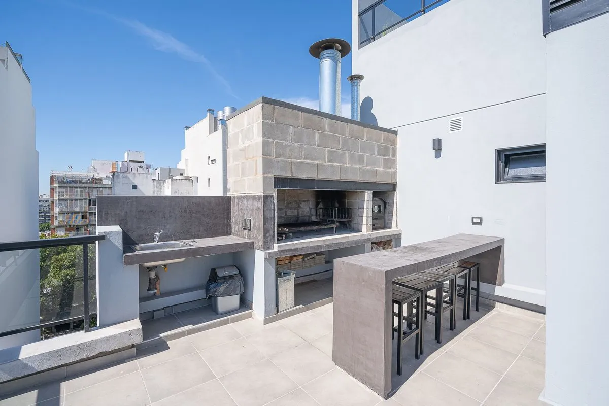 Monoambiente a estrenar en Villa Urquiza. Cocina integrada con muebles bajo mesada, alacena con barra desayunadora, placard y baño completo, con lavadero en el balcón y balcón terraza. El edificio cuenta con cochera opcional, solarium, SUM cubierto, parrilla al aire libre, jacuzzi y sauna, con vestuario. Instalaciones con carpintería de aluminio, piso radiante por caldera central con control individual, agua caliente central, portero visor y cañerías de aire acondicionado para instalar split. Re