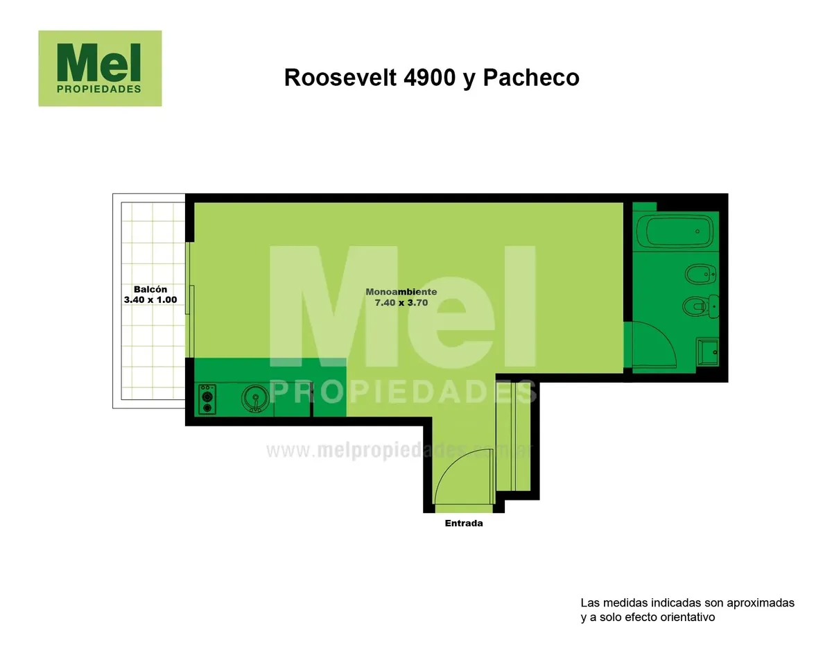 Departamento monoambiente con placard y aire acondicionado frío/calor, con balcón. El edificio cuenta con piscina, parrillas, laundry, solarium e ingreso para discapacitados. A una cuadra del Subte Línea B, estación Rosas, y a metros de la estación de Tren Urquiza, ramal José León Suárez. No se aceptan mascotas.
