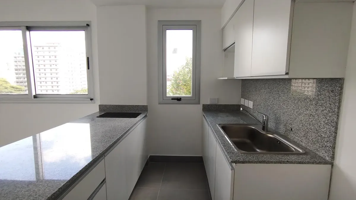 Monoambiente divisible en alquiler de 7° piso, al frente, con balcón y orientación oeste. Cuenta con uso apto para vivienda o para uso profesional. Incluye parrillas, solarium, terraza con pileta, gimnasio, lavadero, seguridad 24 hs con tótem y grupo electrógeno; hay posibilidad de cochera.
