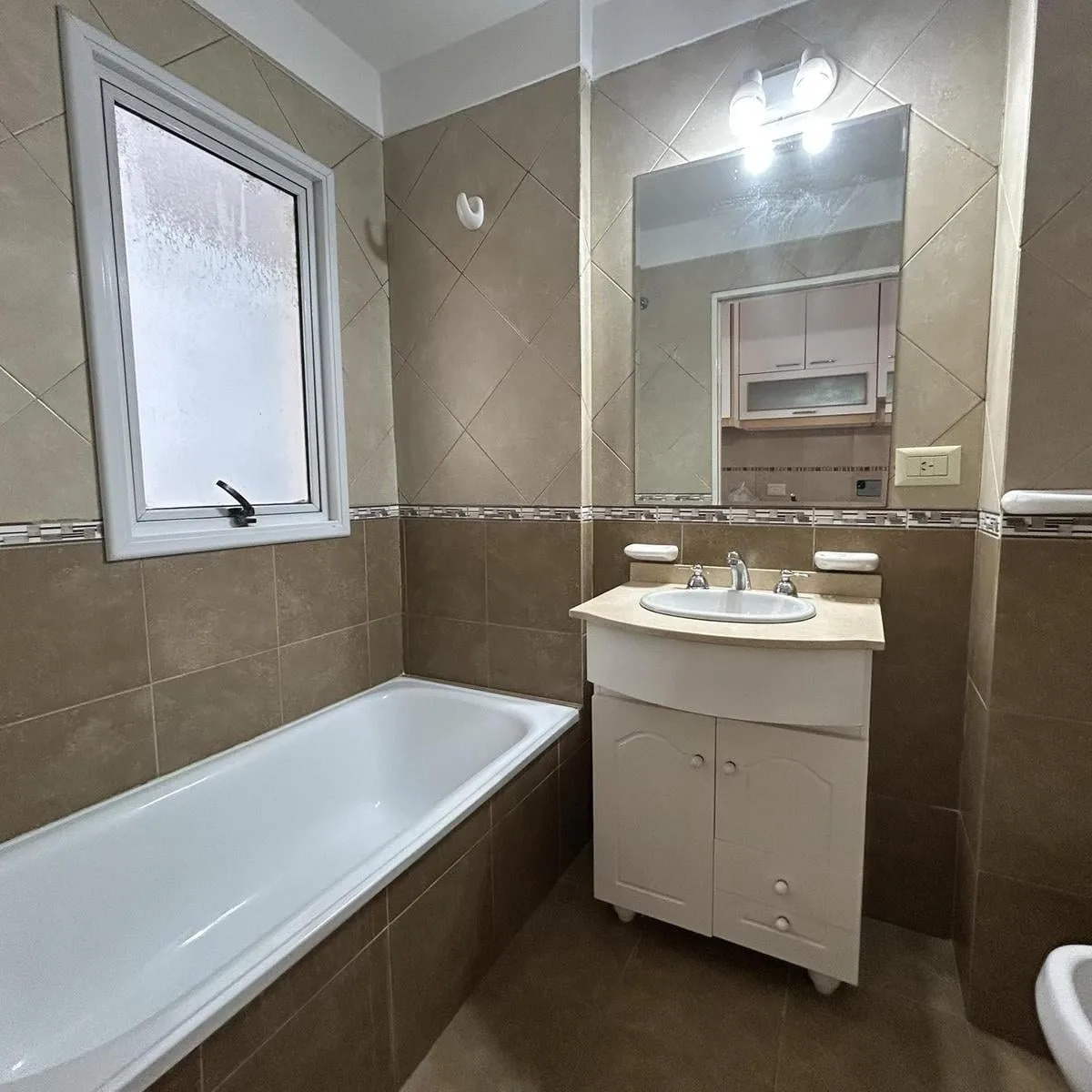 Departamento monoambiente divisible de 35 m² aprox. con cocina de ventilación natural y horno eléctrico con anafe doble eléctrico. Baño completo con ventana y agua caliente por termotanque eléctrico. Cuenta con placard y balcón al frente con vista abierta. El edificio dispone de laundry, SUM con parrilla y piscina con solarium.