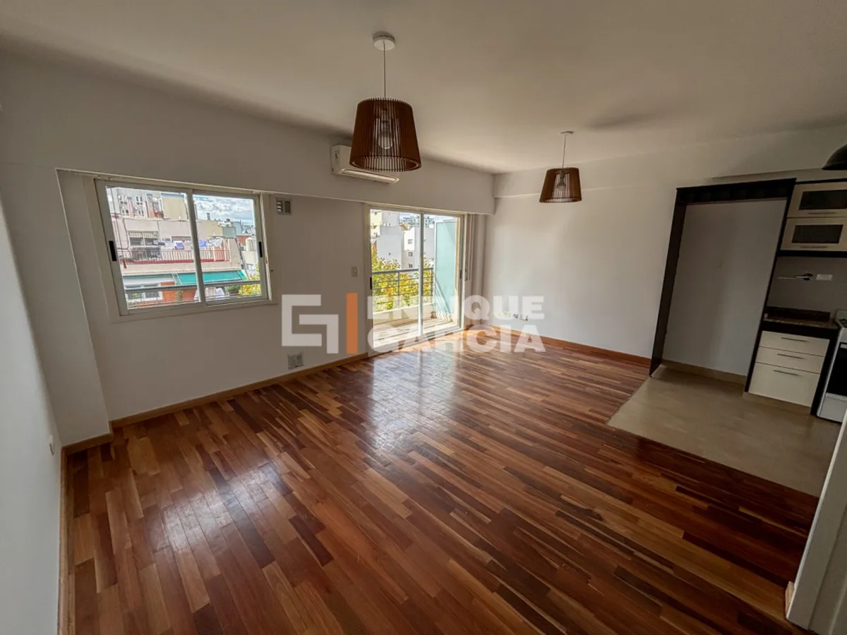 Monoambiente apaisado en alquiler en Villa Urquiza, al frente, con balcón corrido y vista panorámica. Cocina con muebles sobre y bajo mesada y equipada, con instalación para lavarropas; baño completo. Cuenta con split frío-calor, pisos de parquet entablonados e hidrolaqueados, portero visor y agua caliente por termotanque eléctrico. El edificio dispone de SUM y solarium con ducha. No se aceptan mascotas. Contrato de 24 meses, con actualizaciones trimestrales por IPC; garantía en CABA y con ingre