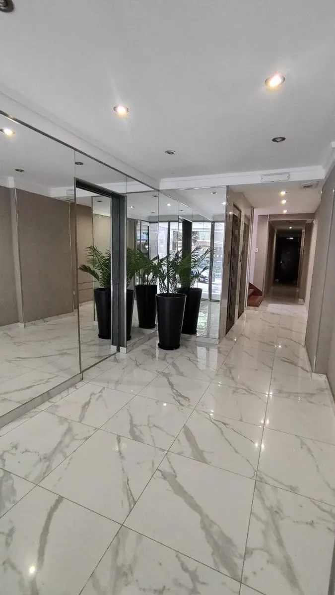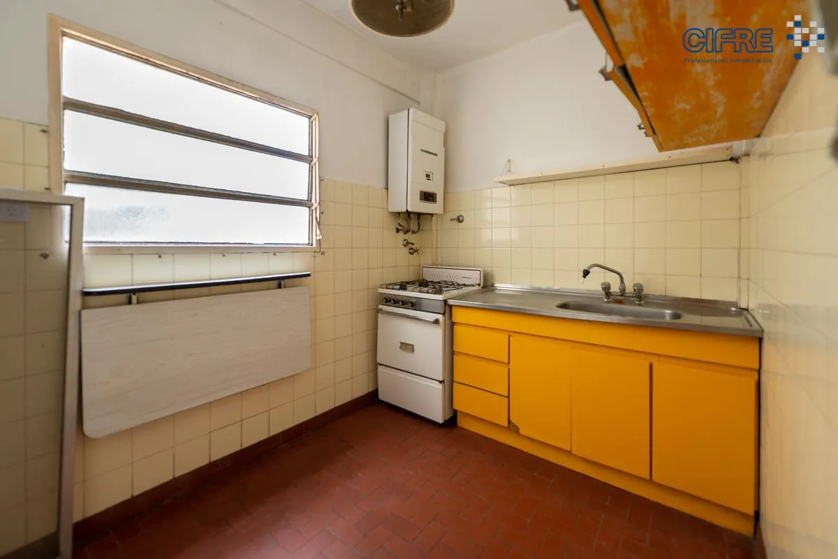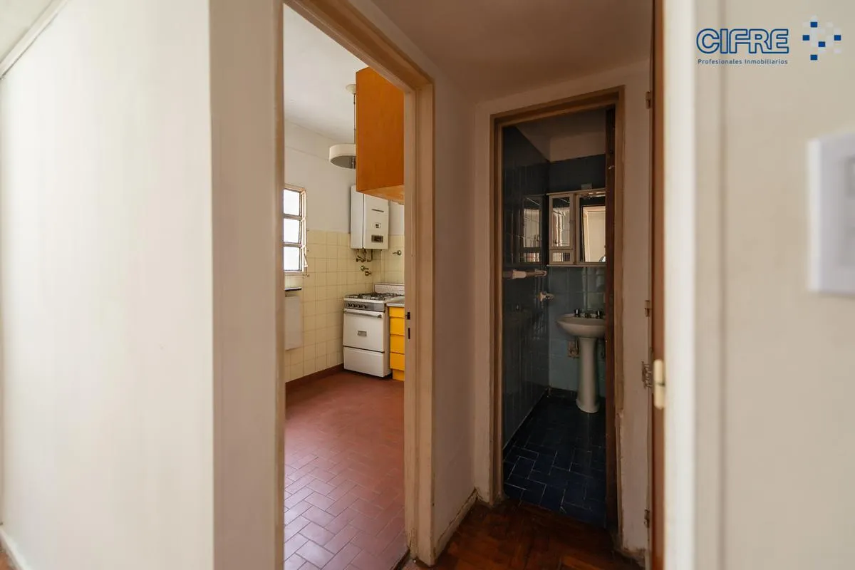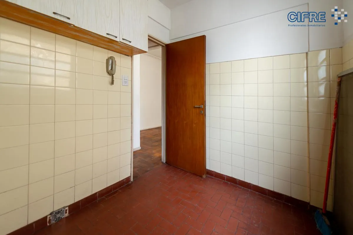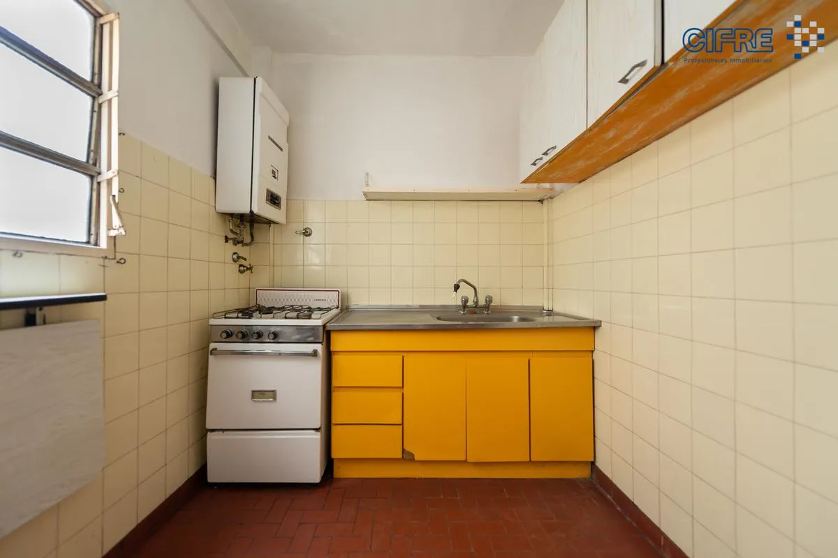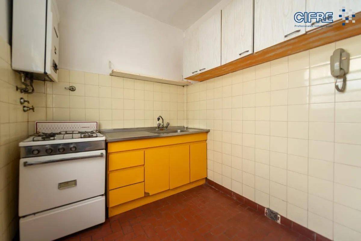 Monoambiente de 1 1/2 ambiente sin balcón, con cocina separada. Pisos de parquet y placar en pasillo. Cocina con lugar para mesita, calefón y cocina a gas de 4 hornallas, con revestimientos de azulejos y muebles altos y bajos; mesada de acero inoxidable. Baño con espacio de ducha. El edificio cuenta con laundry. Se ubica sobre el Boulevard Mendoza, a metros del Subte B.