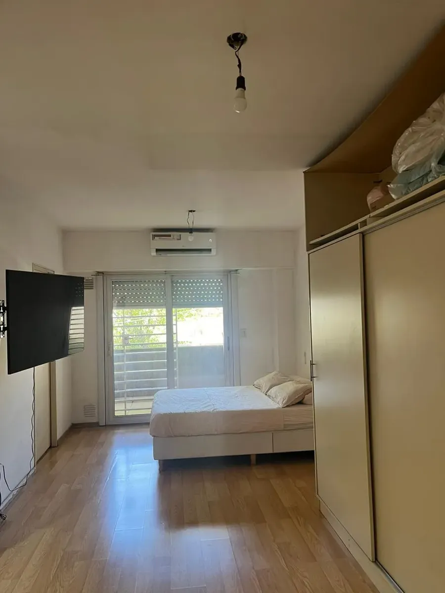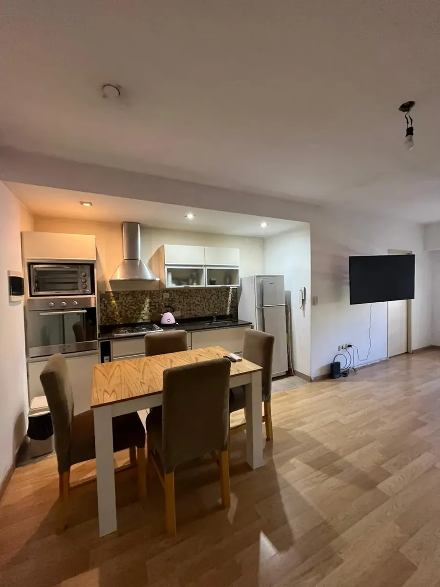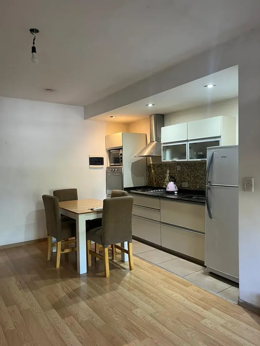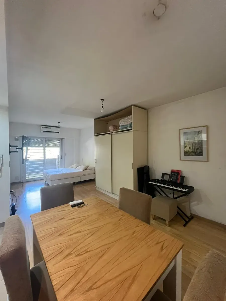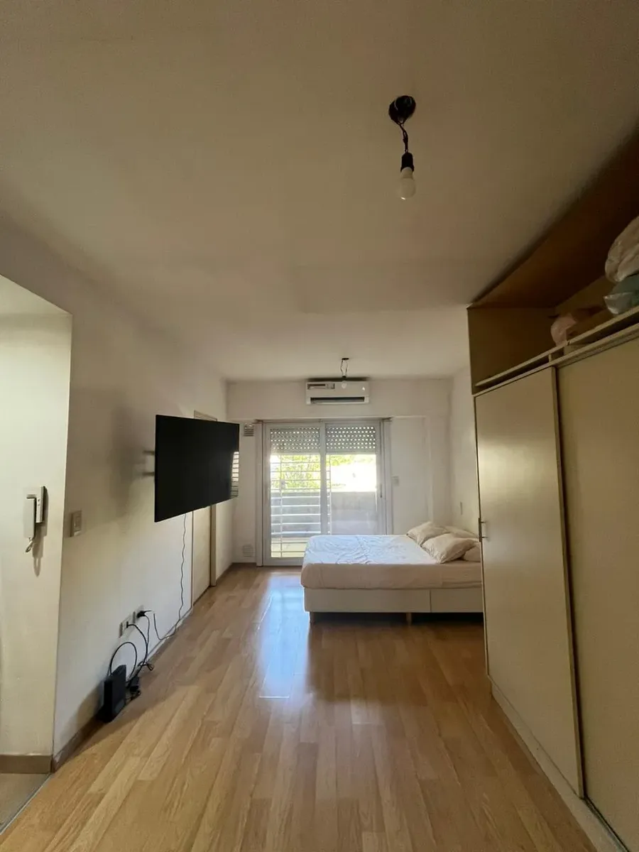Departamento monoambiente al frente de 1 ambiente en el 1er piso. La cocina es integrada y cuenta con anafe a gas y horno eléctrico empotrado; el agua caliente se resuelve con termotanque eléctrico. Tiene placard con puertas corredizas y piso de madera clara. El edificio tiene ascensor, SUM y solárium en el último piso y expensas bajas.