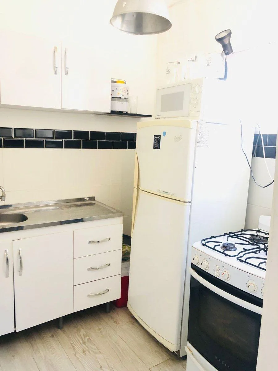 Two-room PH (Propiedad Horizontal) with 1 bedroom, refurbished and furnished. Located on the first floor accessed by stairs in a small, quiet building. The unit has hot/cold air conditioning, a fully equipped kitchen with microwave and fridge, a full bathroom with shower, WiFi, and a TV in the bedroom. Utilities are paid by the tenant and the rental has no building fees (sin expensas). A rental guarantee bond (caución) is required and pets are not allowed.